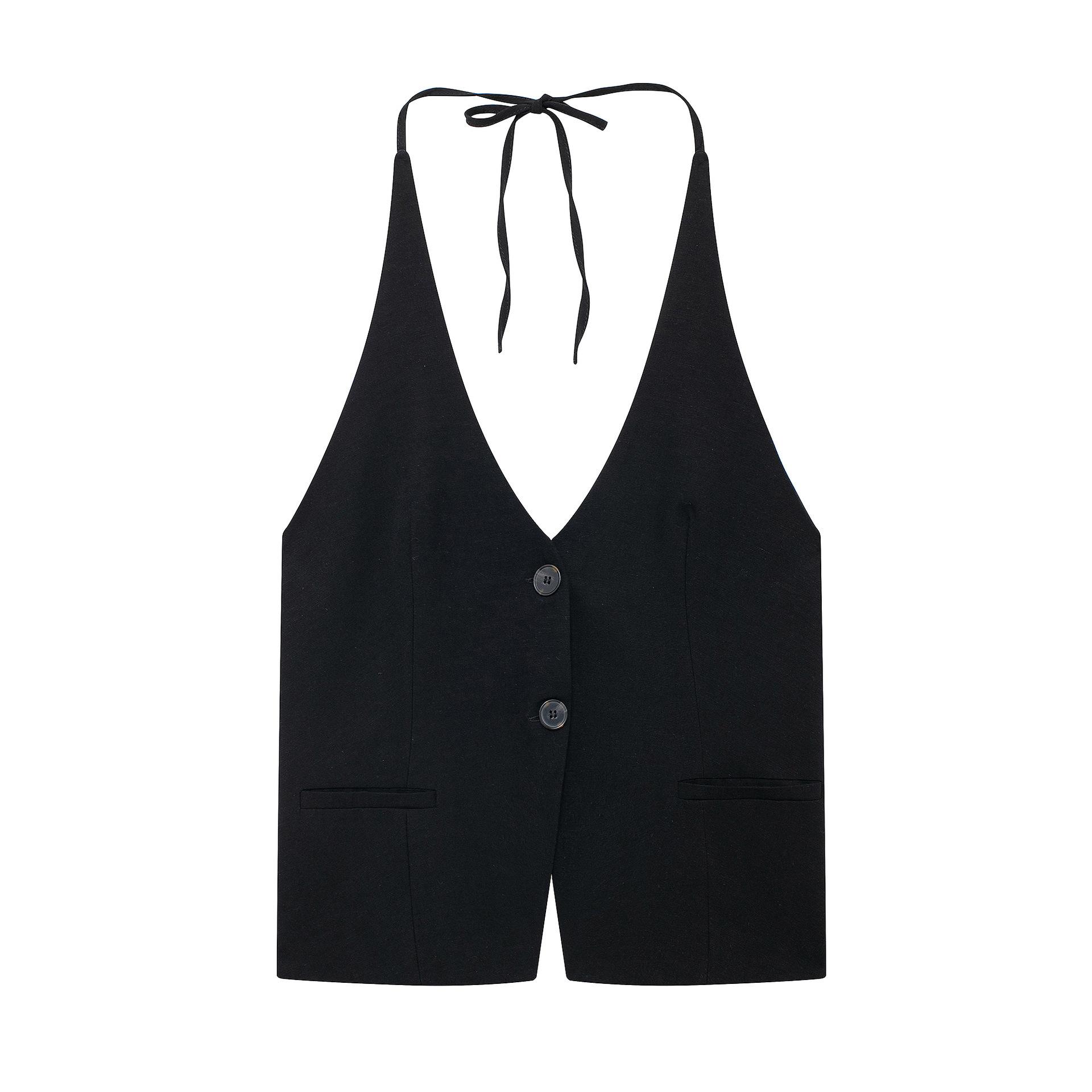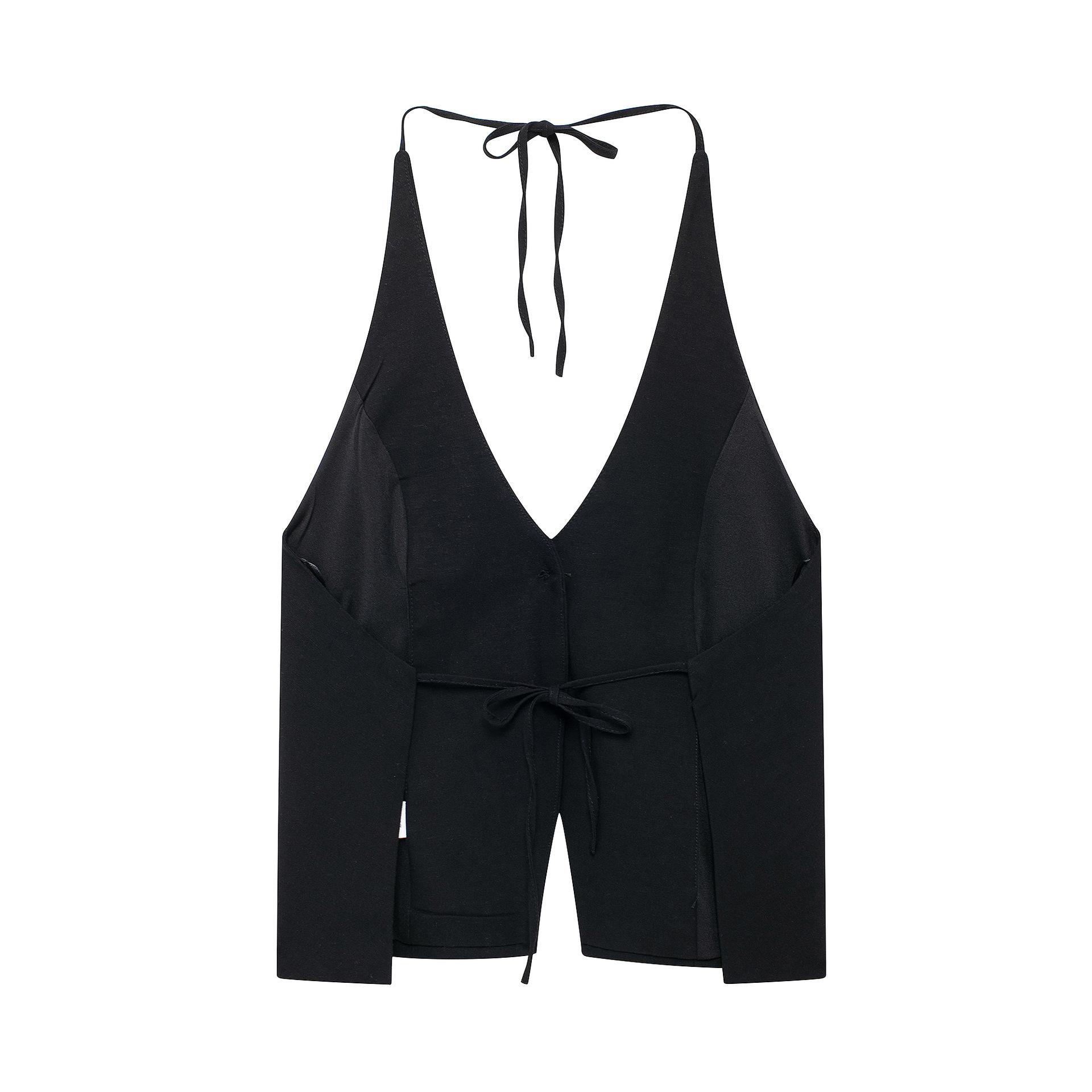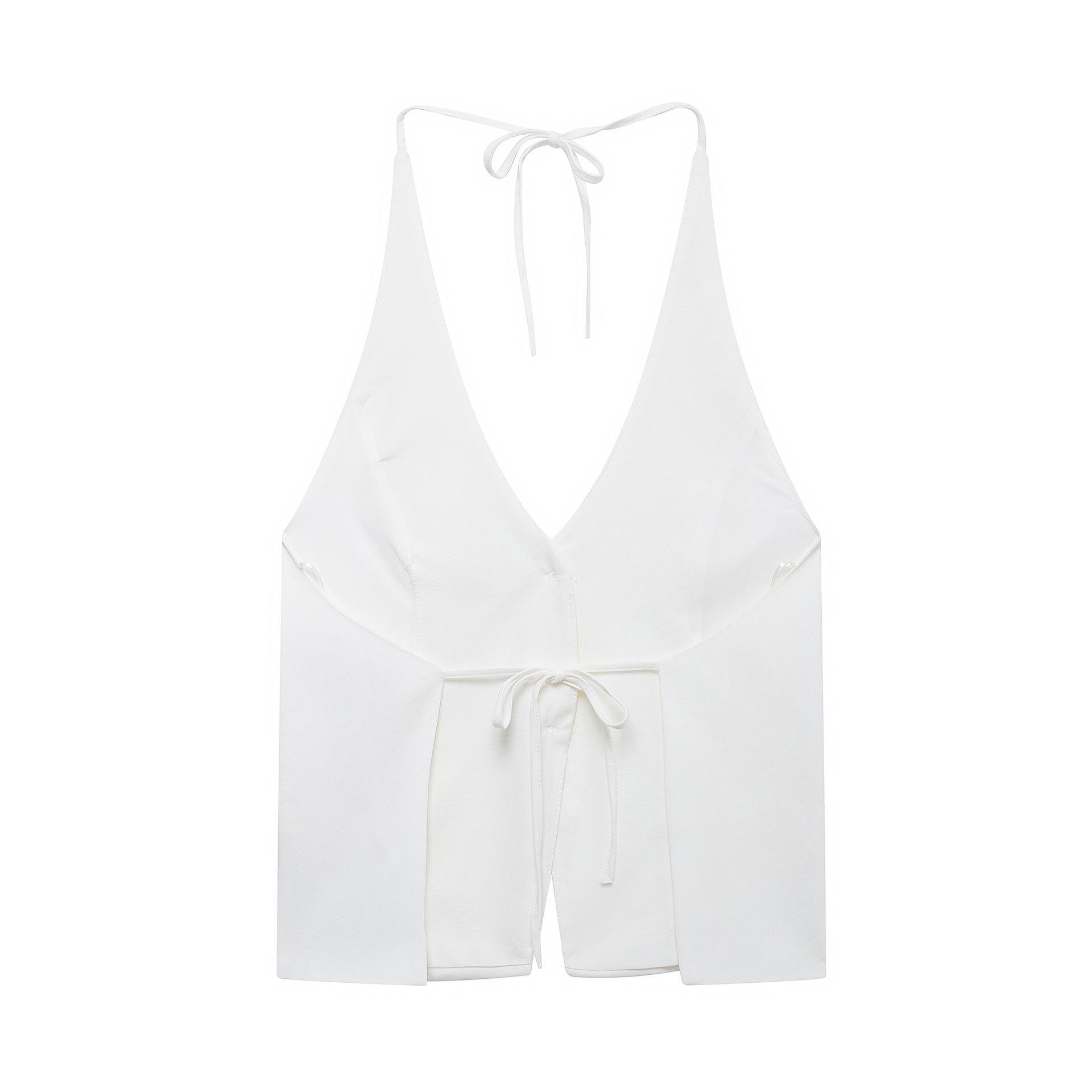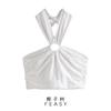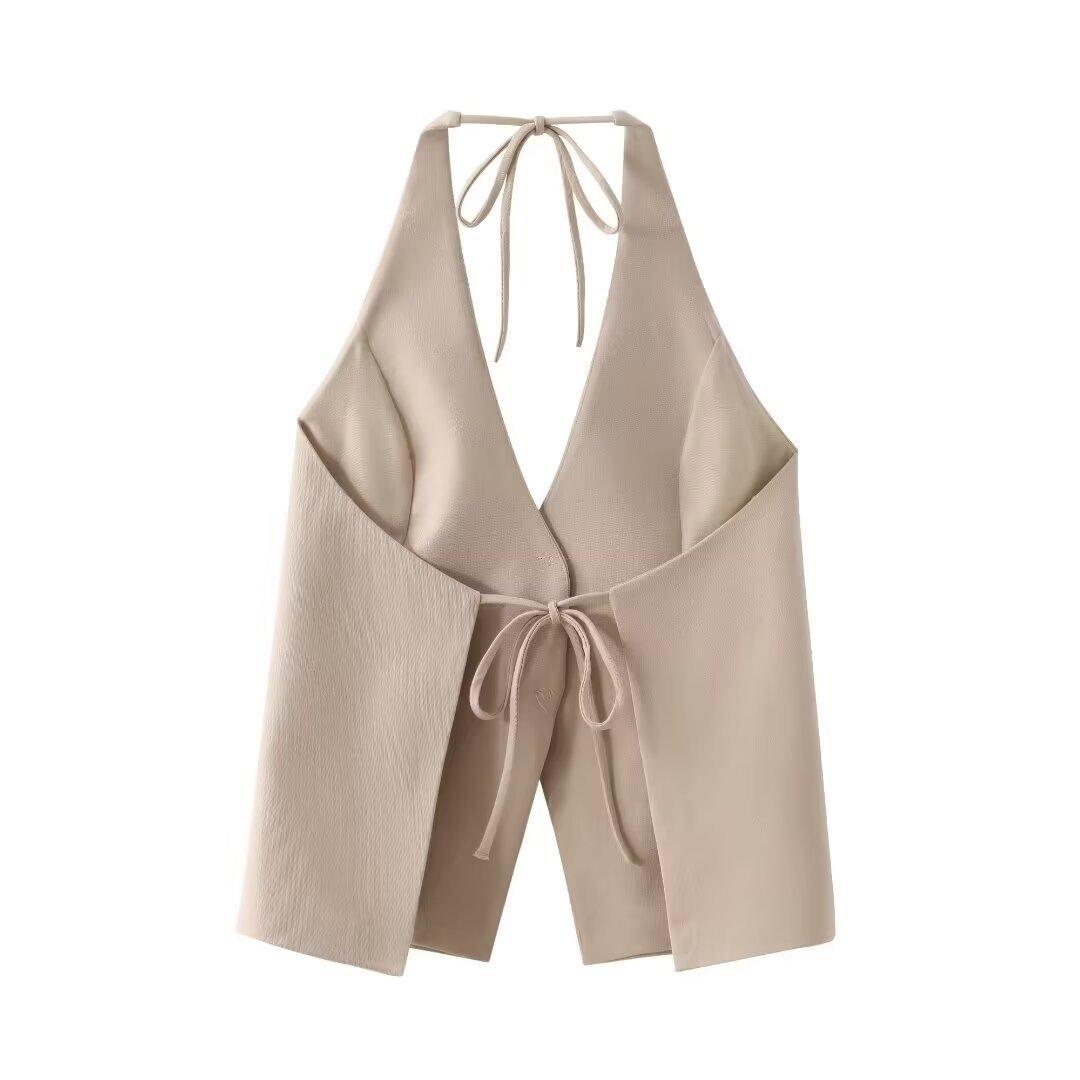 Ropa de mujer europea y americana de comercio exterior transfronterizo de Amazon, verano 2024, nueva blusa con cuello colgante y decoración de lazo de estilo europeo y americano
