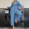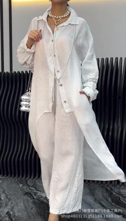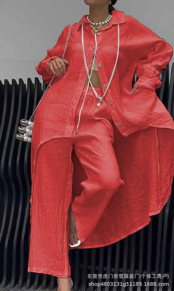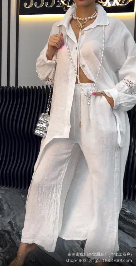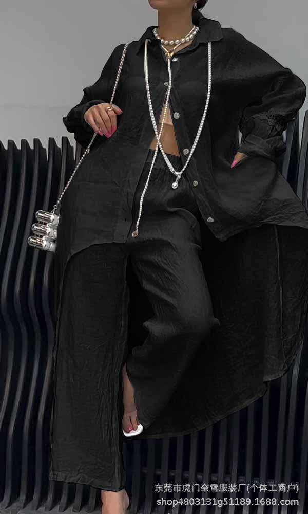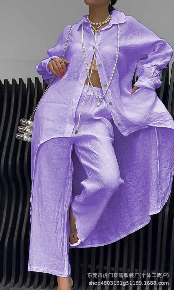Amazon 2024 Verano Nueva Moda Casual Comercio Exterior Mujer Dobladillo Manga Larga Top Pantalón Traje