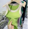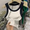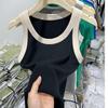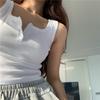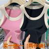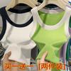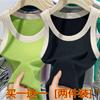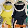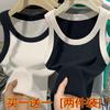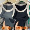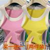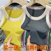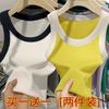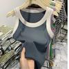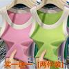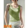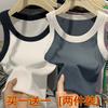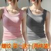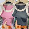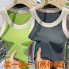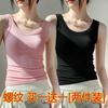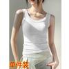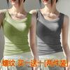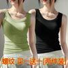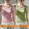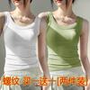 Camiseta básica de una o dos piezas con hilo de seda de hielo, cuello en U, tirantes pequeños, sin mangas, para mujer, corte entallado, interior pequeño, exterior de pelo