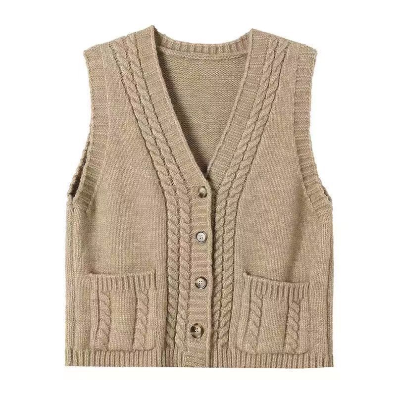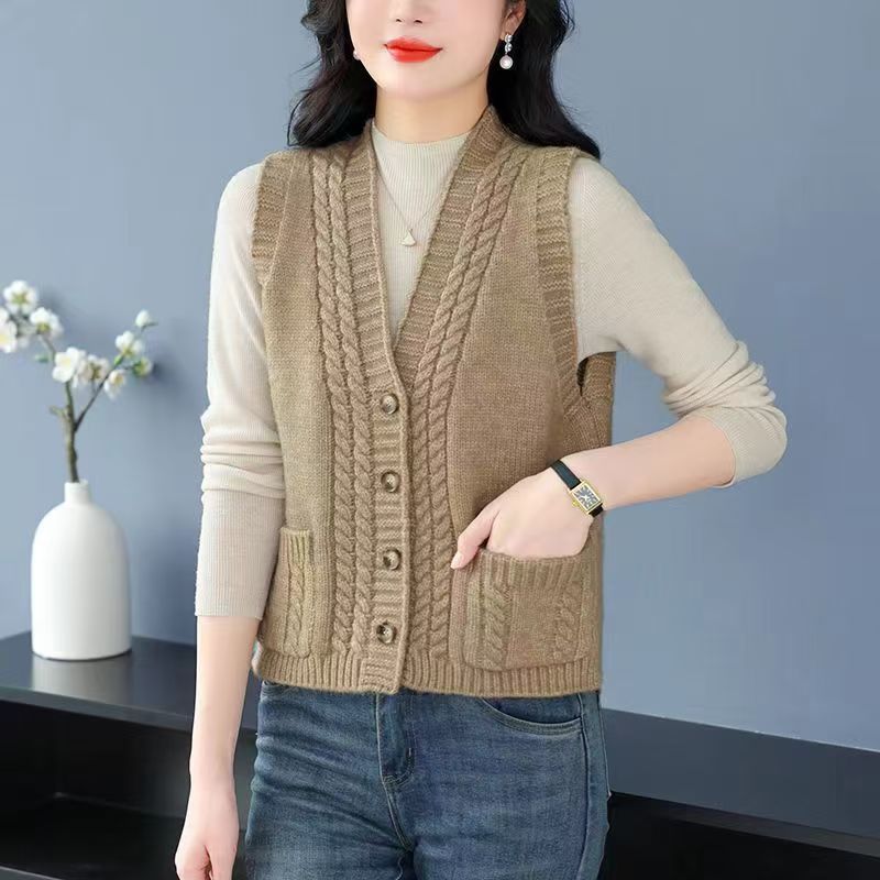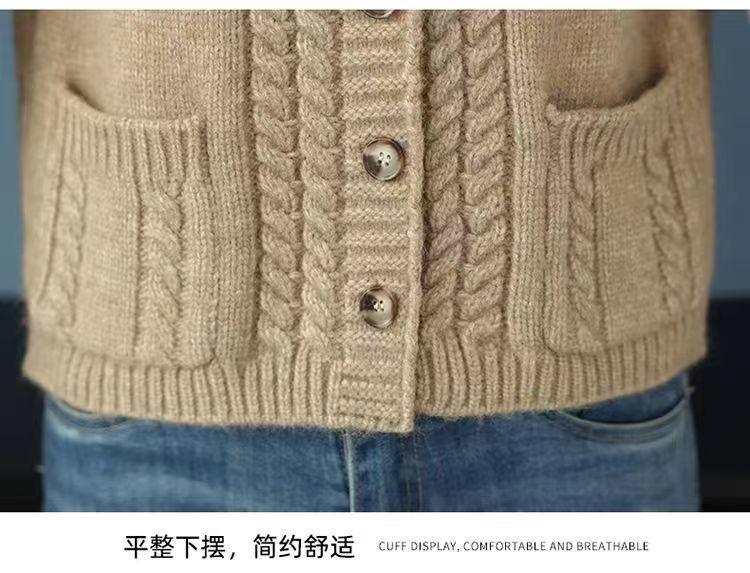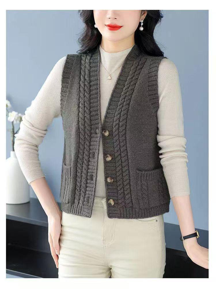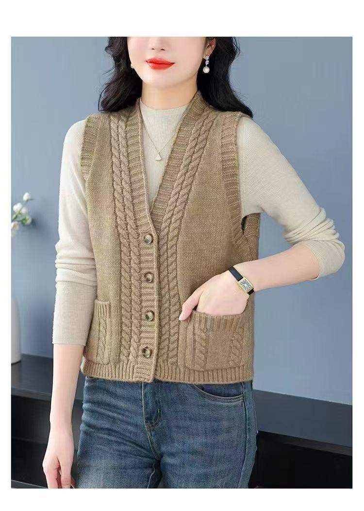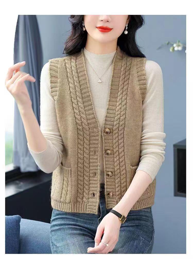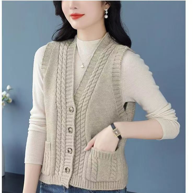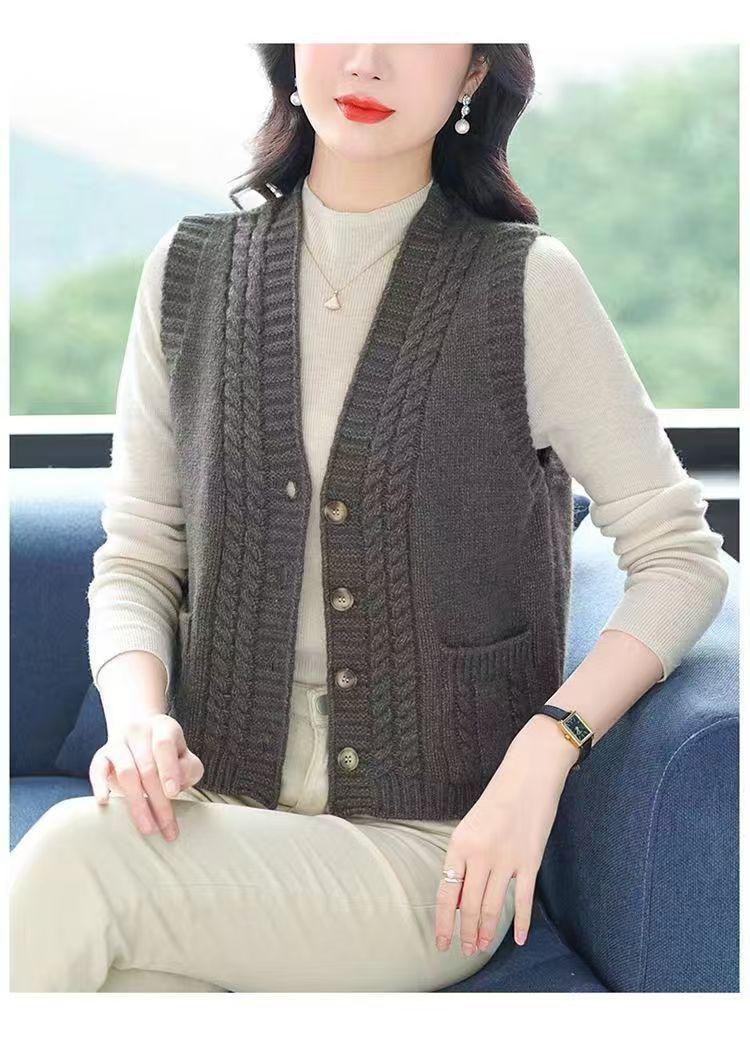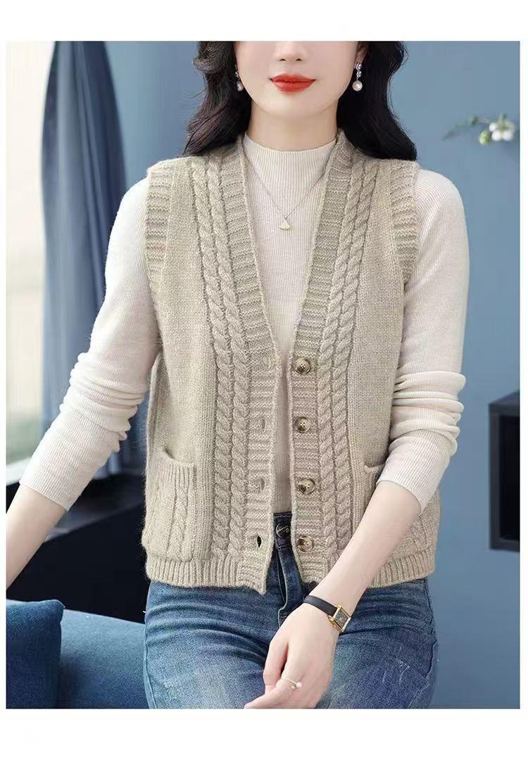 Chaleco de punto de lana gruesa, suave y encerada, elegante y a la moda, para mujer, nuevo chaleco de primavera y otoño, suéter tipo cárdigan.