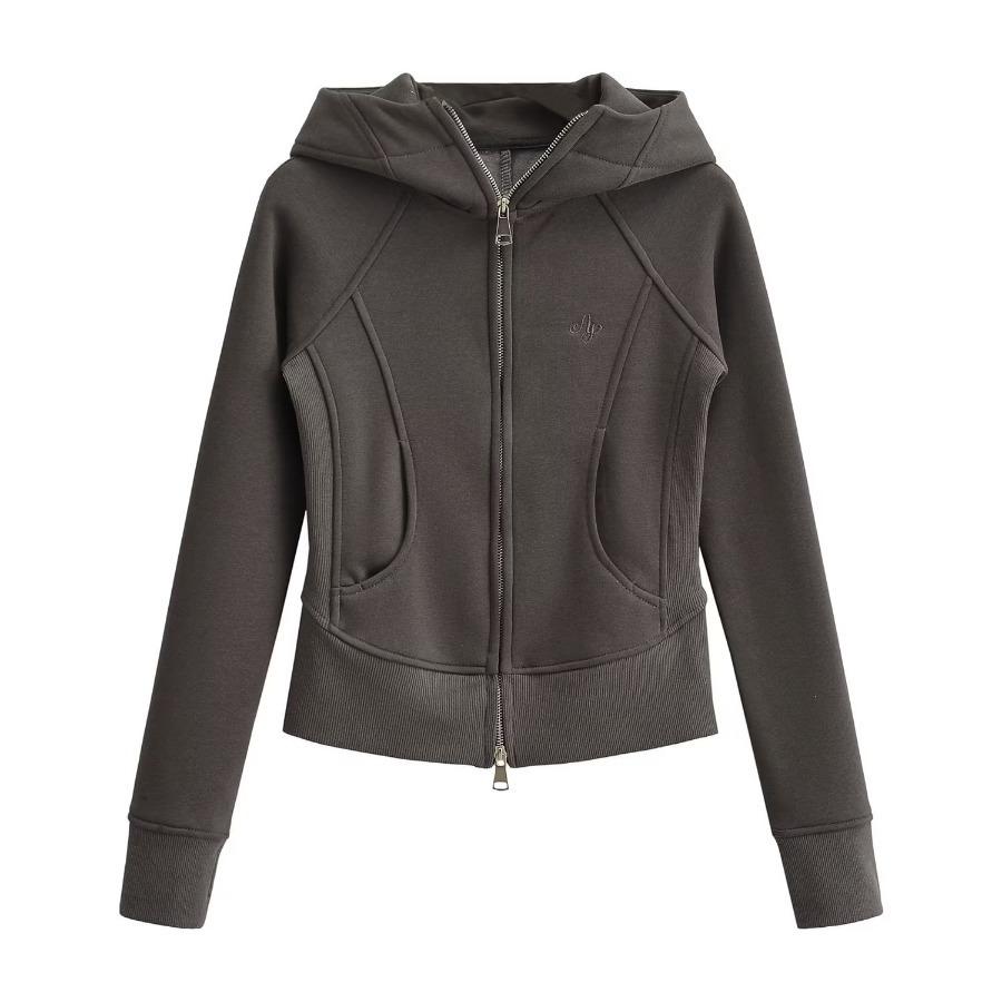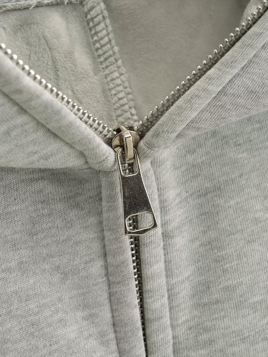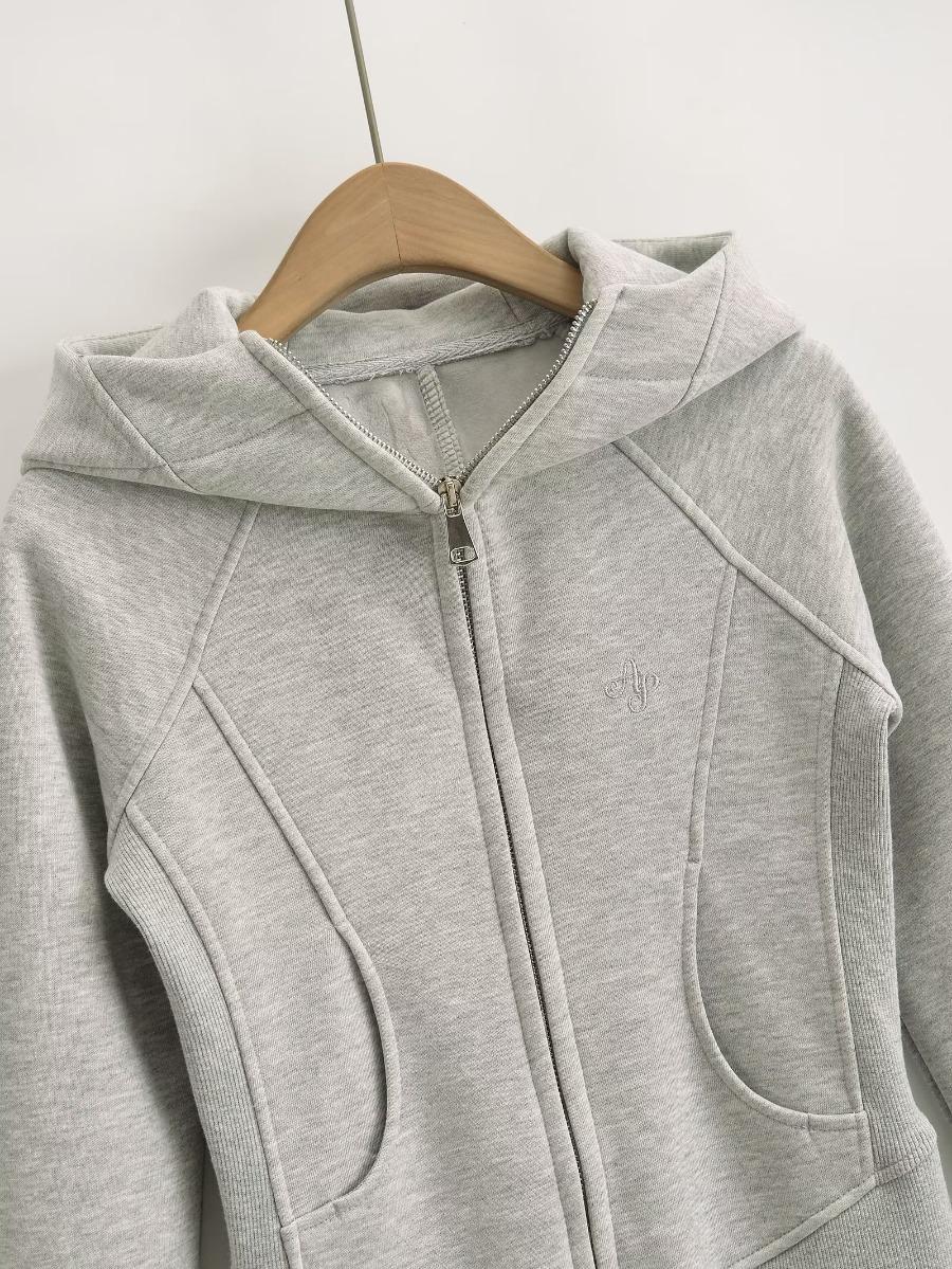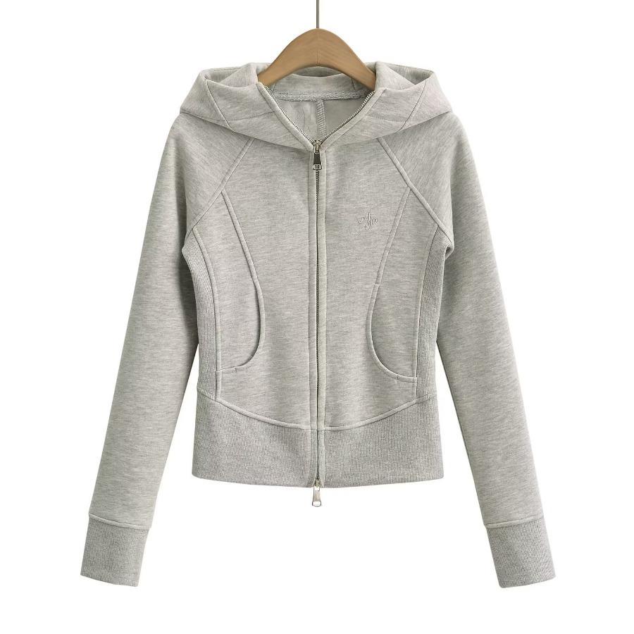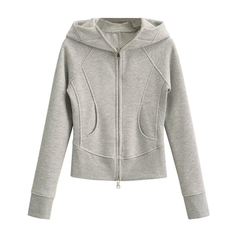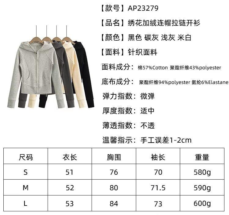 Suéter ajustado con forro polar para mujer, abrigo con capucha y cremallera, cárdigan bordado con forro polar, otoño 2023