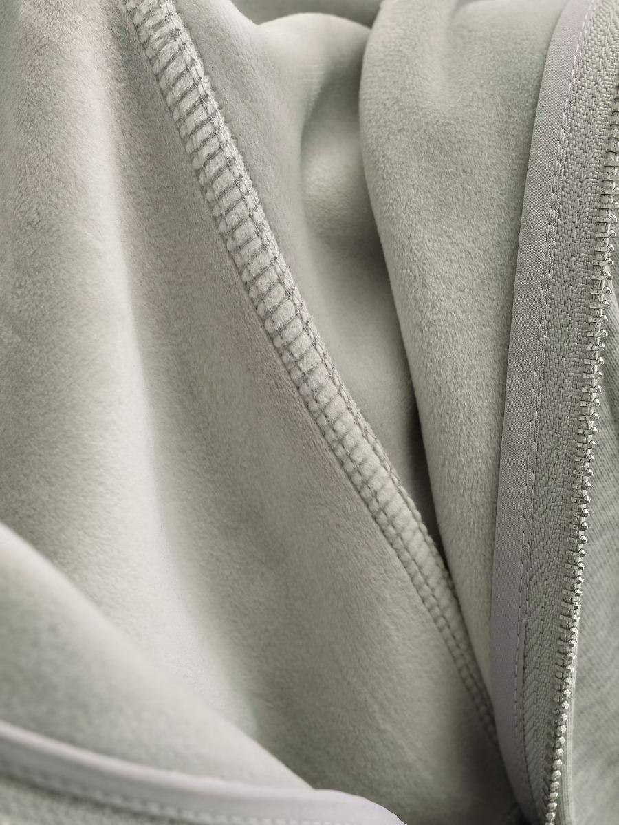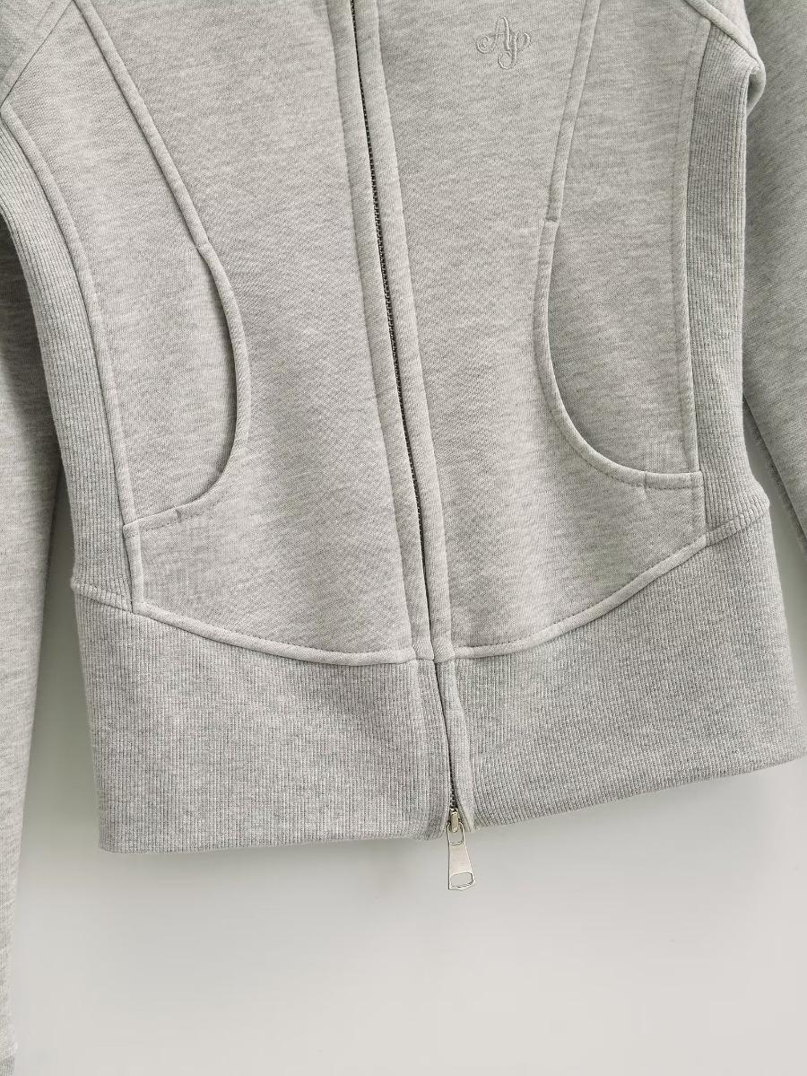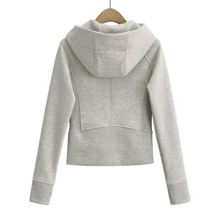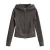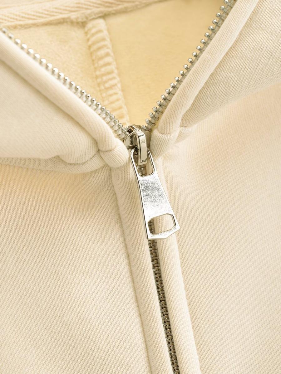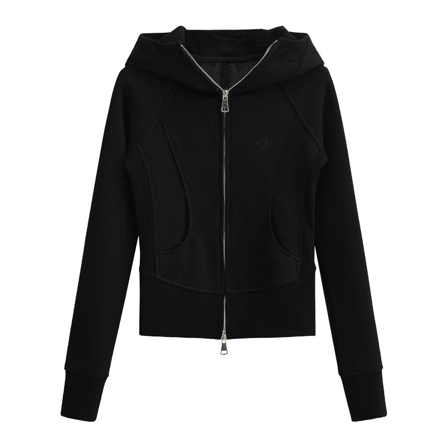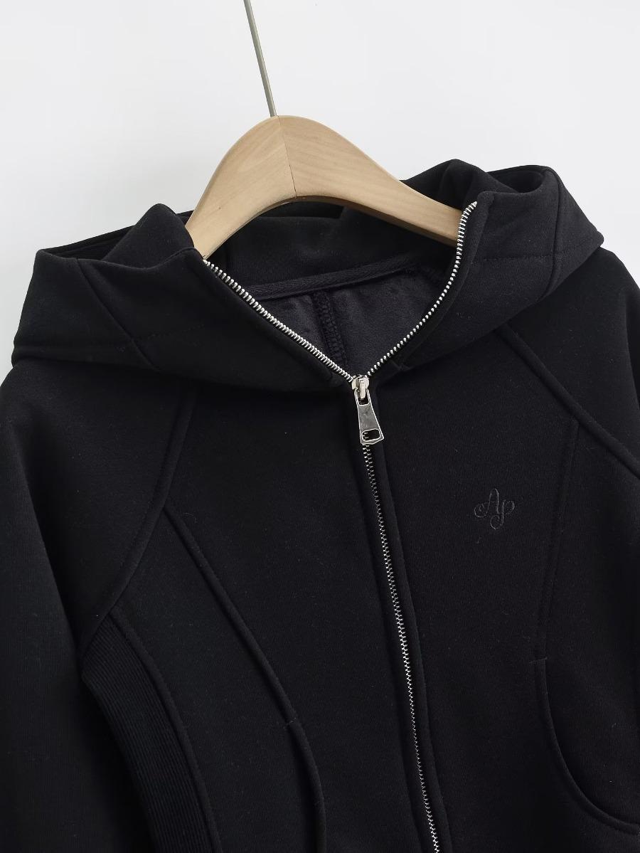 Suéter ajustado con forro polar para mujer, abrigo con capucha y cremallera, cárdigan bordado con forro polar, otoño 2023