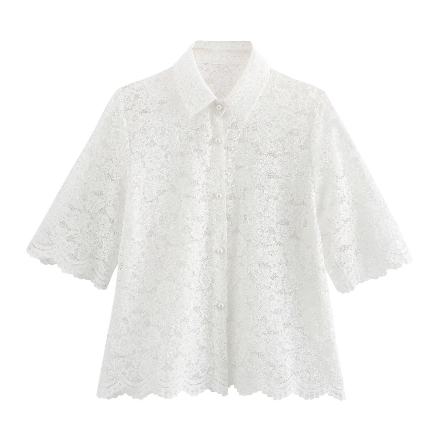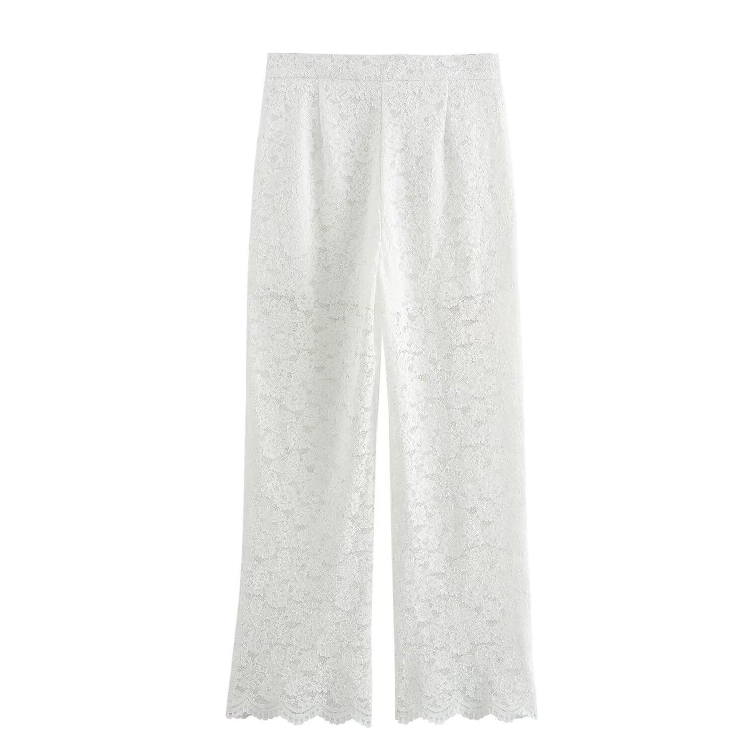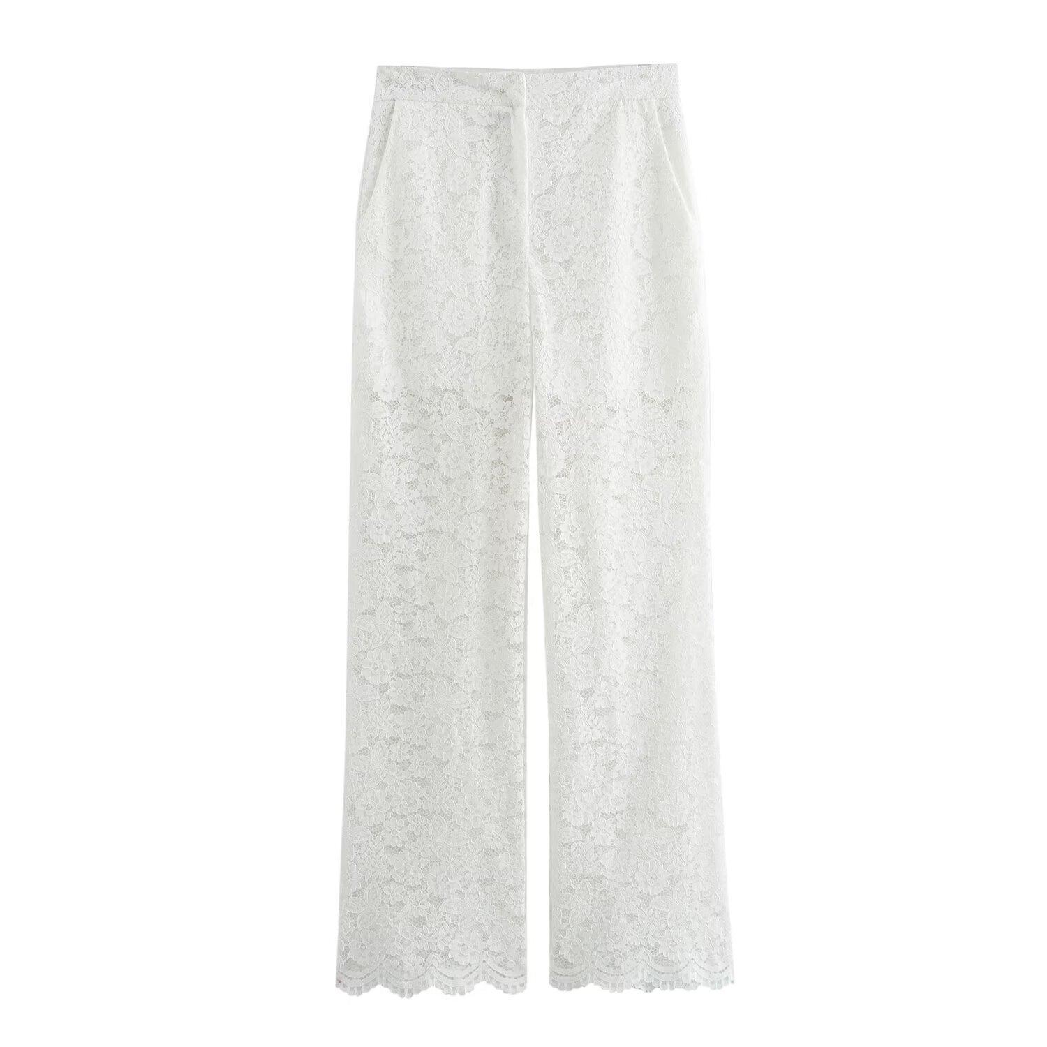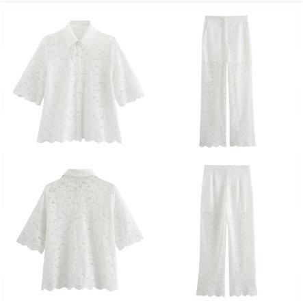 Comercio exterior transfronterizo de Amazon, ropa de mujer europea y americana, verano 2024, nueva moda, camisa corta de encaje, traje de pantalón recto