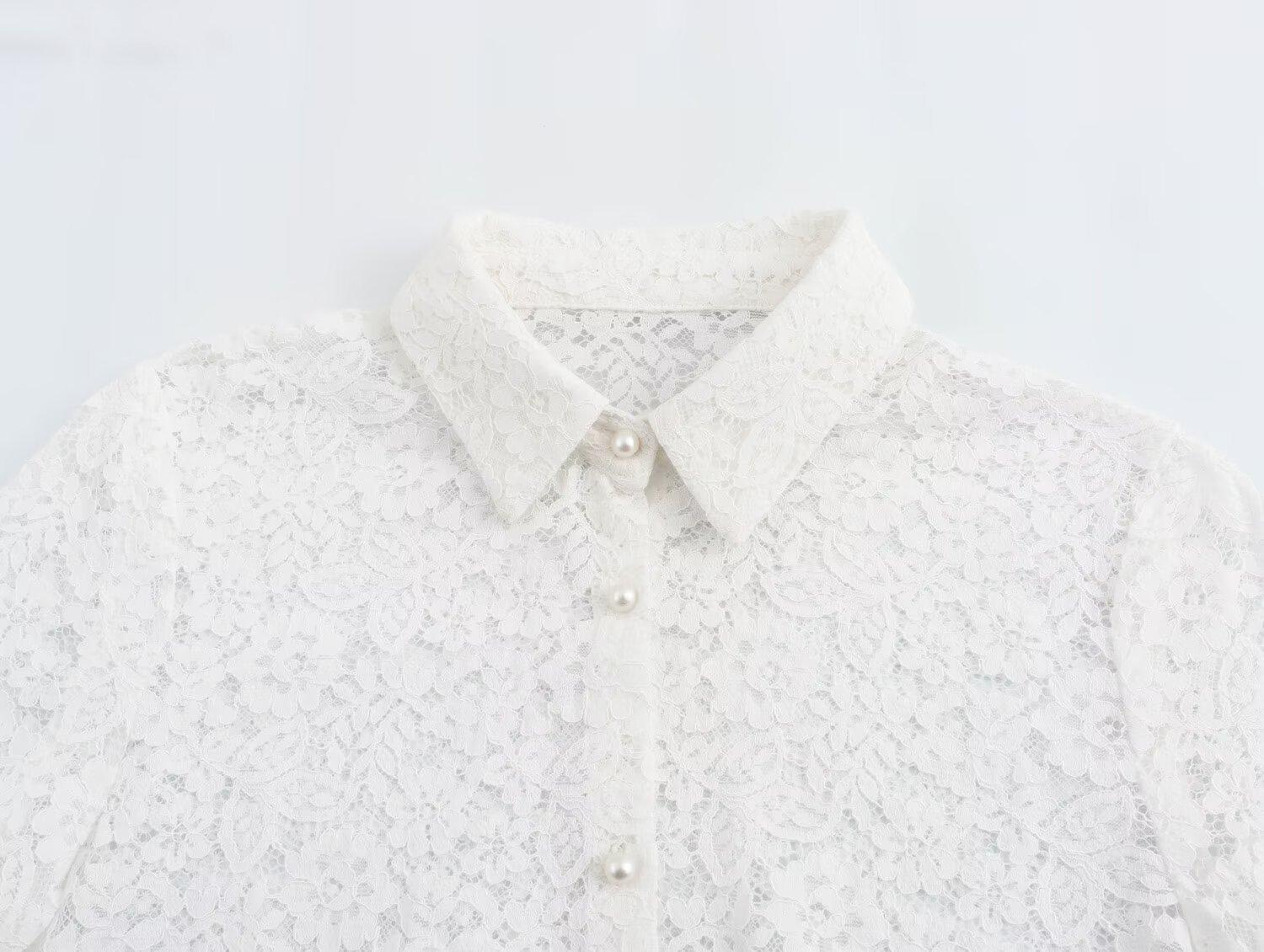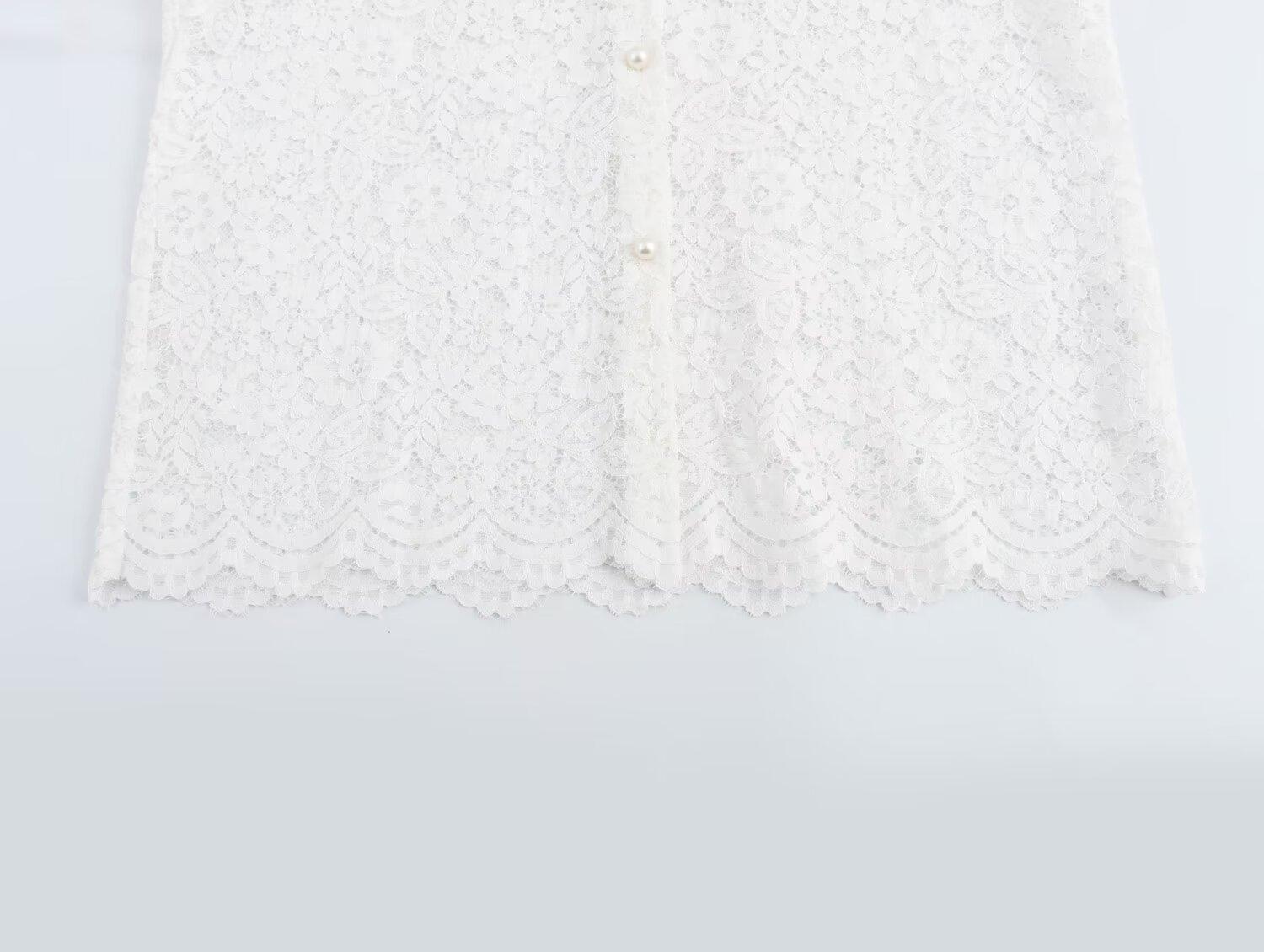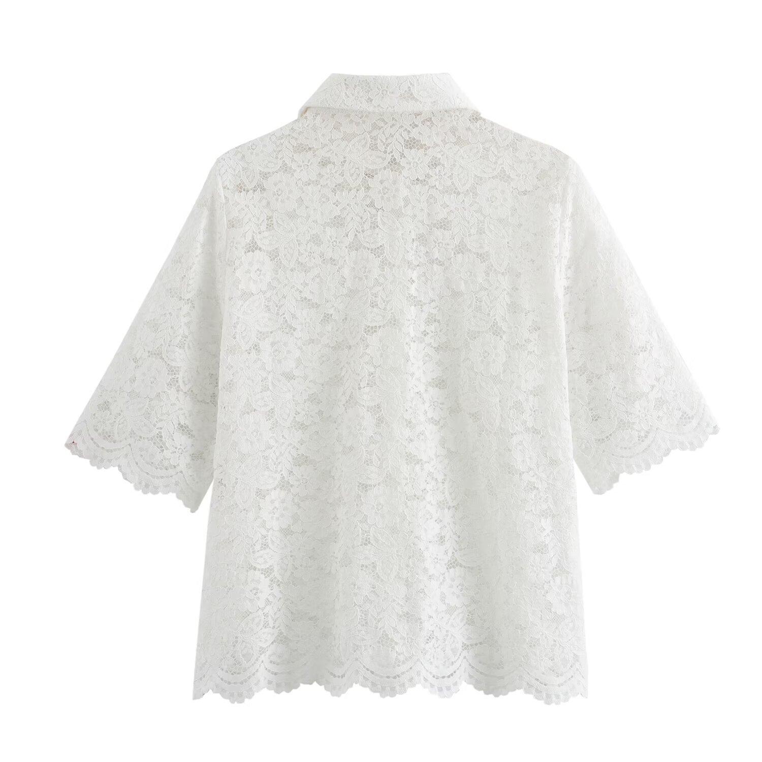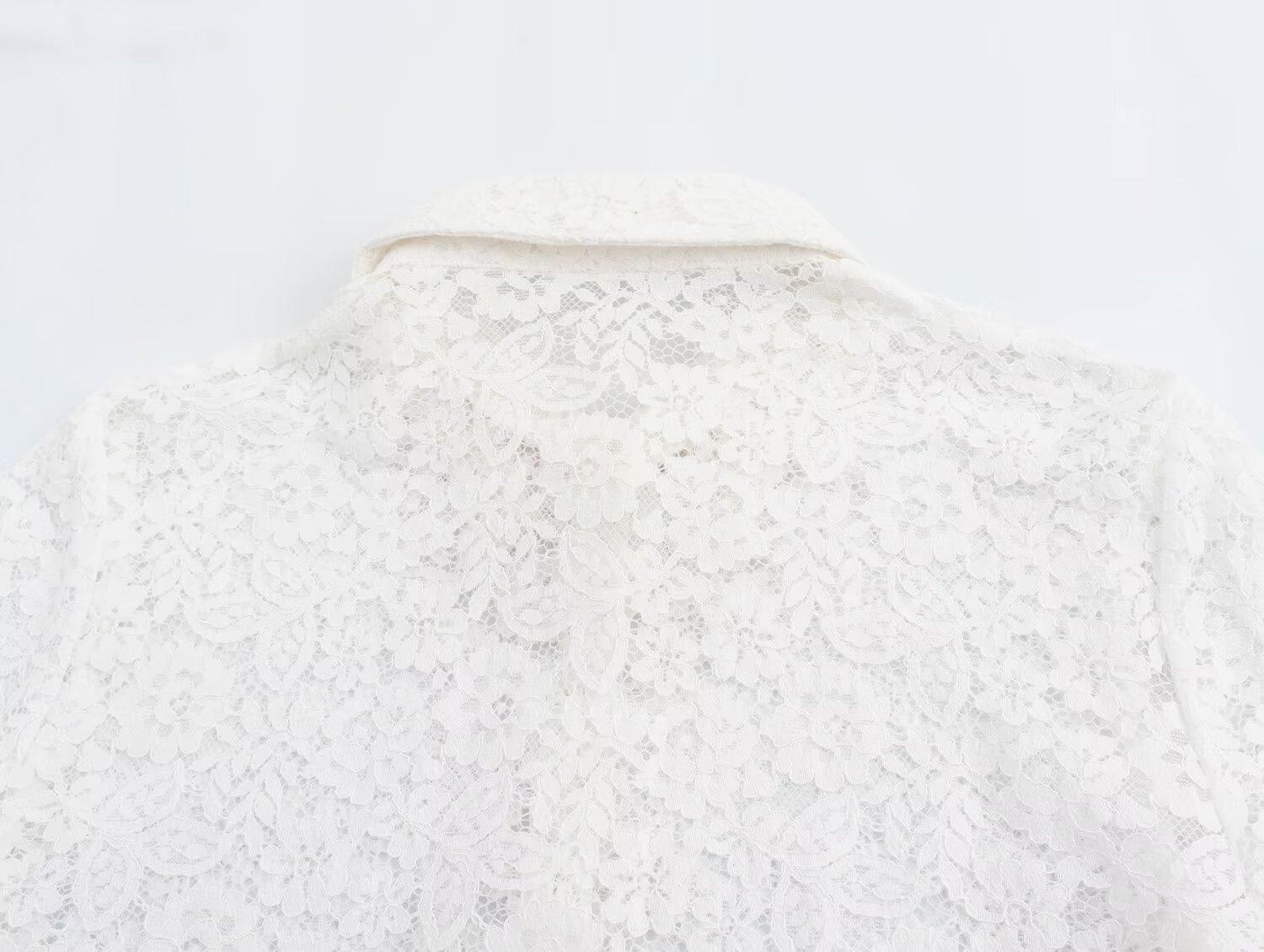 Comercio exterior transfronterizo de Amazon, ropa de mujer europea y americana, verano 2024, nueva moda, camisa corta de encaje, traje de pantalón recto