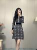2025 Nuevo Vestido de Punto de Estilo Lujo Ligero de Alta Gama Elegante para Dama Francesa Solapa en la Cintura Falda Línea A Pequeña Fragante