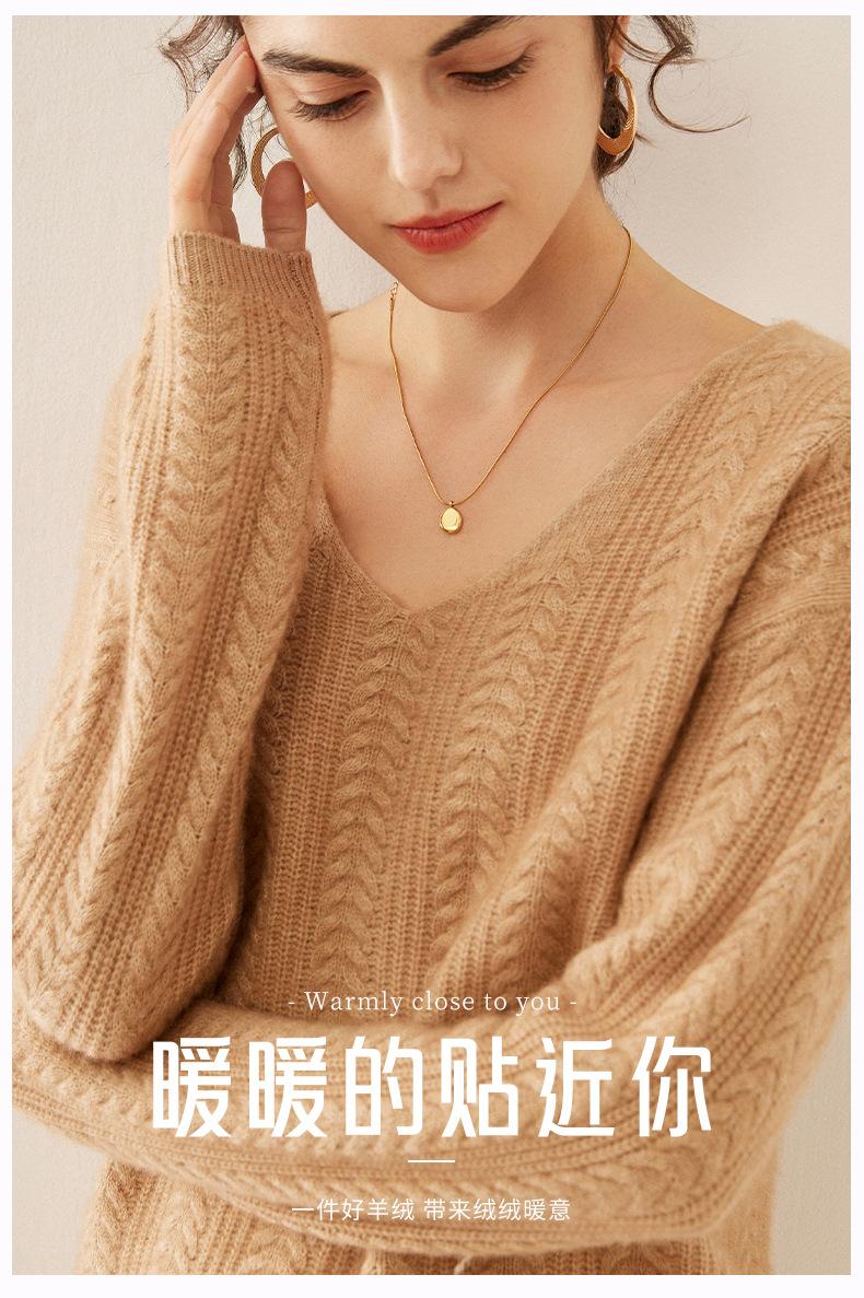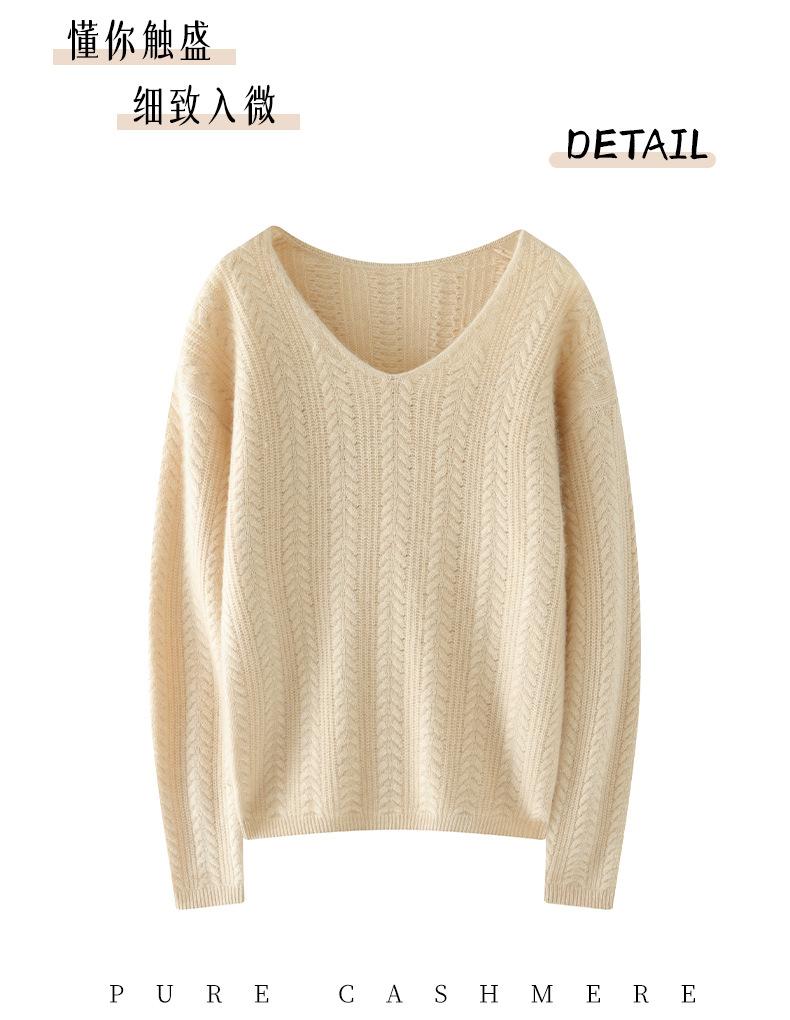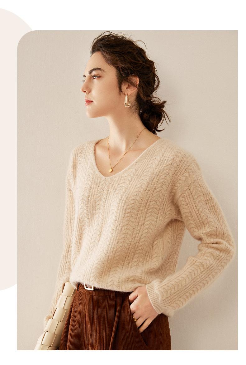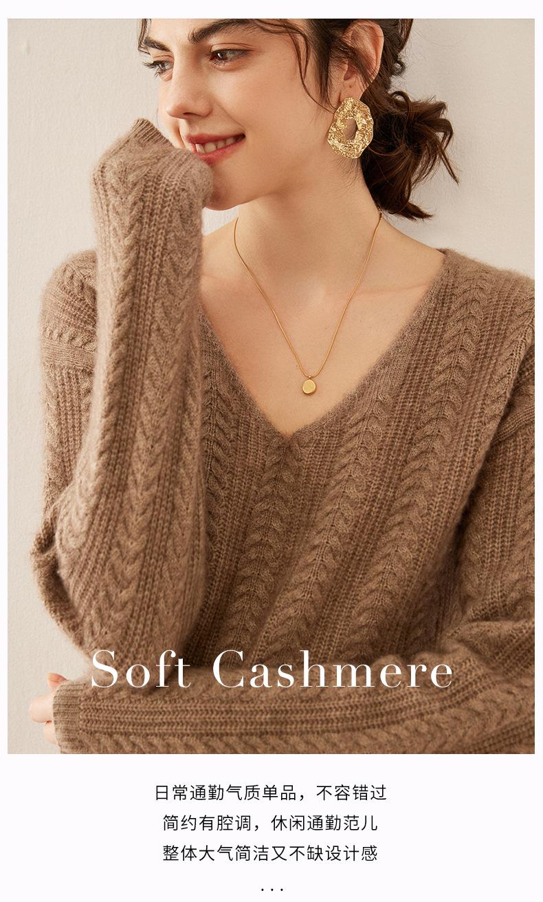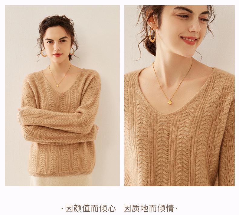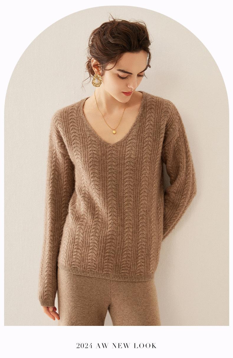 Suéter de punto de cachemira para mujer, jersey de jacquard con cuello en V, estilo holgado y holgado, para otoño e invierno, 2024