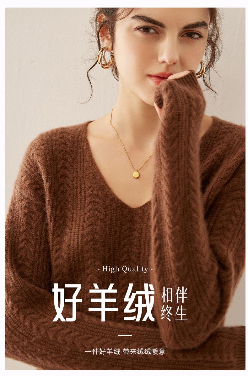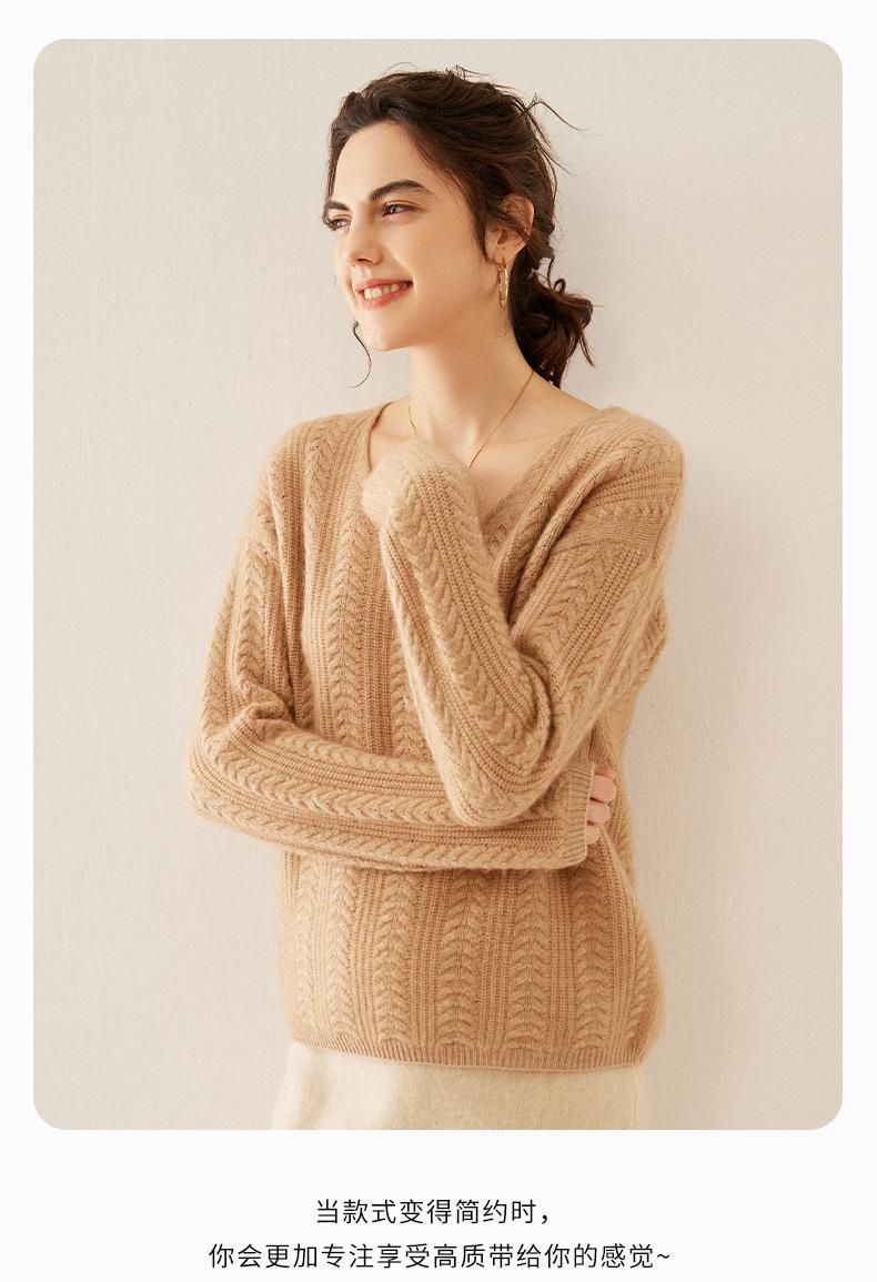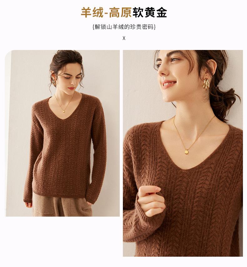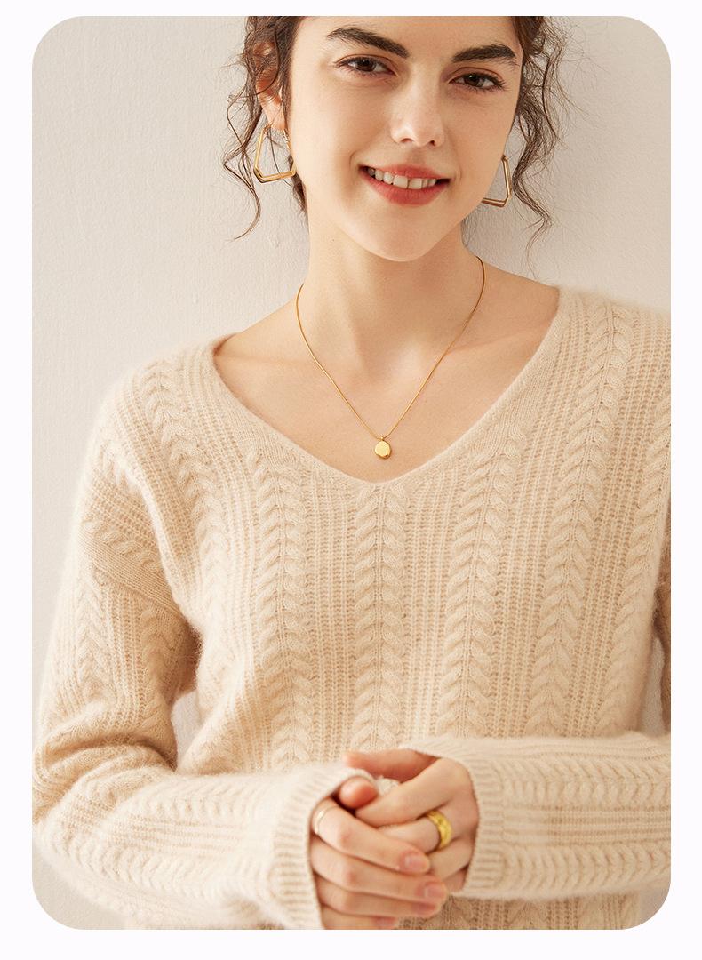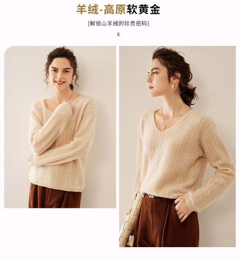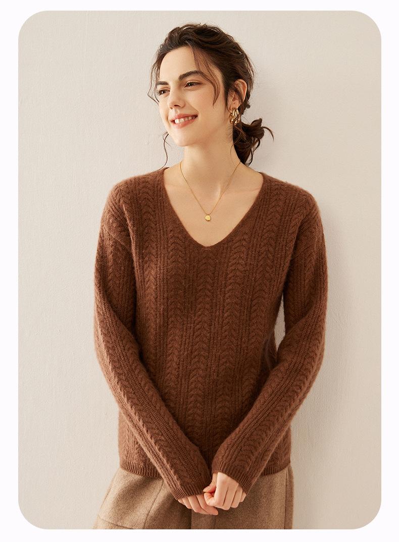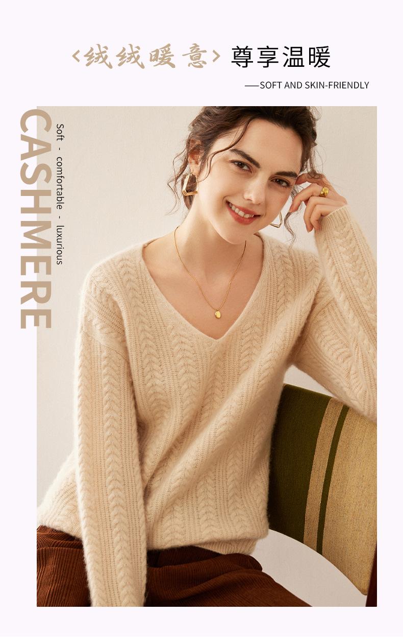 Suéter de punto de cachemira para mujer, jersey de jacquard con cuello en V, estilo holgado y holgado, para otoño e invierno, 2024