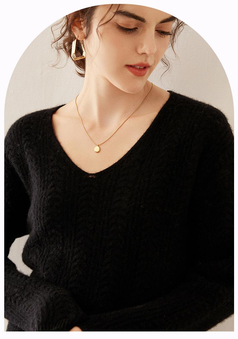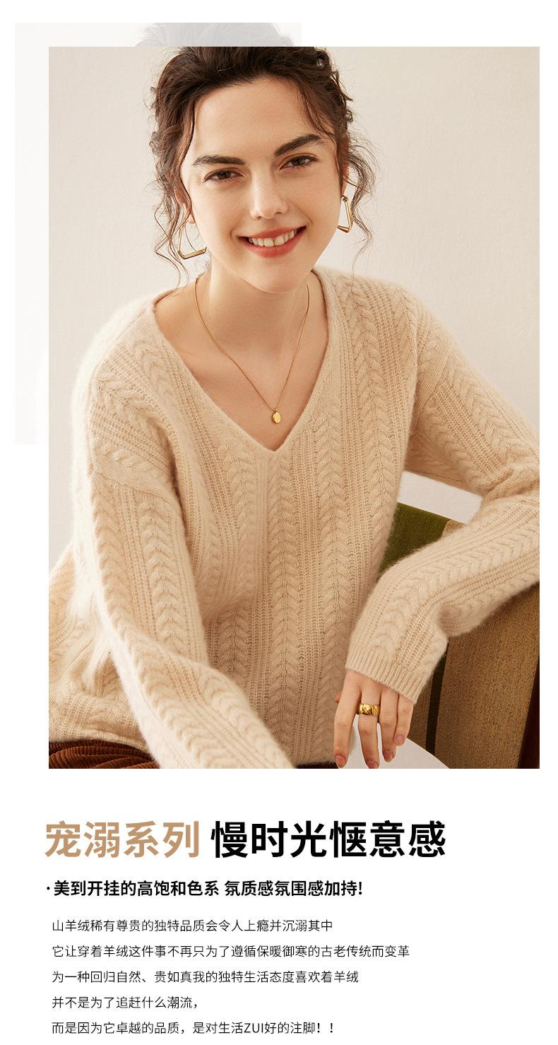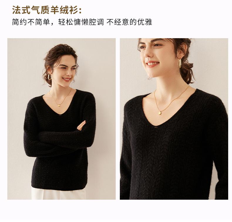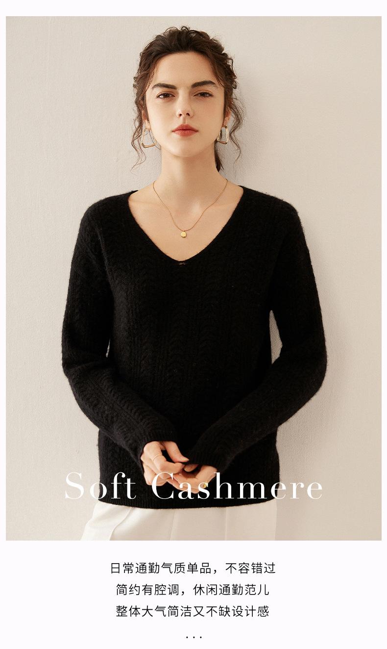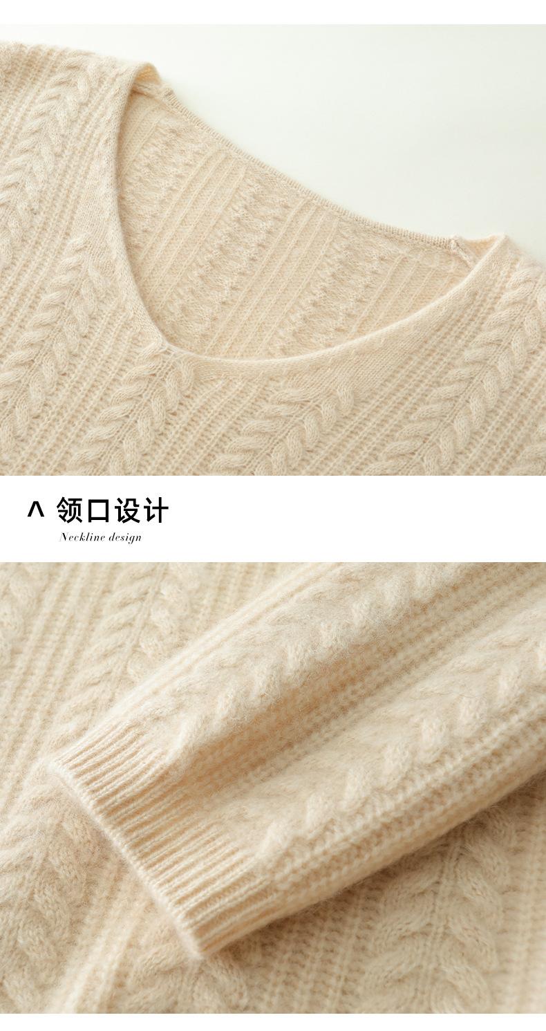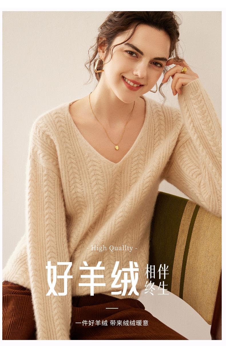 Suéter de punto de cachemira para mujer, jersey de jacquard con cuello en V, estilo holgado y holgado, para otoño e invierno, 2024