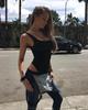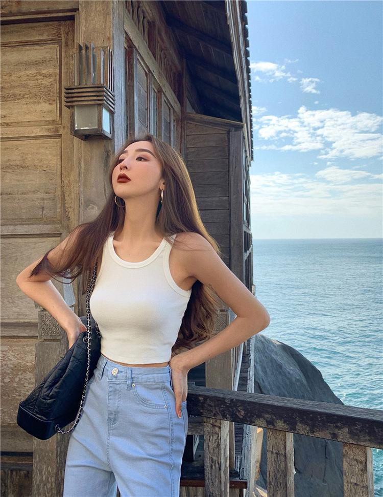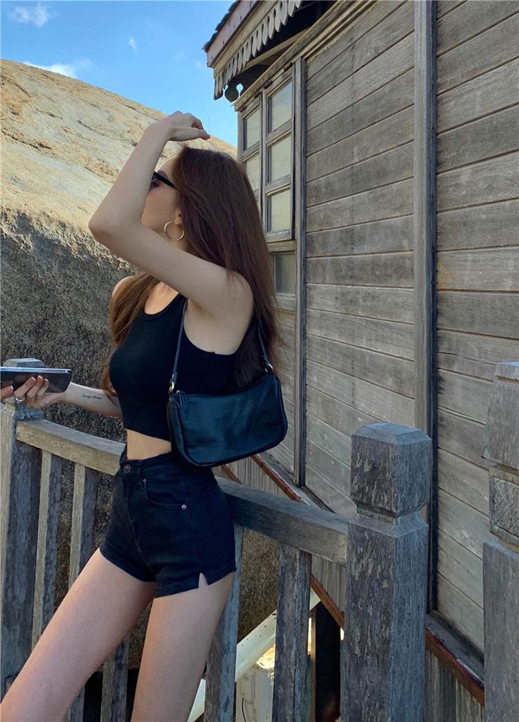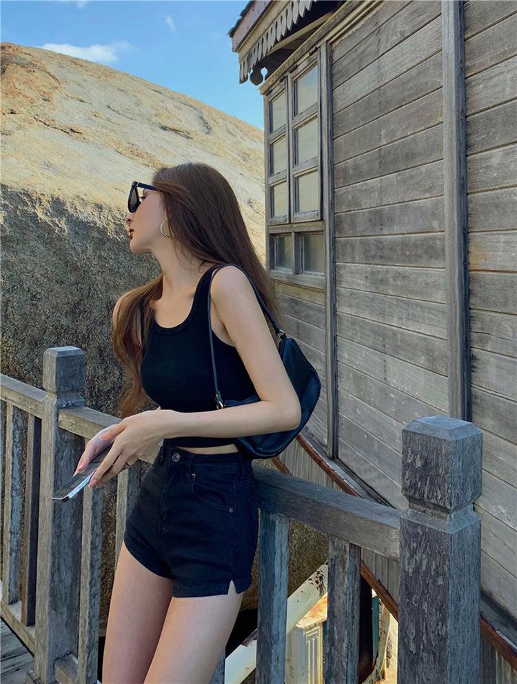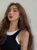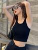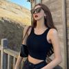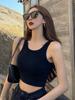 Chaleco negro de verano para mujer, con hilo interior, sin mangas, con tirantes pequeños, corto, hasta el ombligo, prenda exterior sexy, sin mangas.