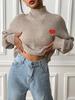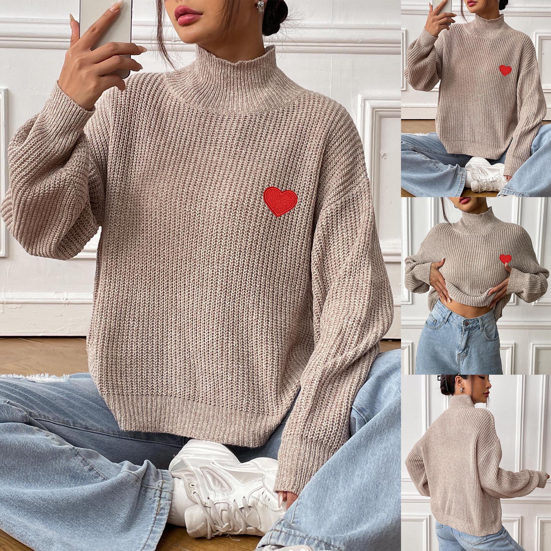 Suéter de cuello alto con media manga y flores de colores combinados para mujer, estilo europeo y americano, con pegatinas bordadas de amor, para otoño e invierno.