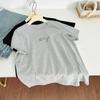 Women's Lar Contrast Color Embroidered Shoulder Short-sleeved T-shirt