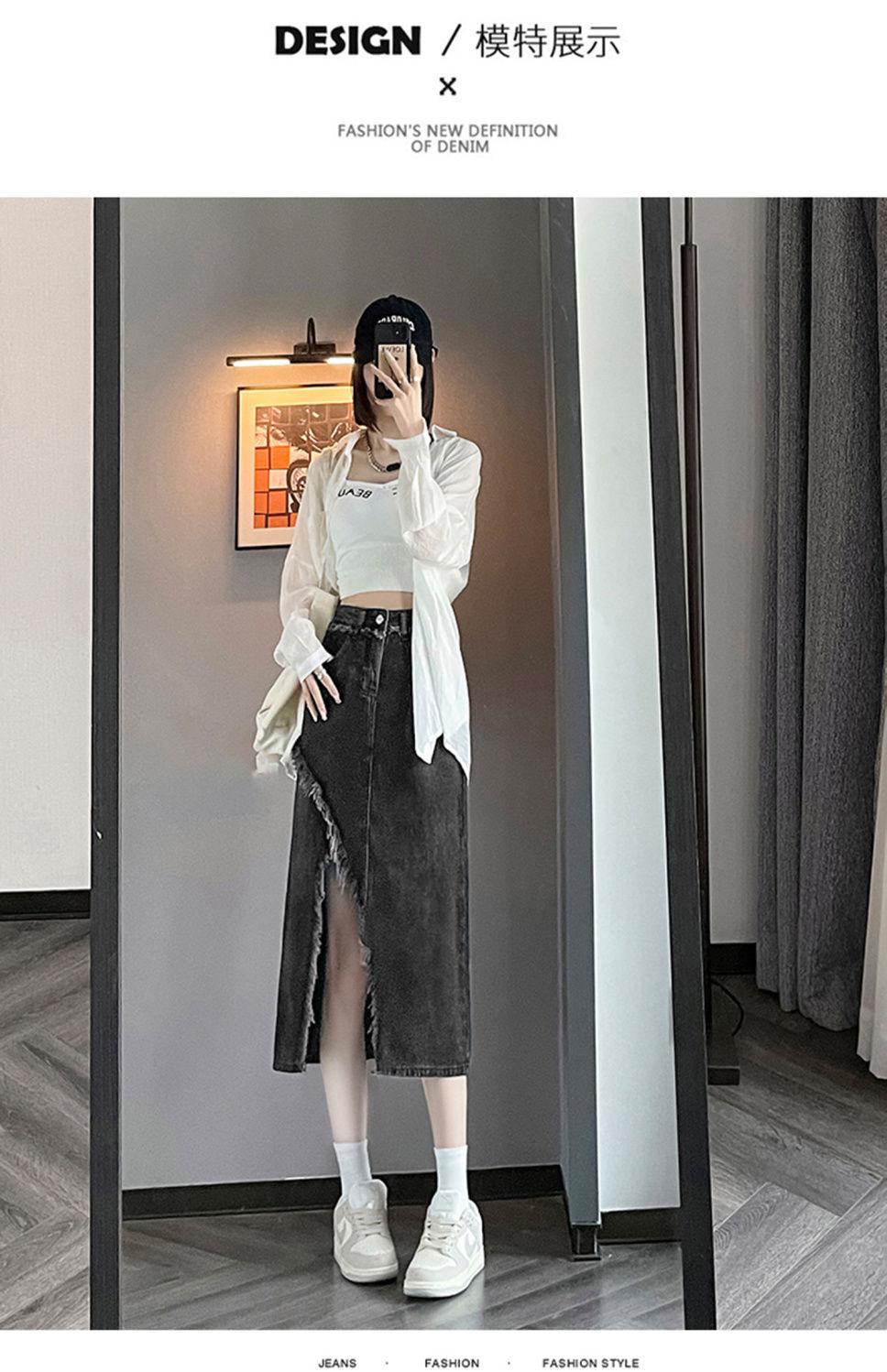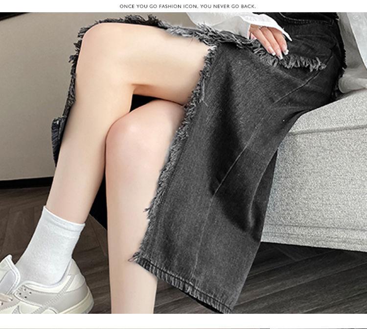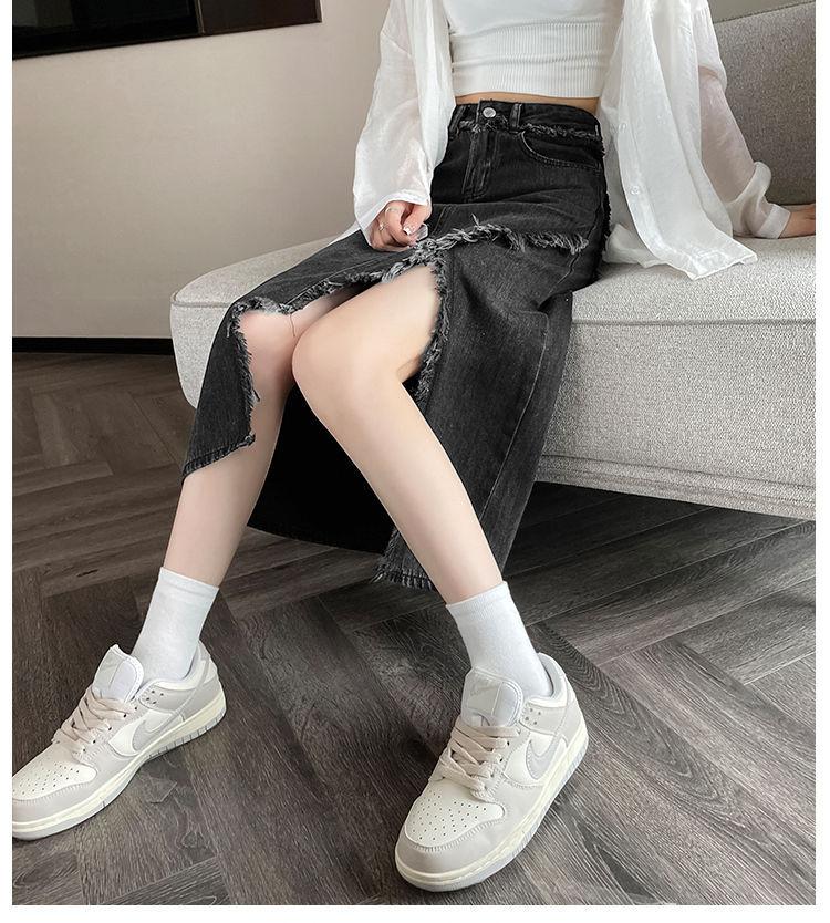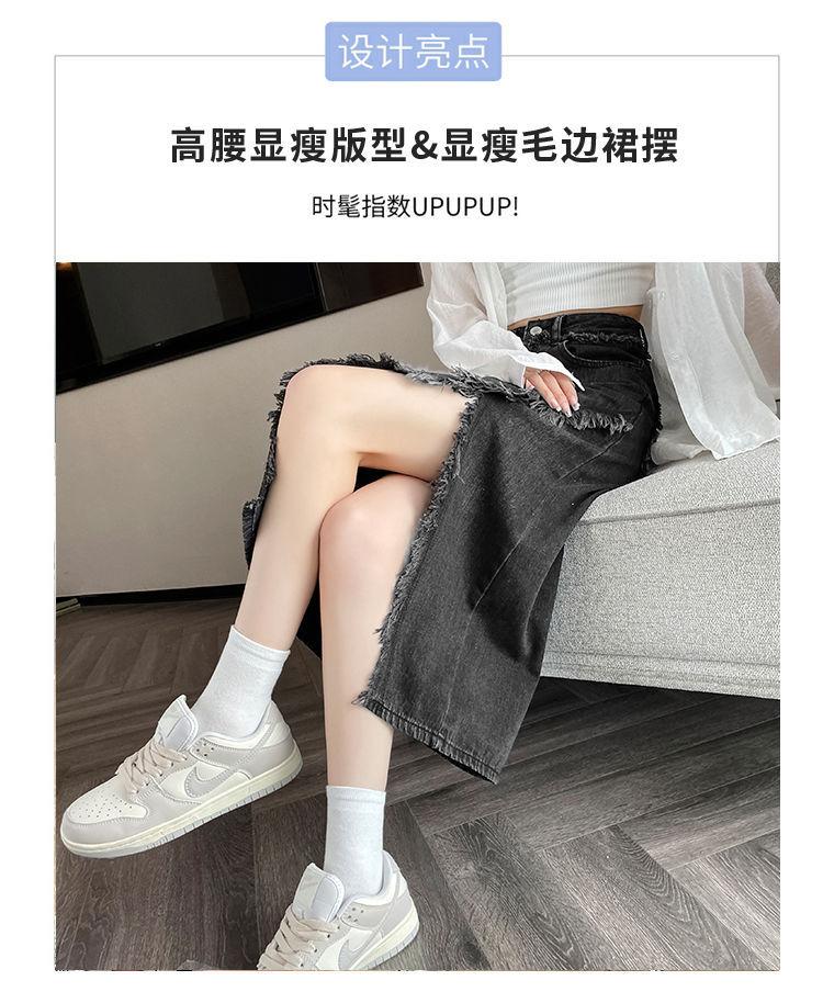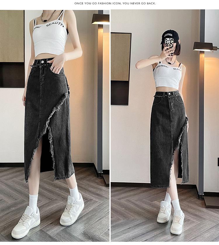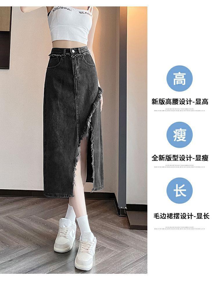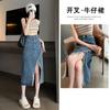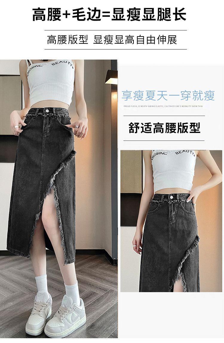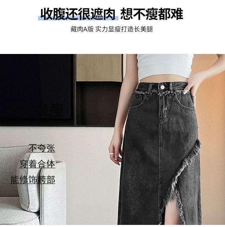 Falda vaquera de cintura alta con abertura para mujer, verano 2023, nueva falda de verano de longitud media, corte A, larga hasta la cadera.