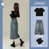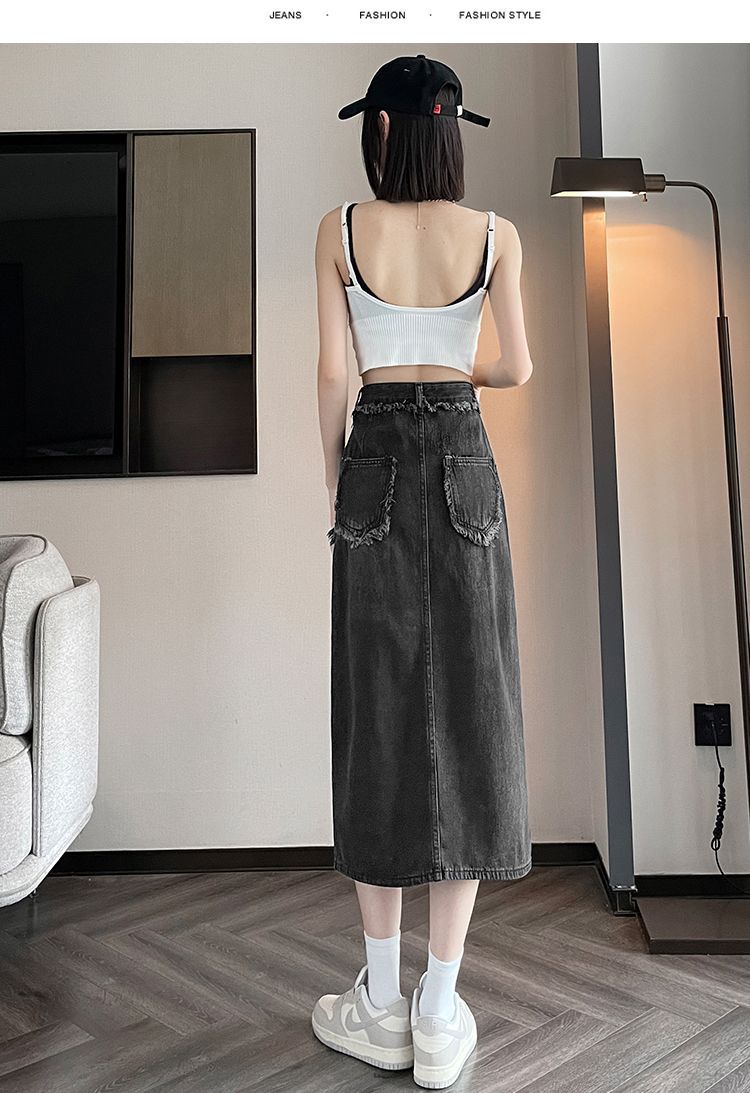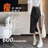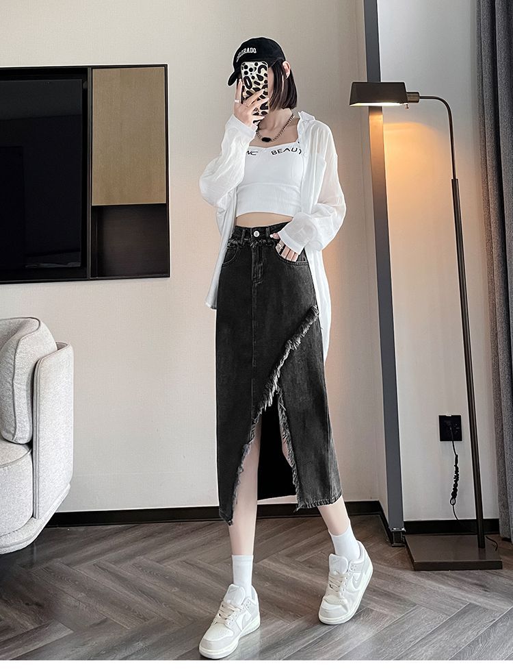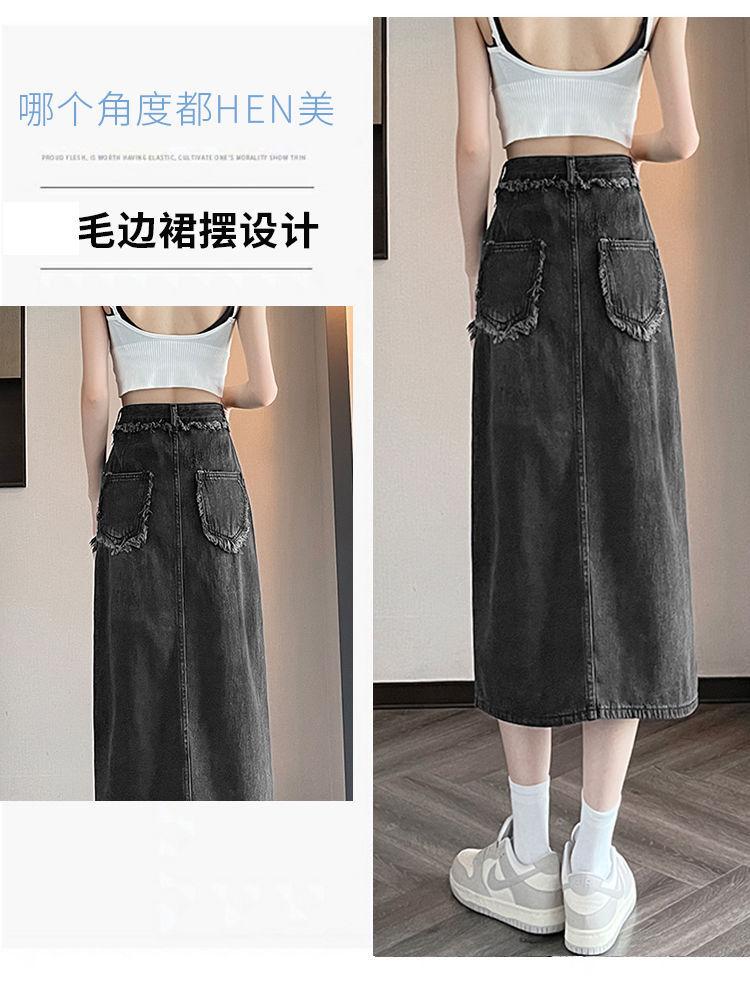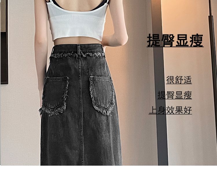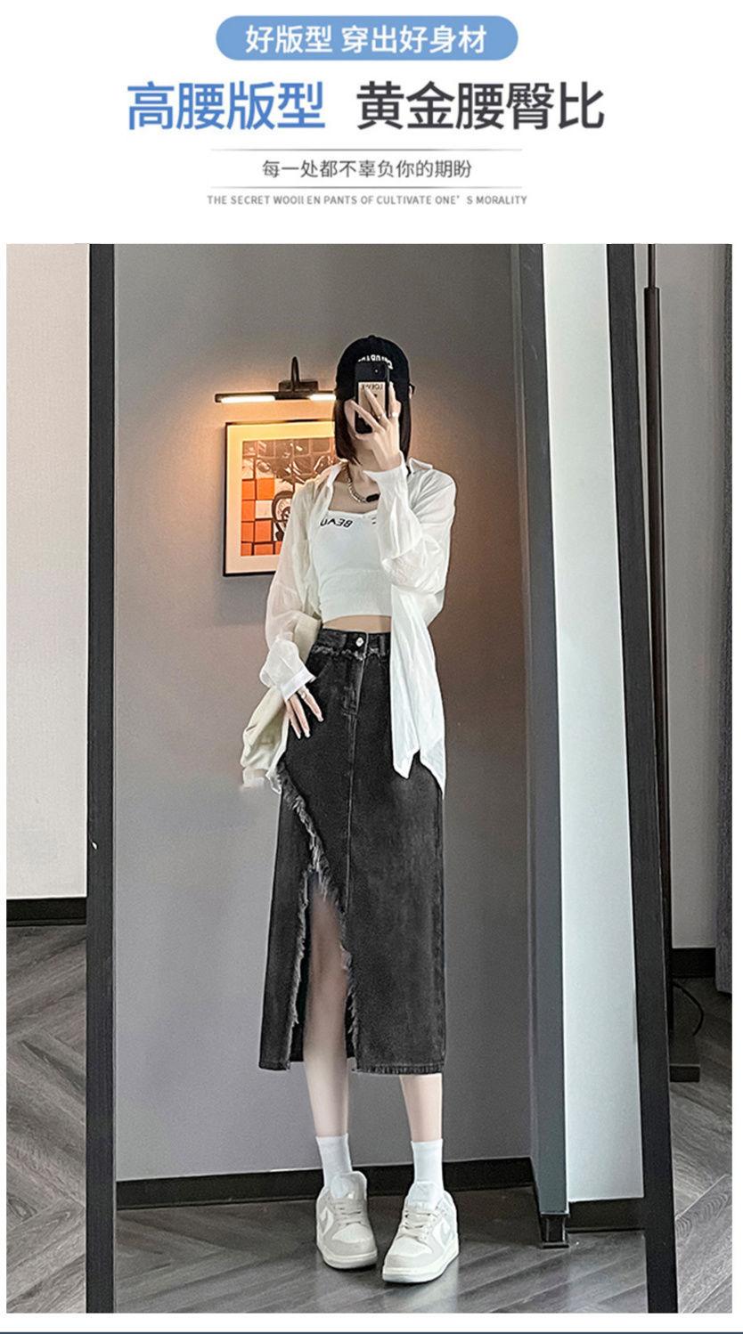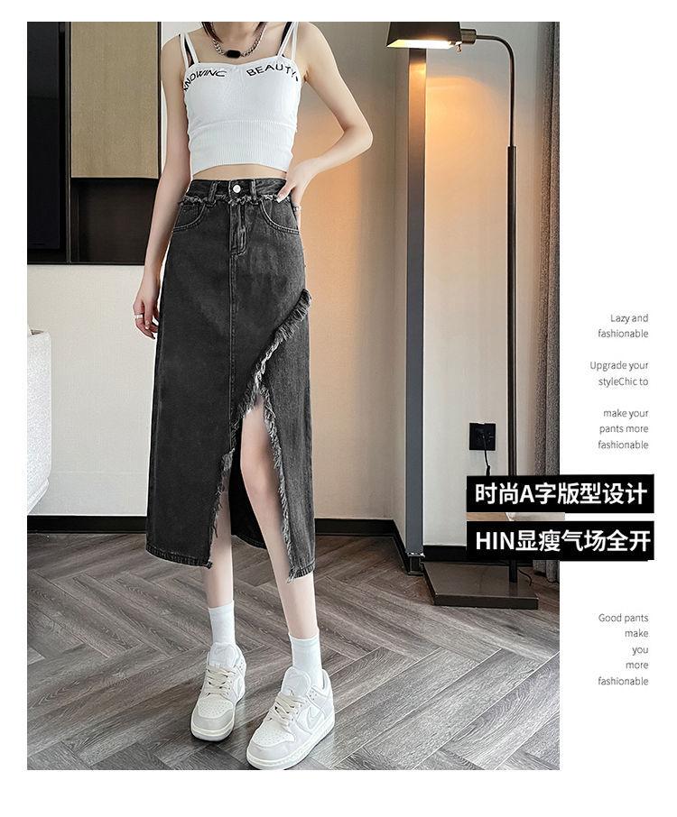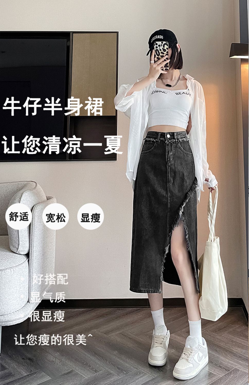 Falda vaquera de cintura alta con abertura para mujer, verano 2023, nueva falda de verano de longitud media, corte A, larga hasta la cadera.