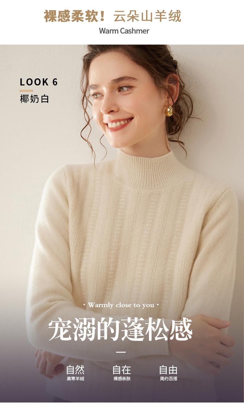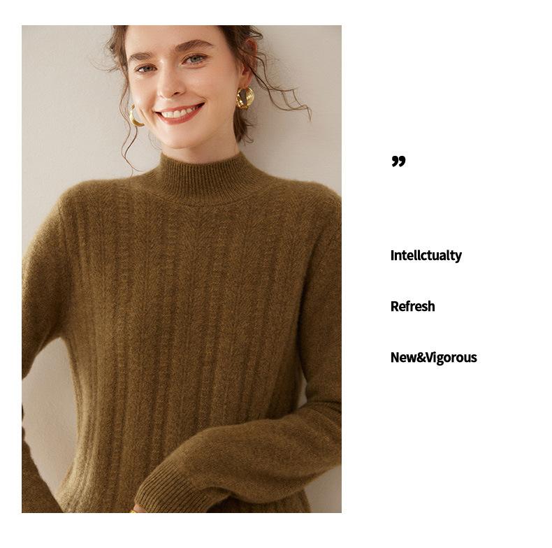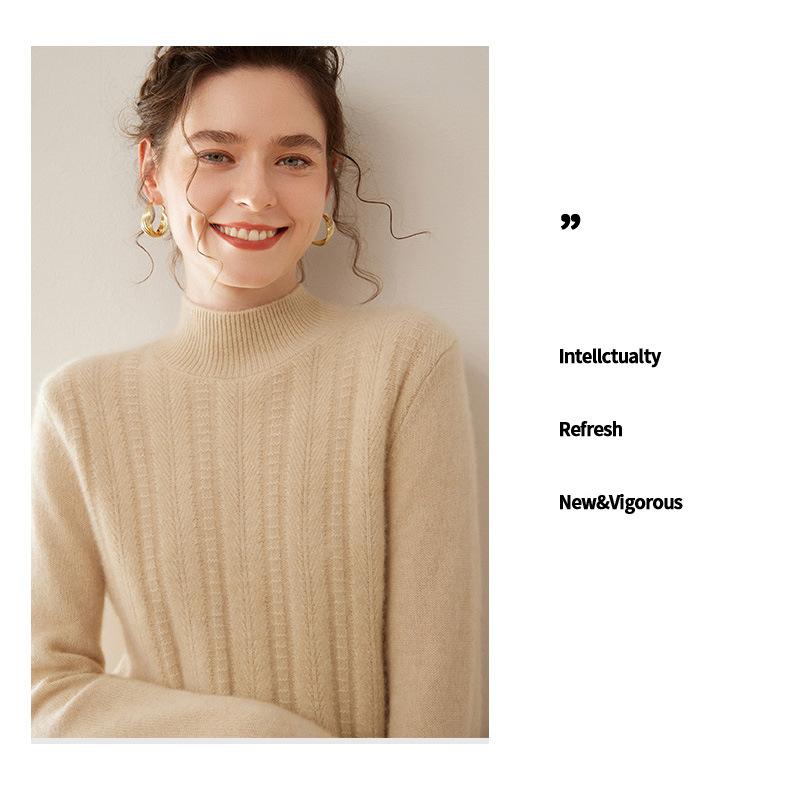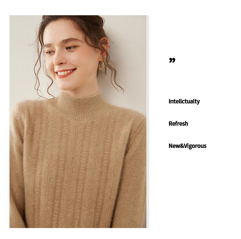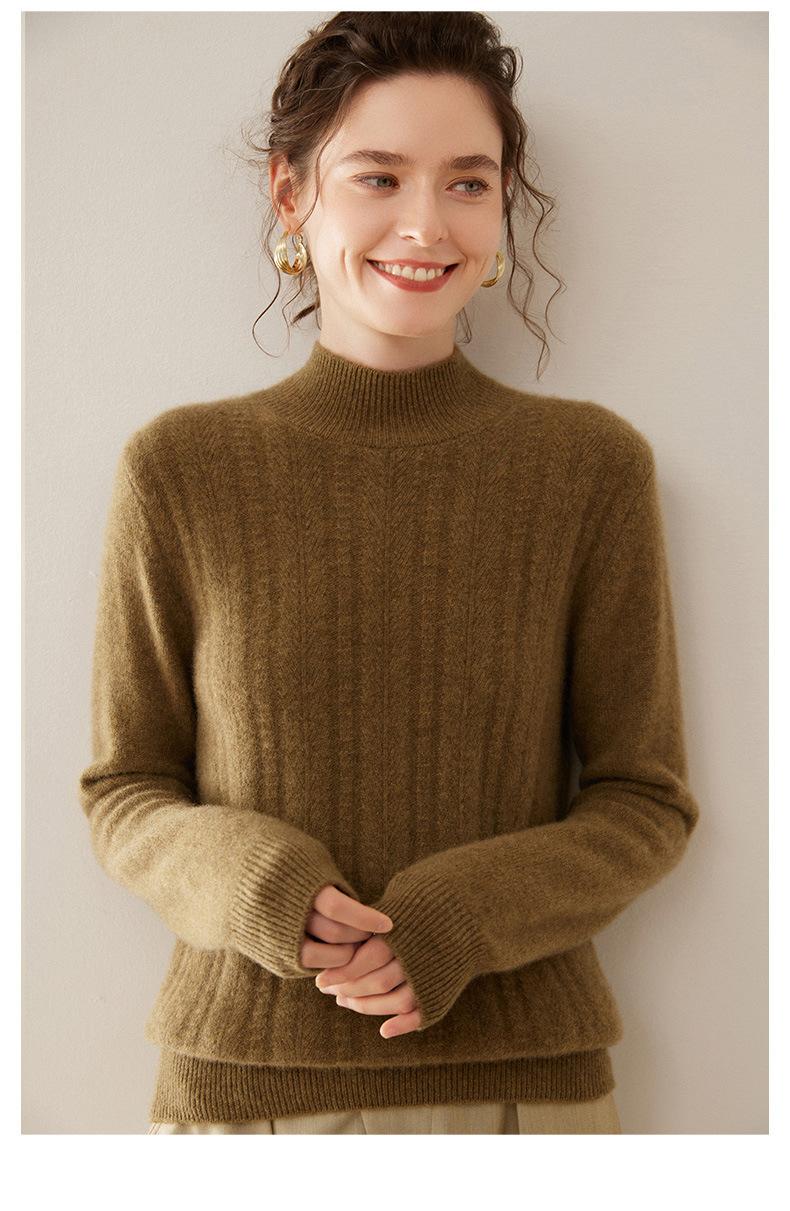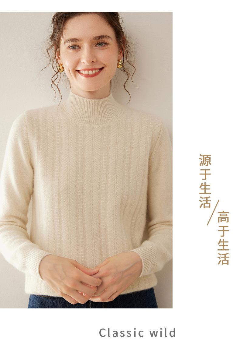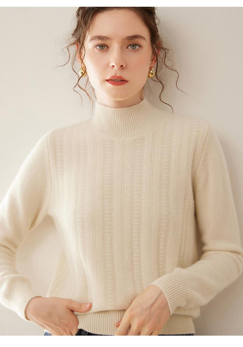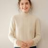 Suéter de Cachemira para Mujer Grueso Cuello Alto Medio Jersey Hombro Flor Espiga de Trigo Tejido Camiseta Básica Color Sólido Combinable Suéter de Cachemira