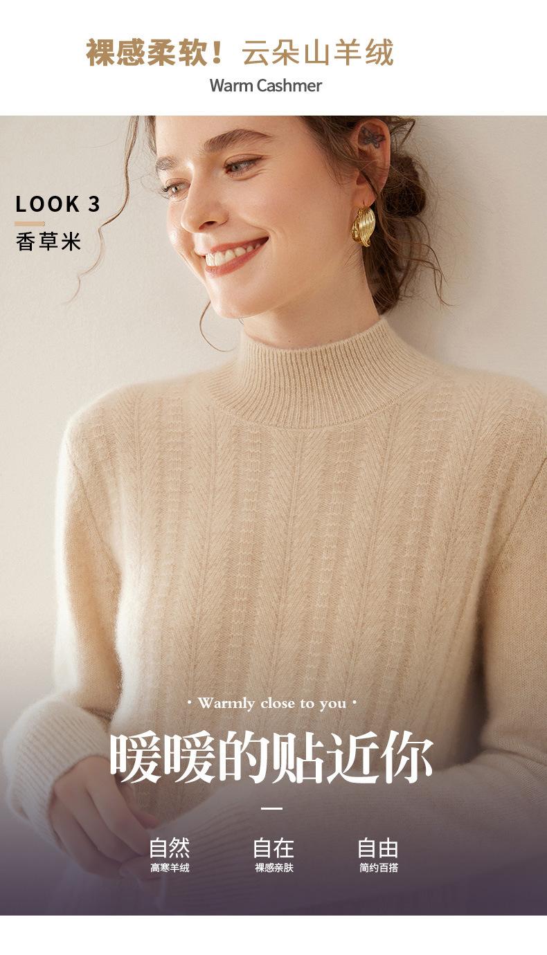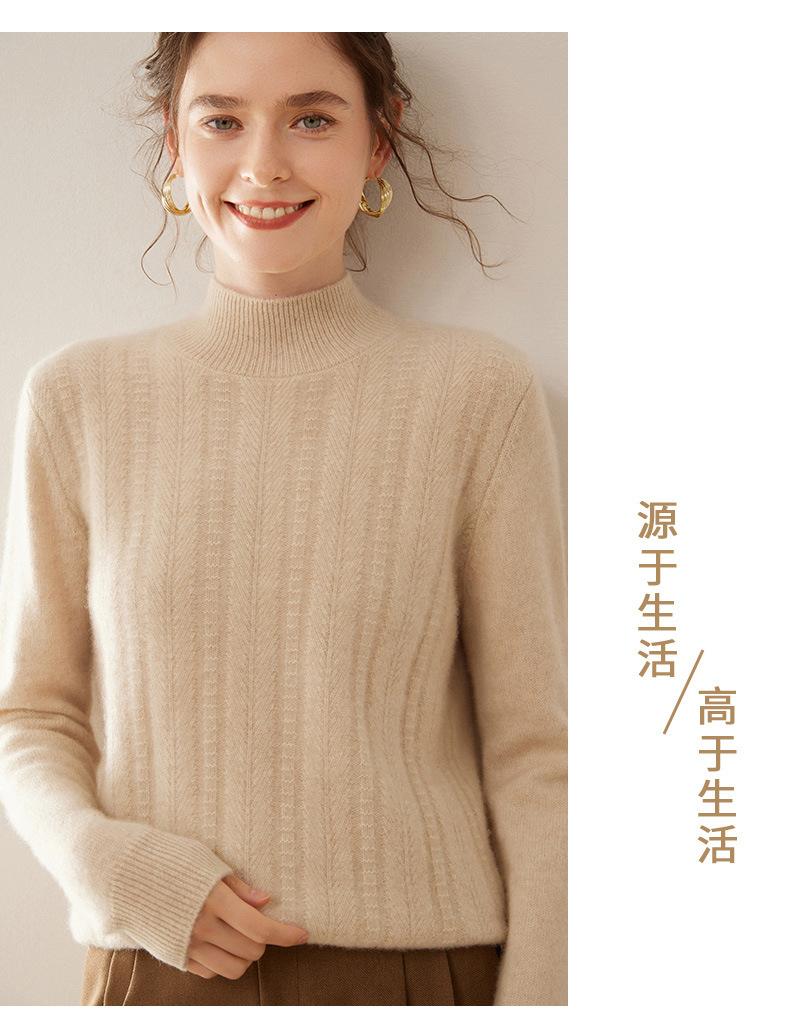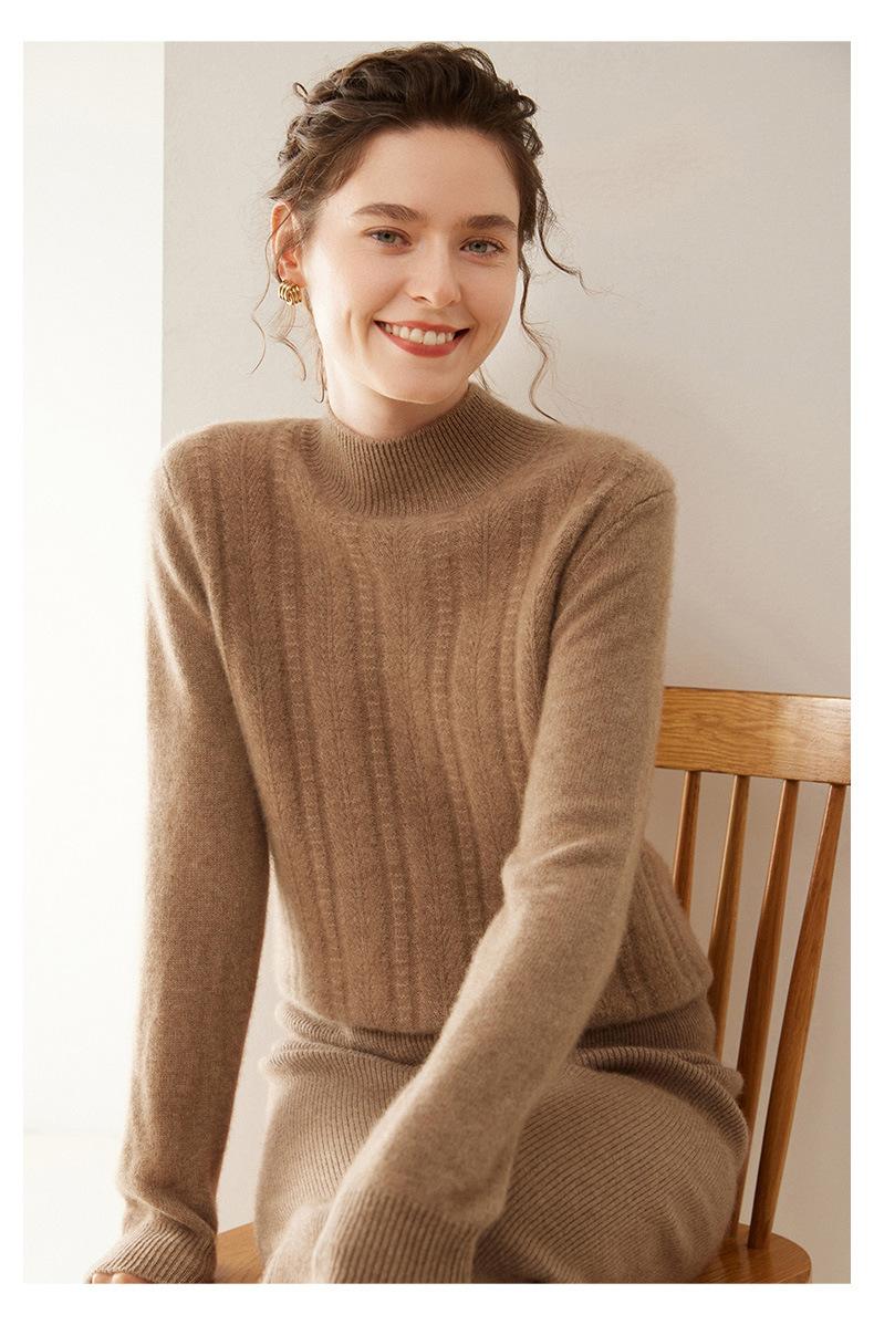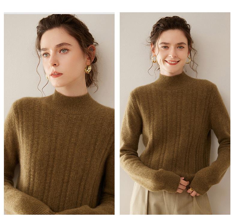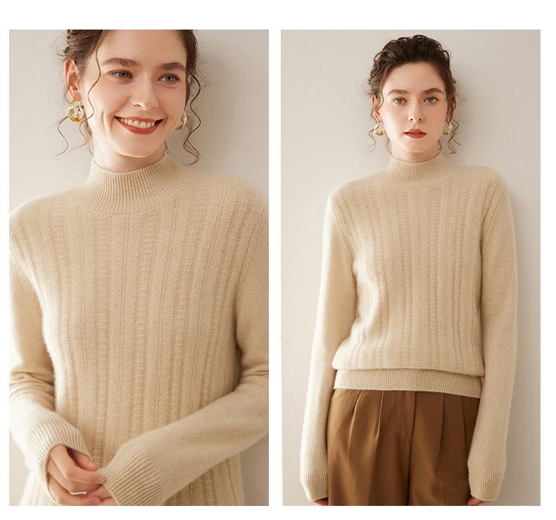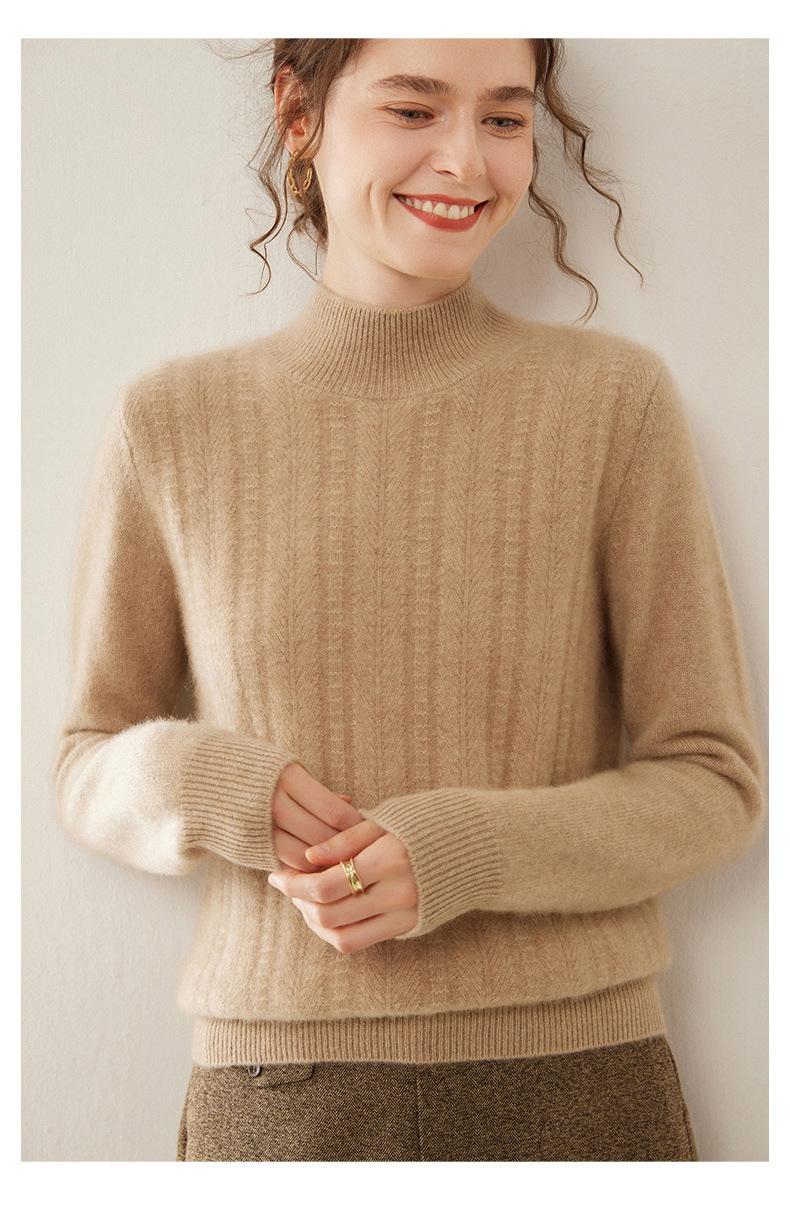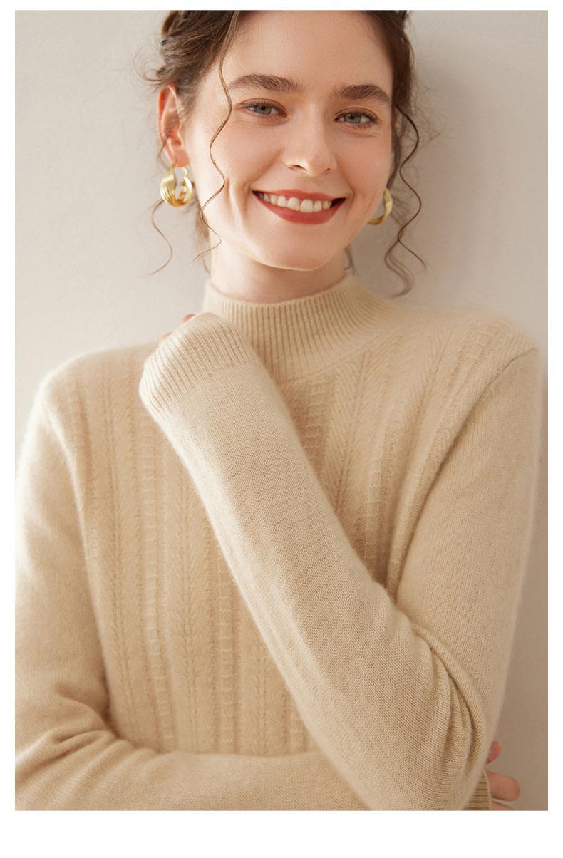 Suéter de Cachemira para Mujer Grueso Cuello Alto Medio Jersey Hombro Flor Espiga de Trigo Tejido Camiseta Básica Color Sólido Combinable Suéter de Cachemira