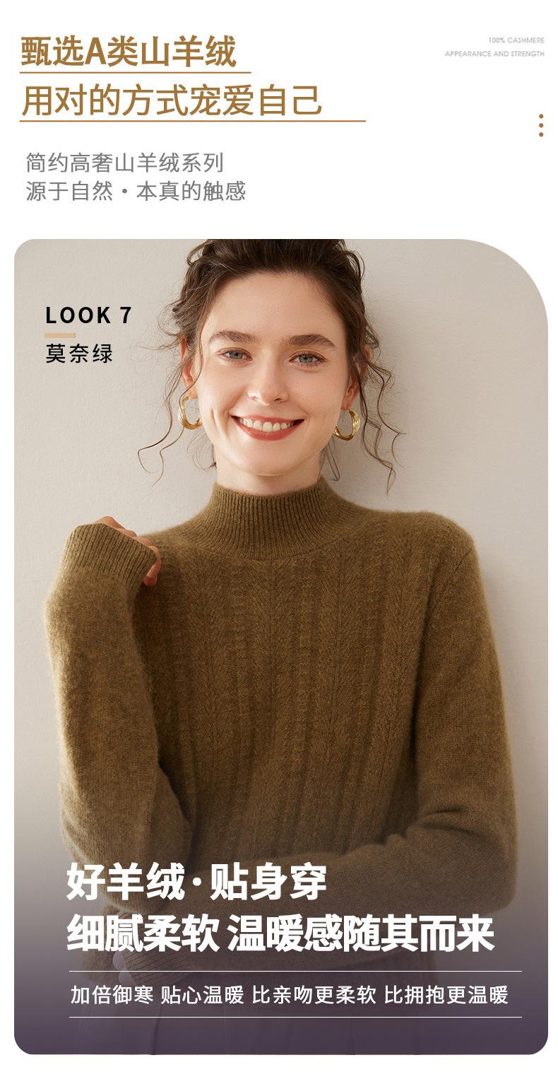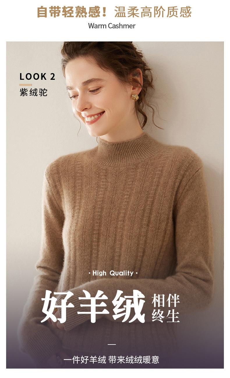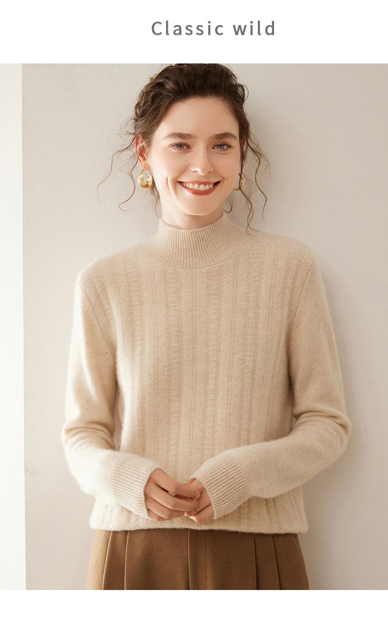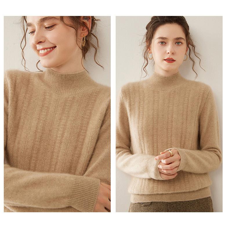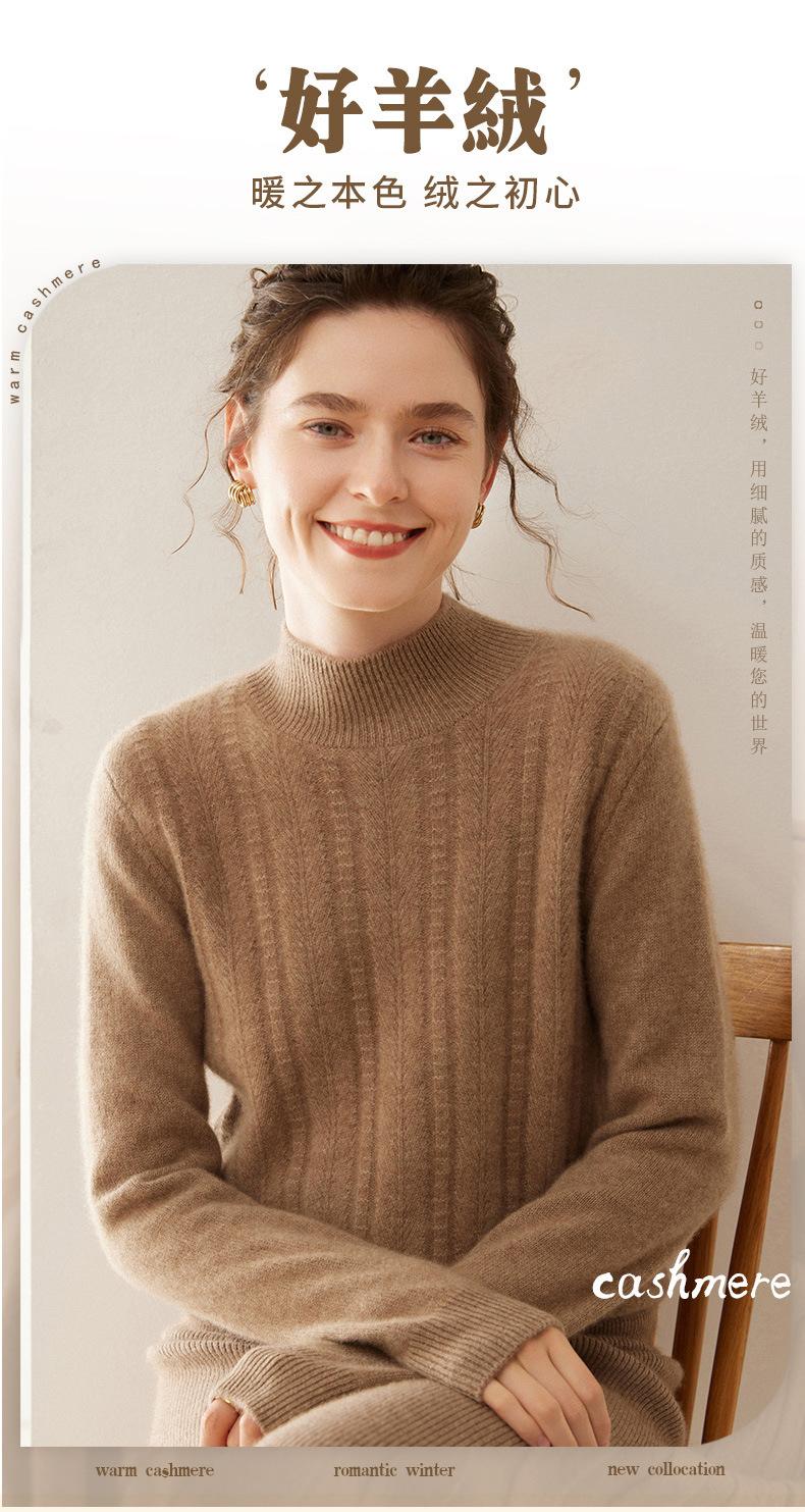Suéter de Cachemira para Mujer Grueso Cuello Alto Medio Jersey Hombro Flor Espiga de Trigo Tejido Camiseta Básica Color Sólido Combinable Suéter de Cachemira
