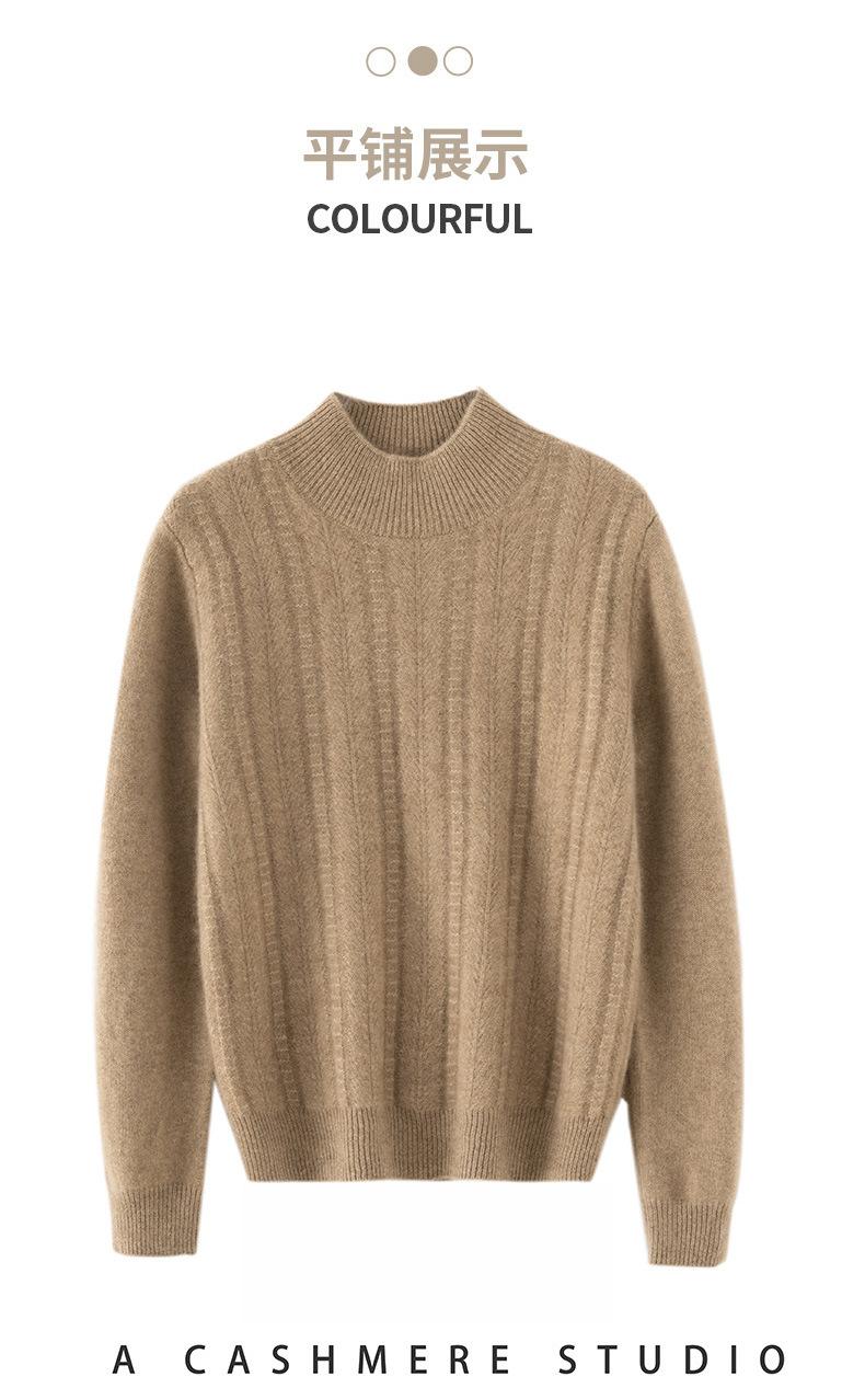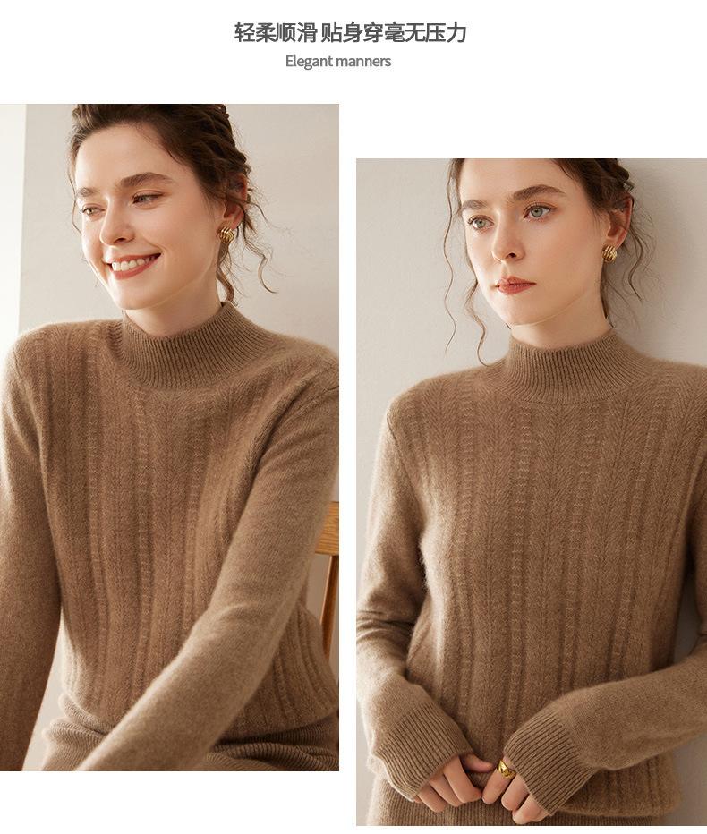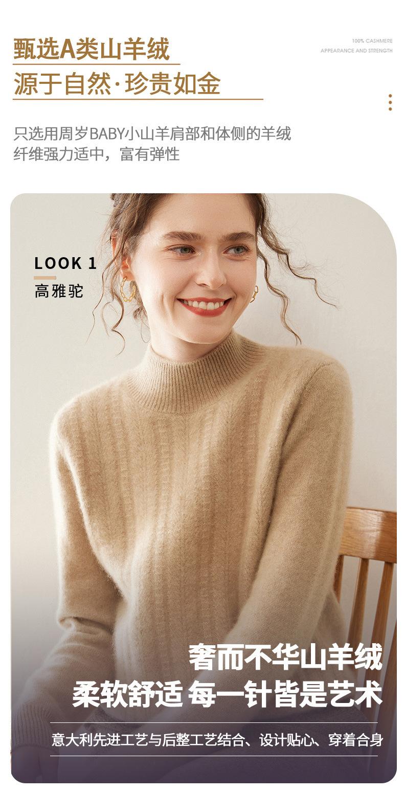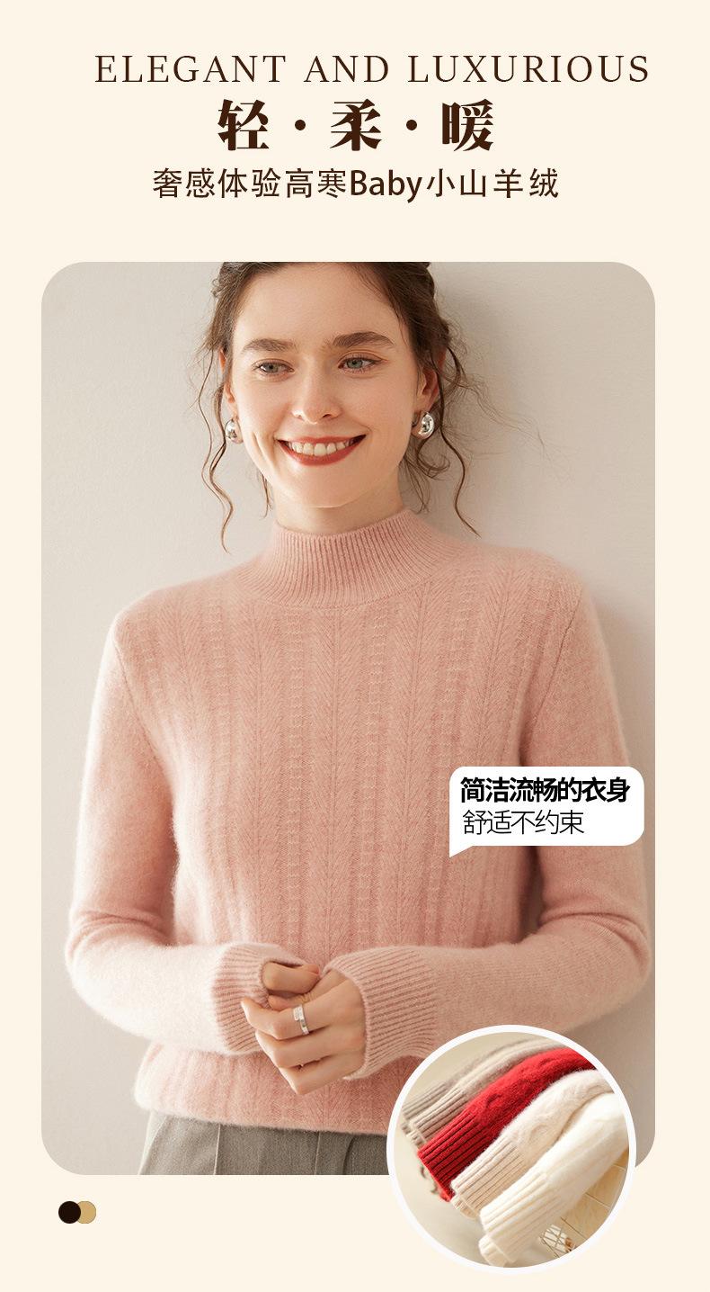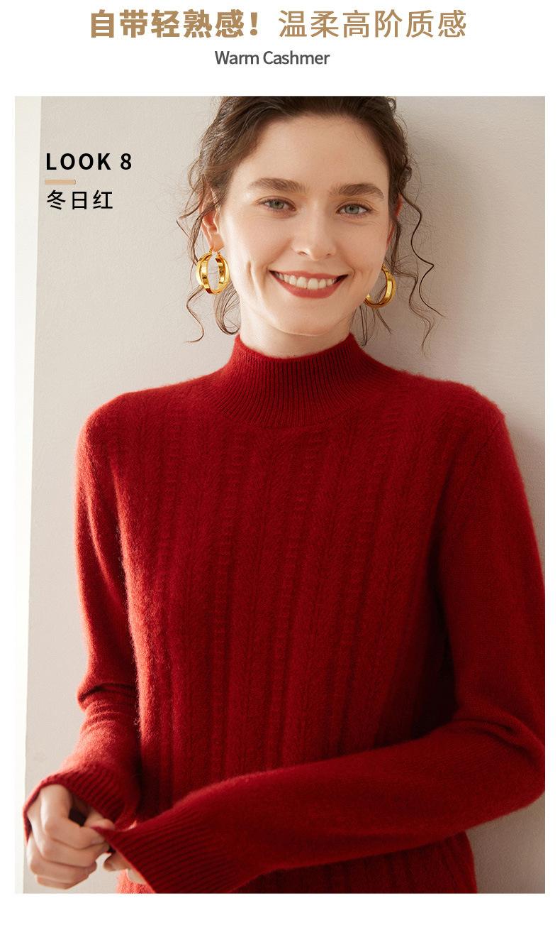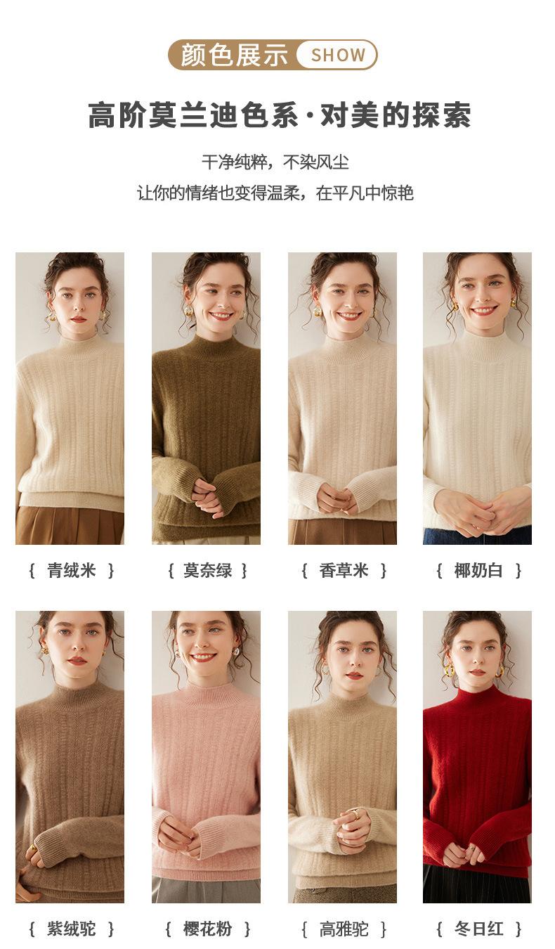 Suéter de Cachemira para Mujer Grueso Cuello Alto Medio Jersey Hombro Flor Espiga de Trigo Tejido Camiseta Básica Color Sólido Combinable Suéter de Cachemira