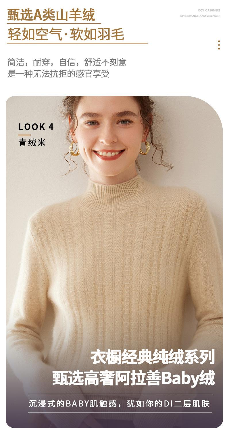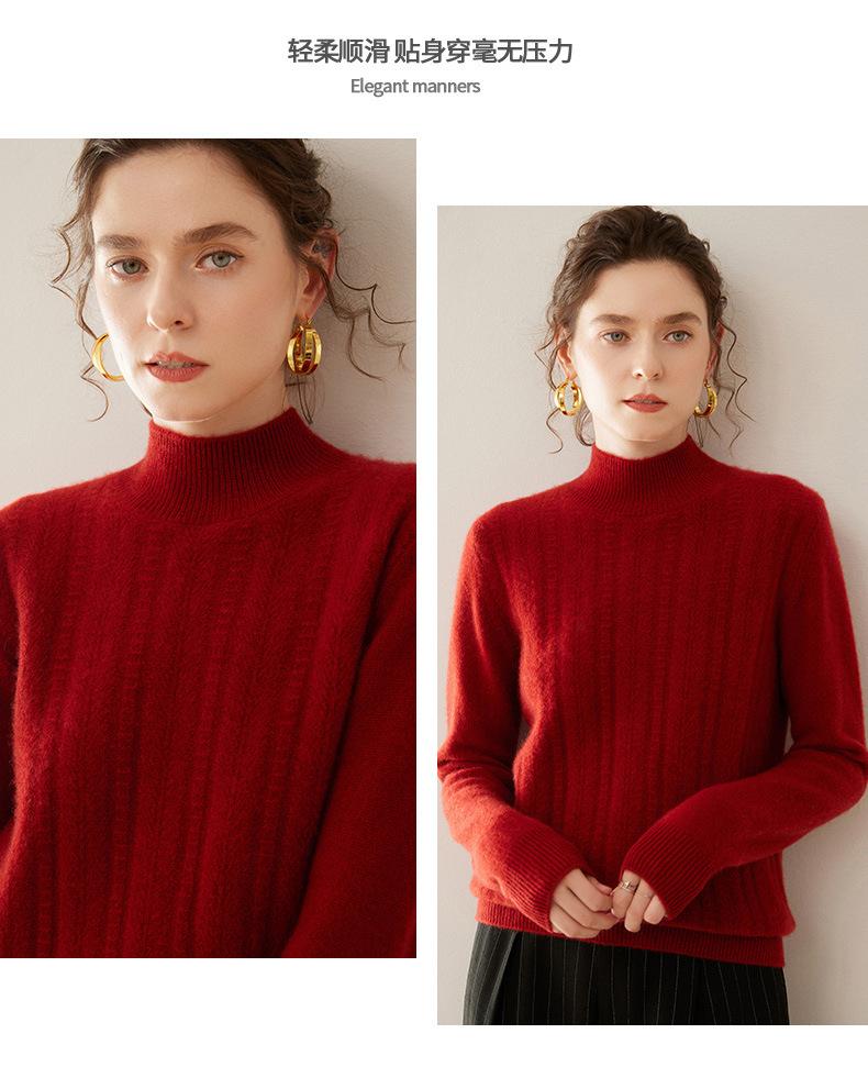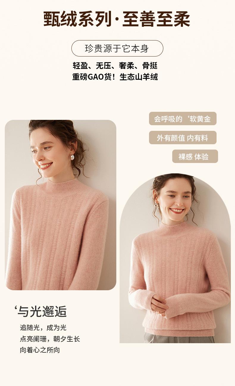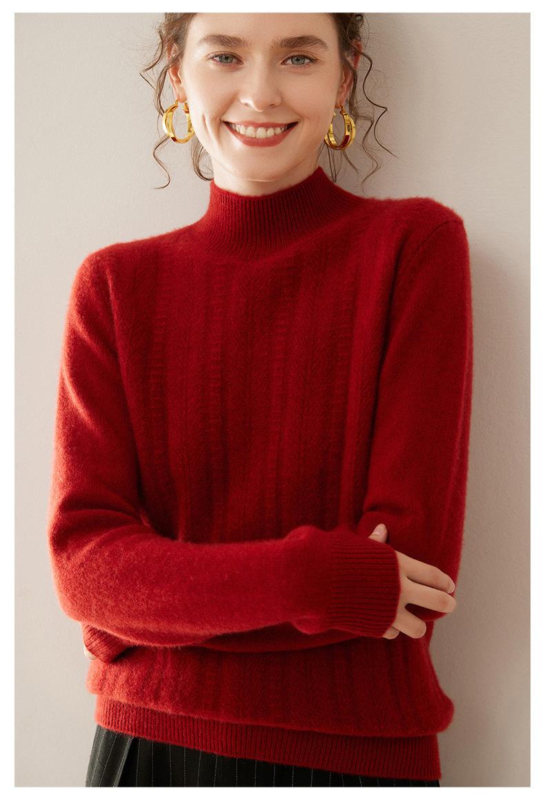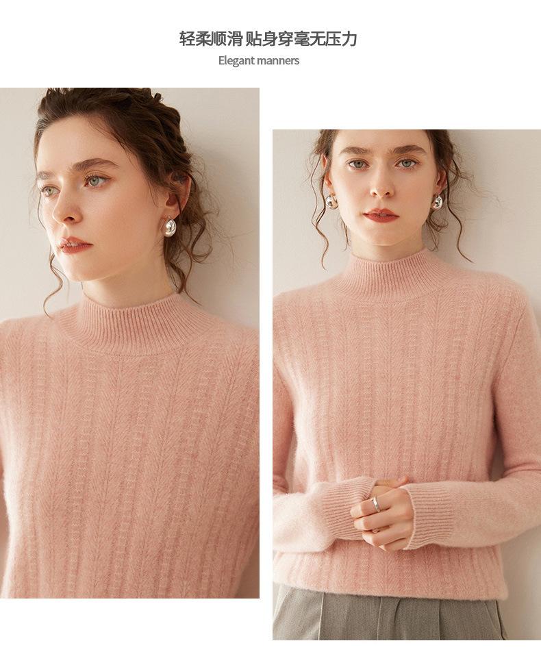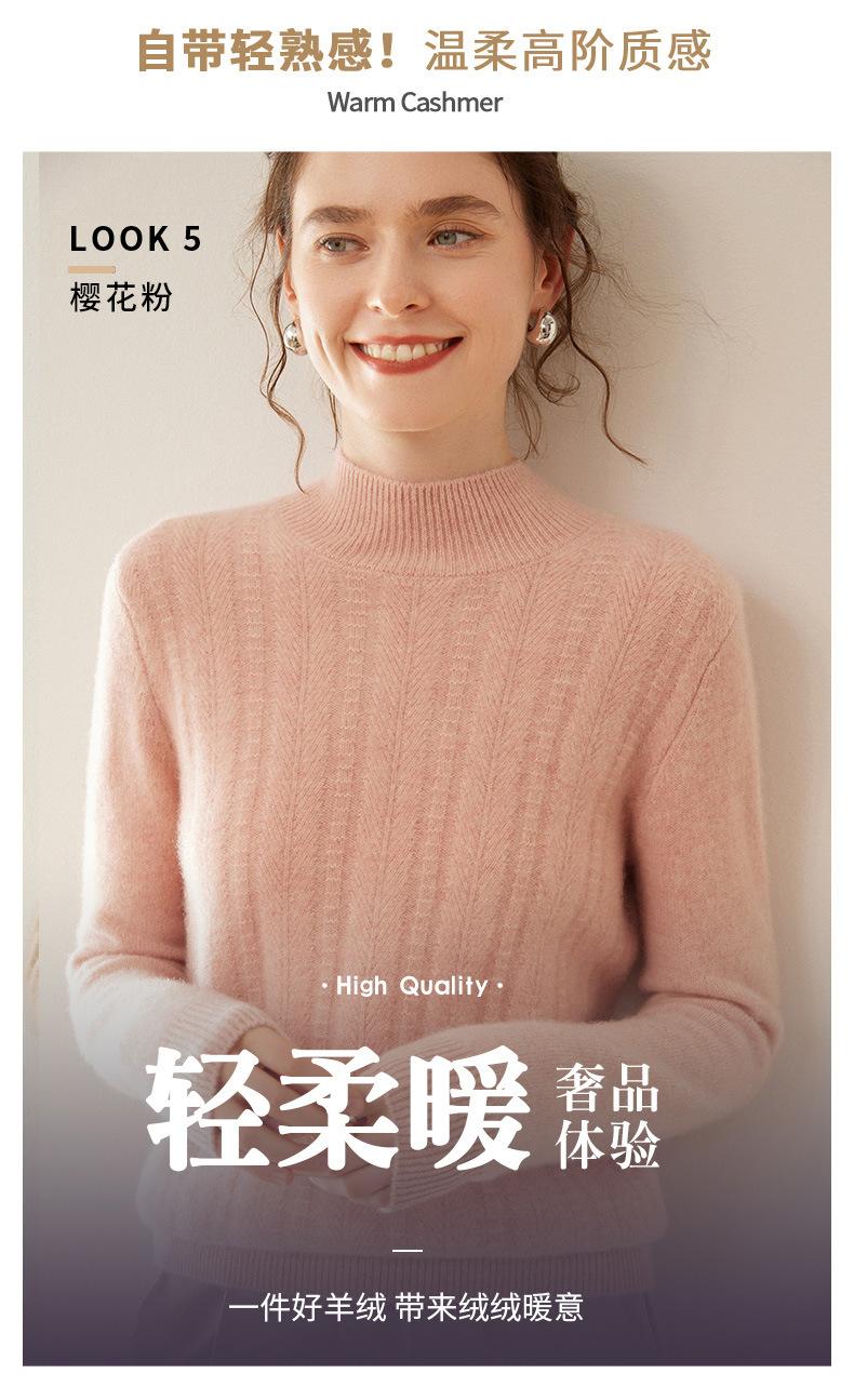 Suéter de Cachemira para Mujer Grueso Cuello Alto Medio Jersey Hombro Flor Espiga de Trigo Tejido Camiseta Básica Color Sólido Combinable Suéter de Cachemira
