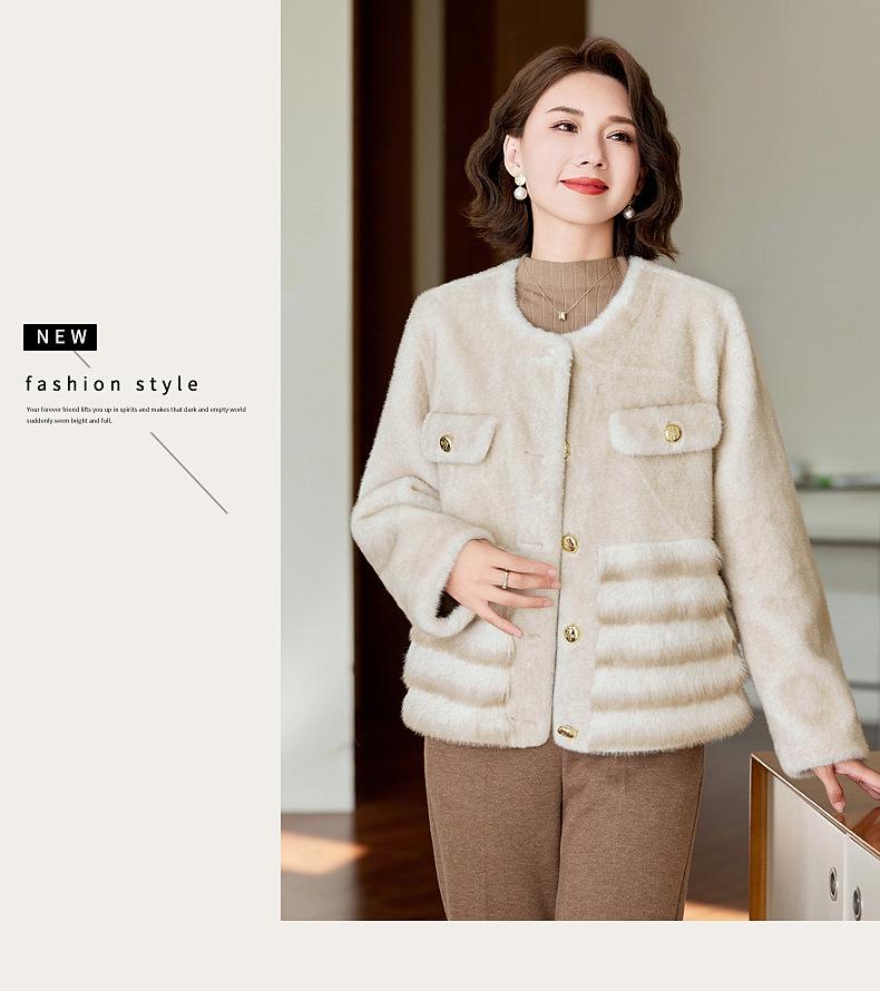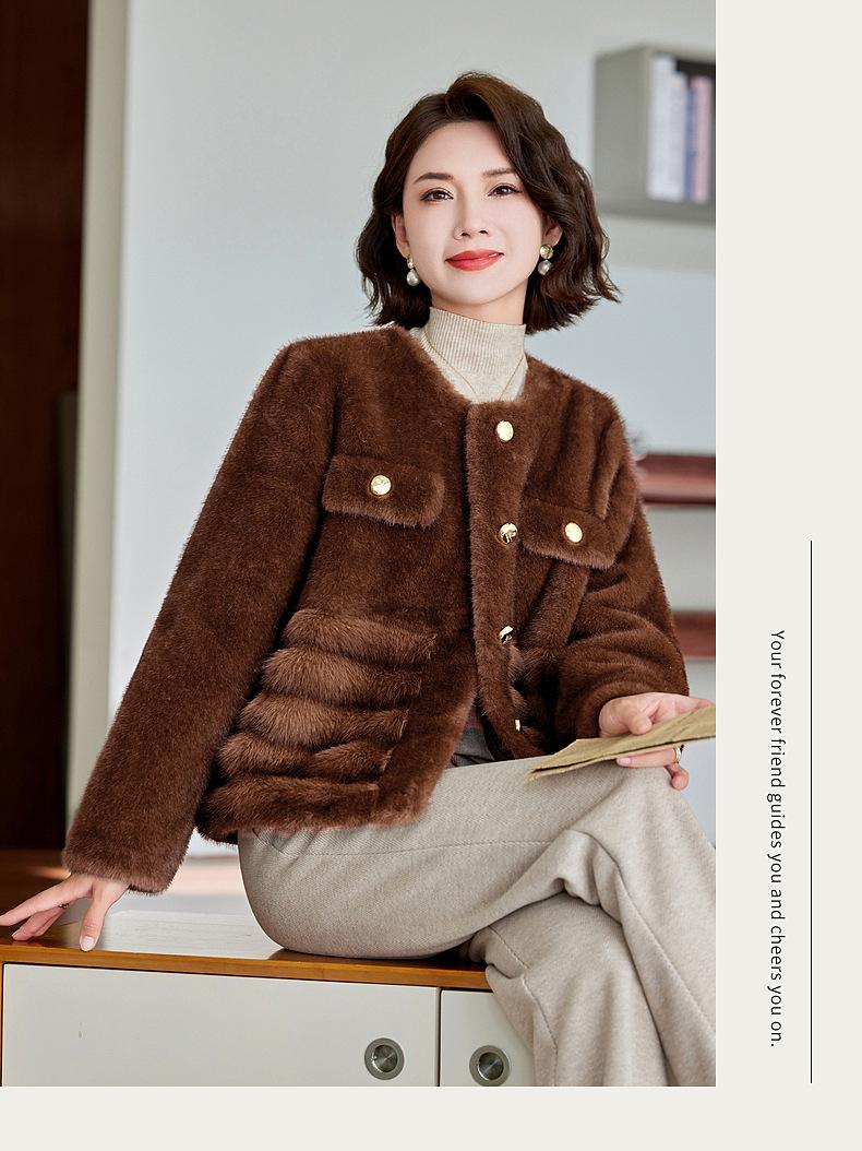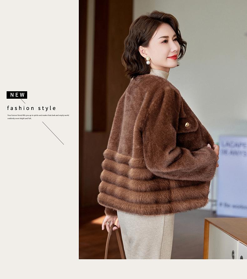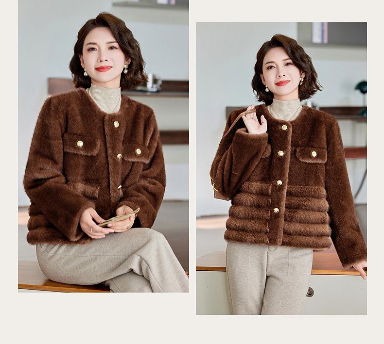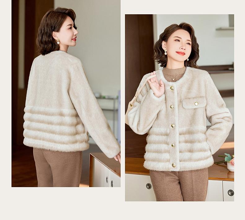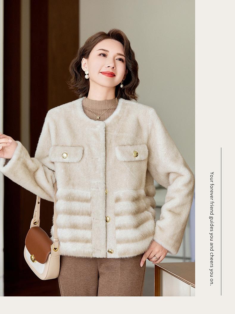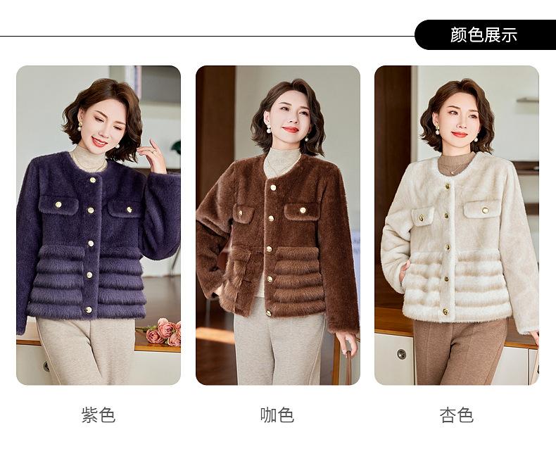 Abrigo de terciopelo de visón corto para mujer de mediana edad y anciana, abrigo de piel de cuello redondo para madre de 45 años, abrigo grueso al por mayor