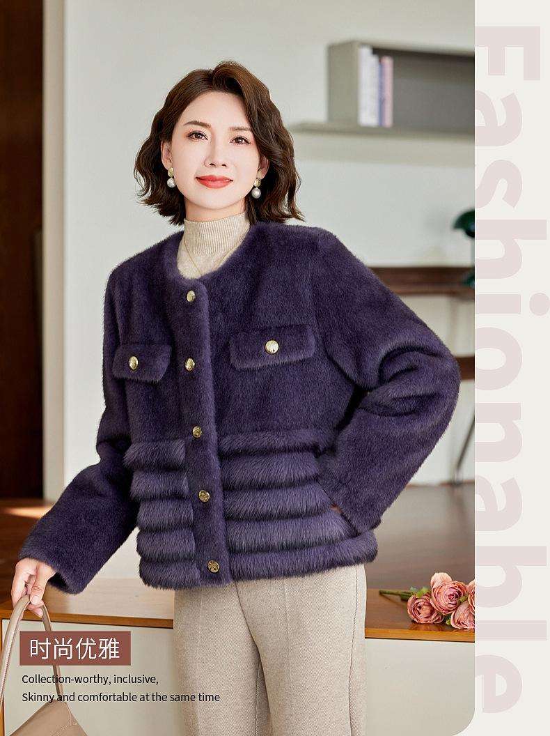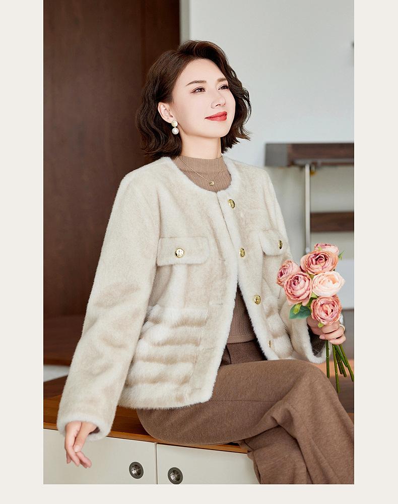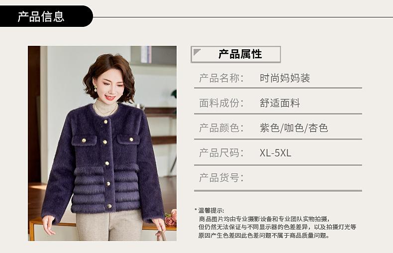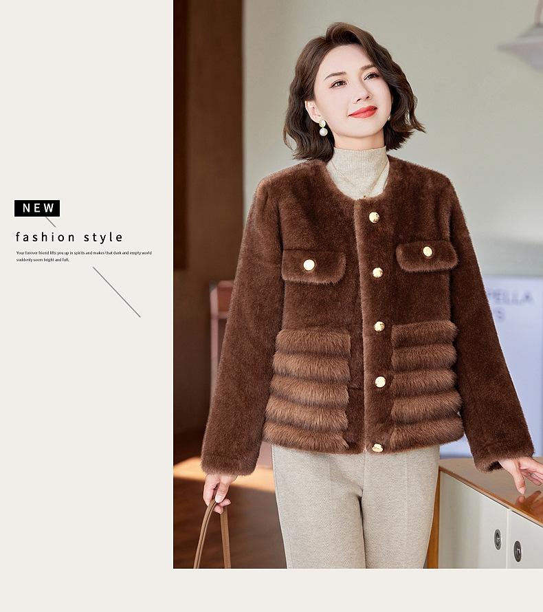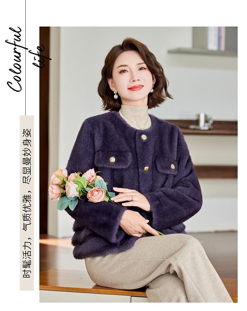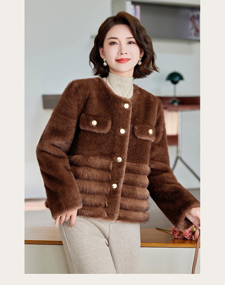 Abrigo de terciopelo de visón corto para mujer de mediana edad y anciana, abrigo de piel de cuello redondo para madre de 45 años, abrigo grueso al por mayor