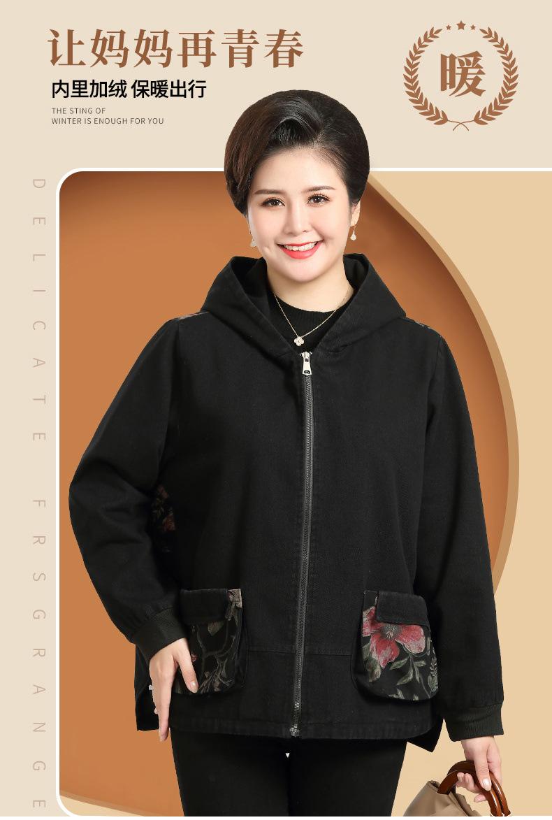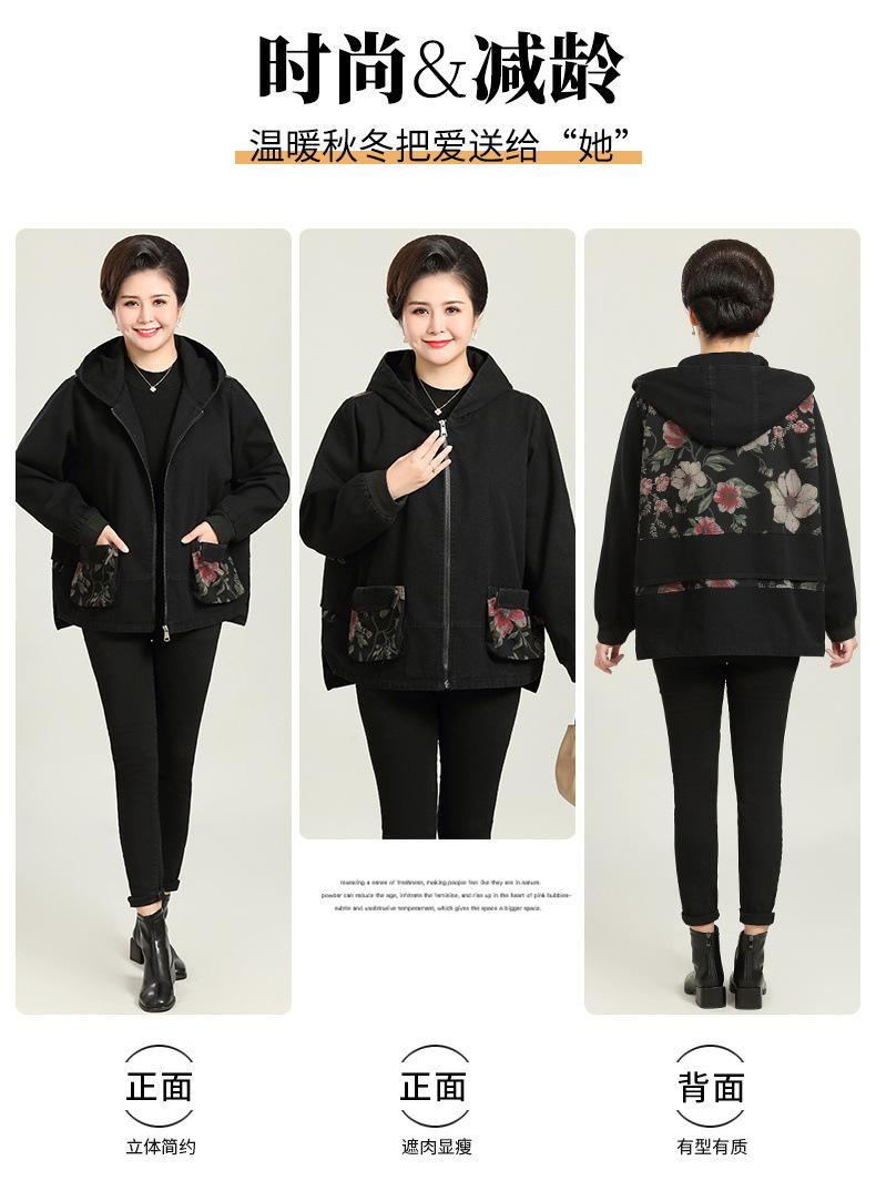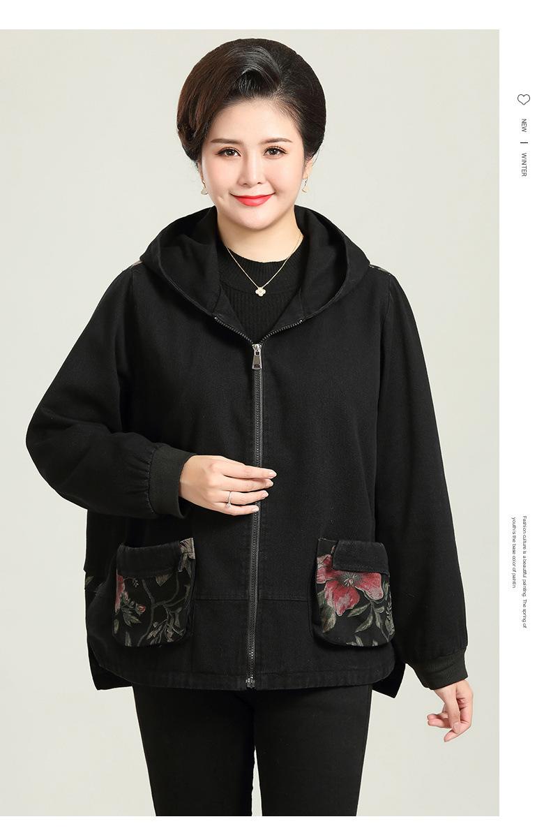 Abrigo de Otoño e Invierno para Madre de Mediana Edad con Forro Polar Chaqueta Casual Combinable Top Combinable Moda con Capucha Talla Extra
