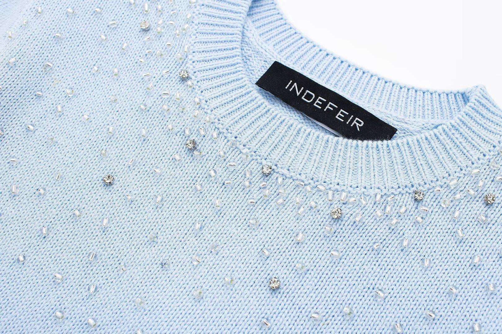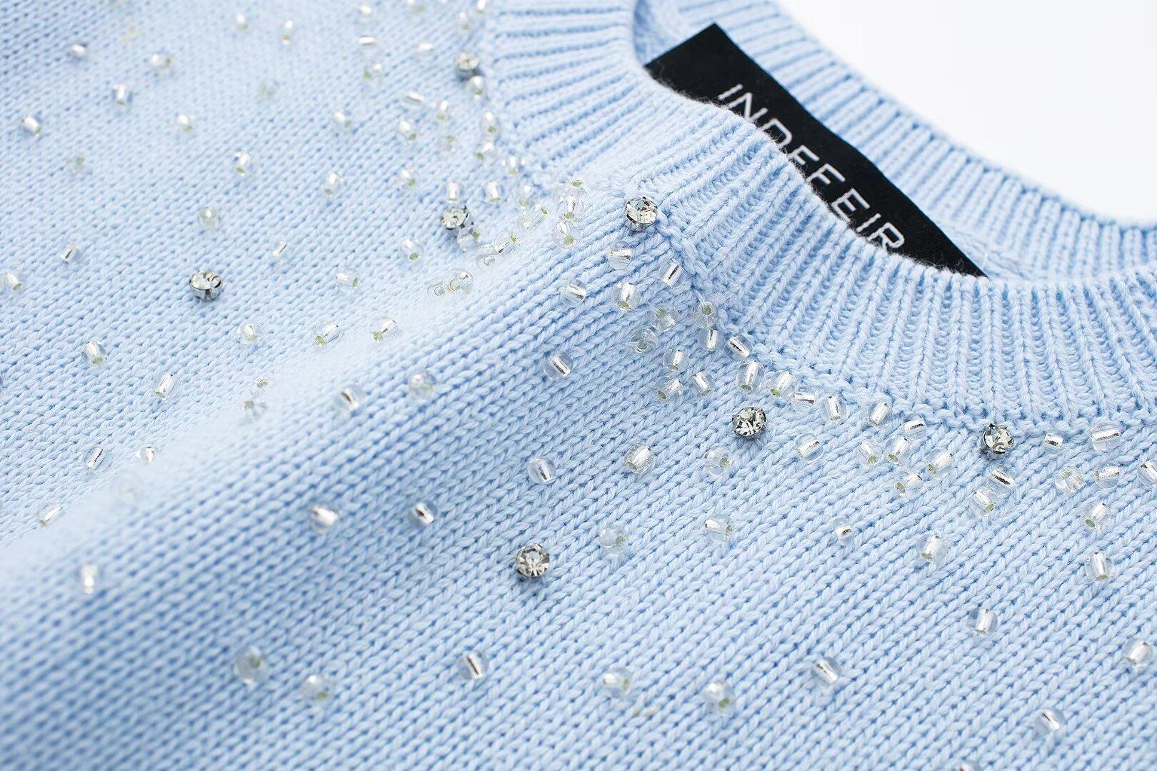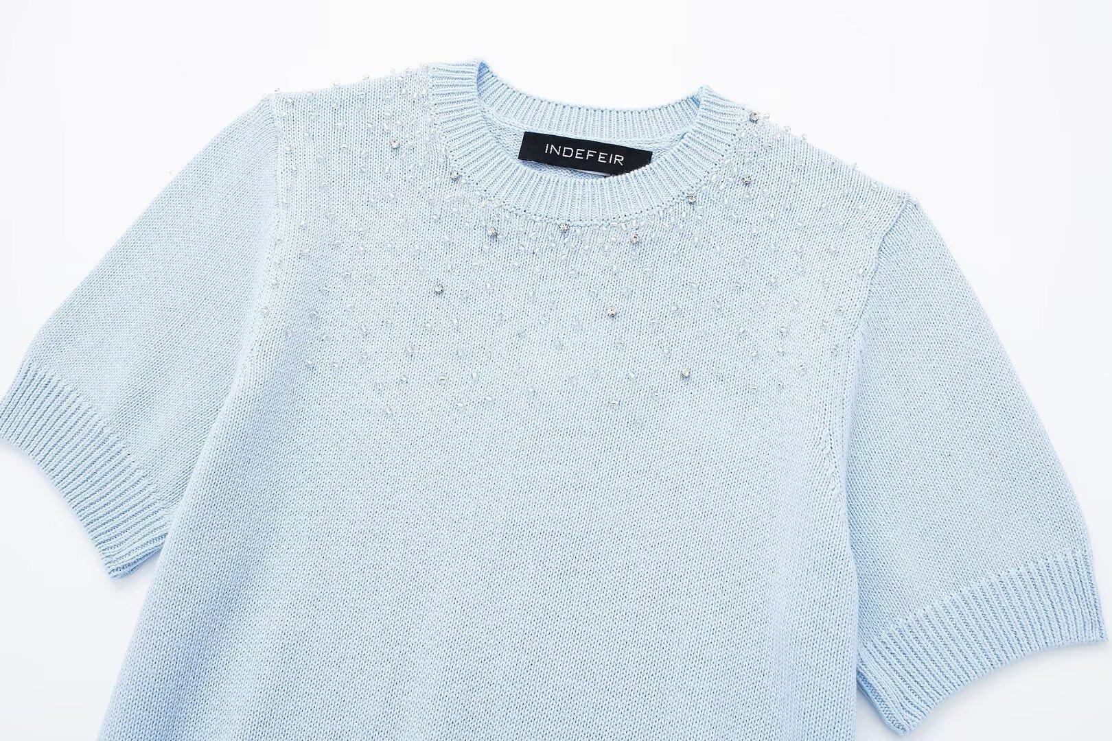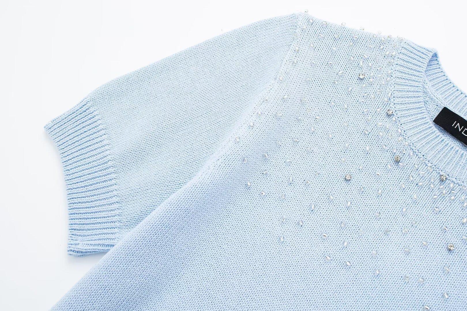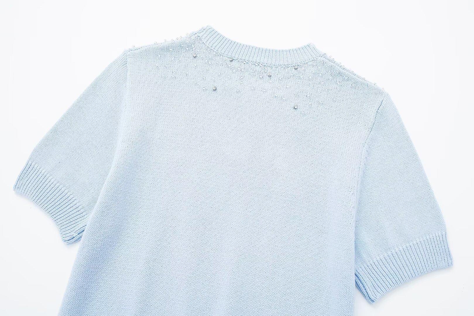 Amazon comercio exterior transfronterizo ropa de mujer europea y americana 2024 verano nuevo estilo europeo y americano suéter con cuentas de joyería