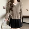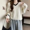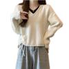 Suéter de Moda de Cuello en Contraste con Cuello en V para Mujer, Suéter Tejido con Cordón en el Bajo, Otoño Nuevo Estilo Perezoso, Abrigo Combinable de Moda