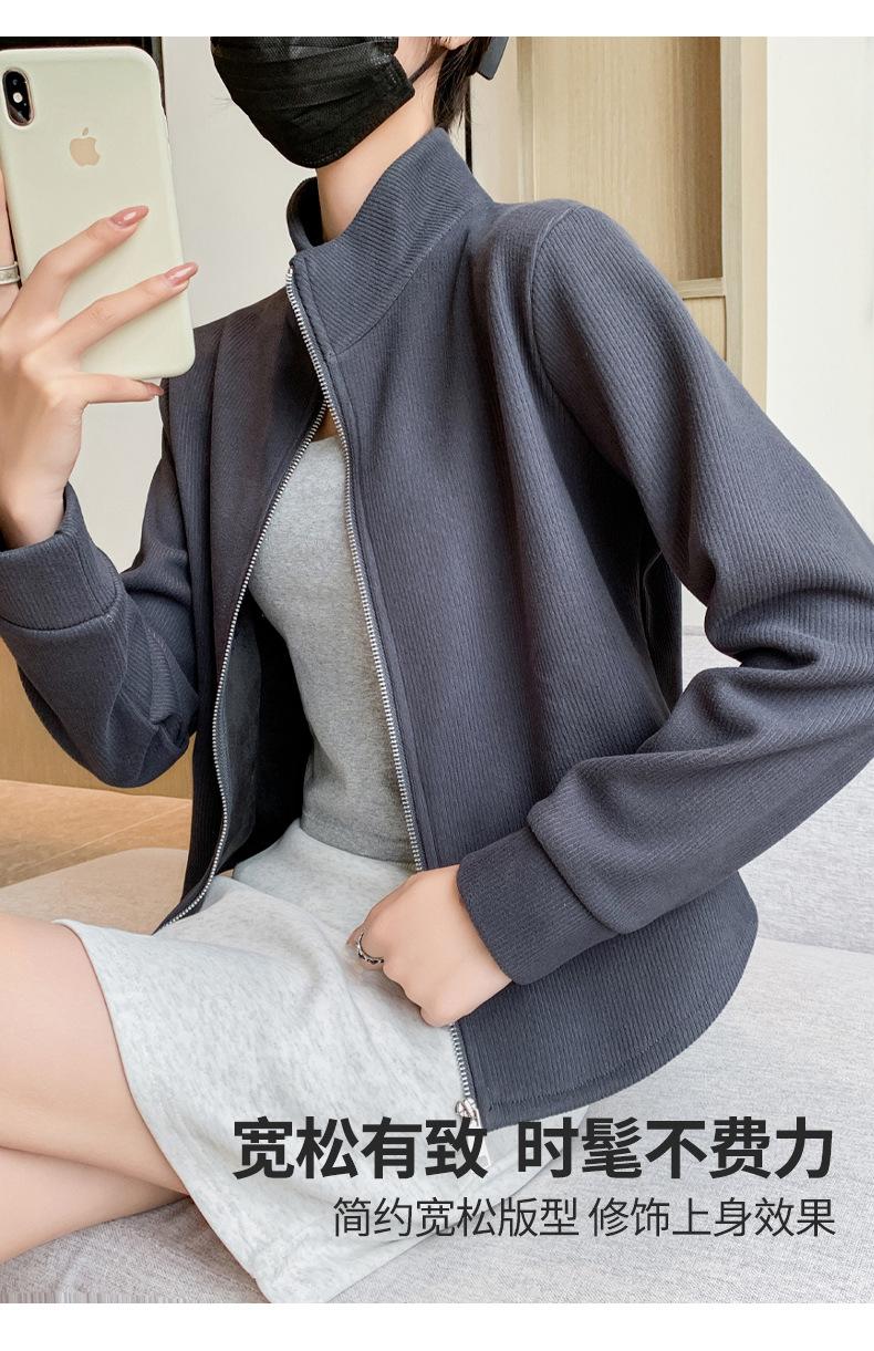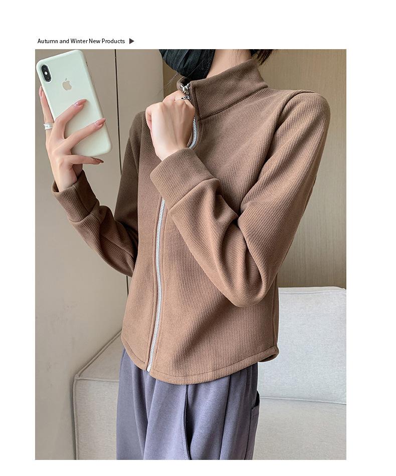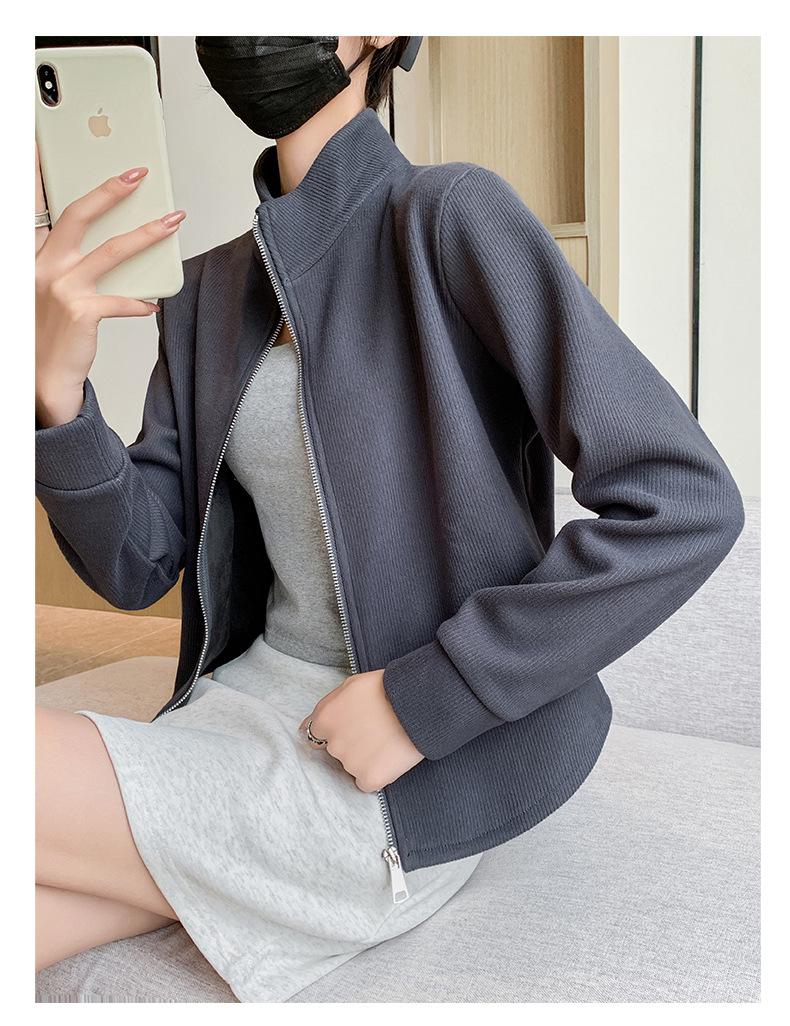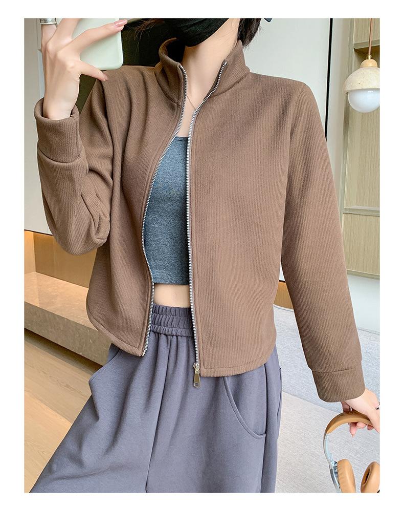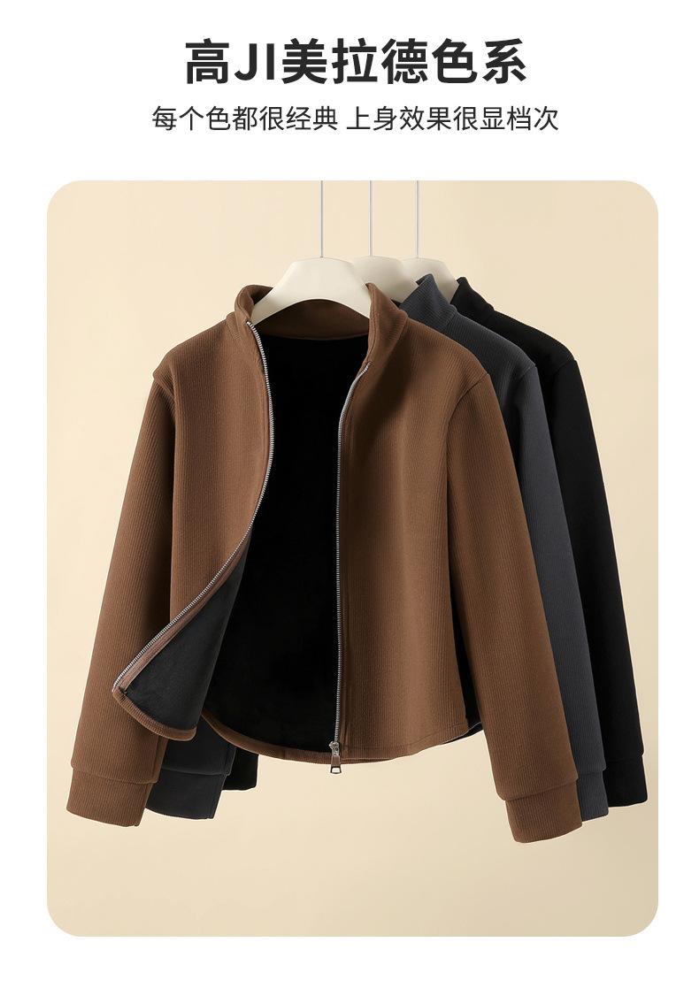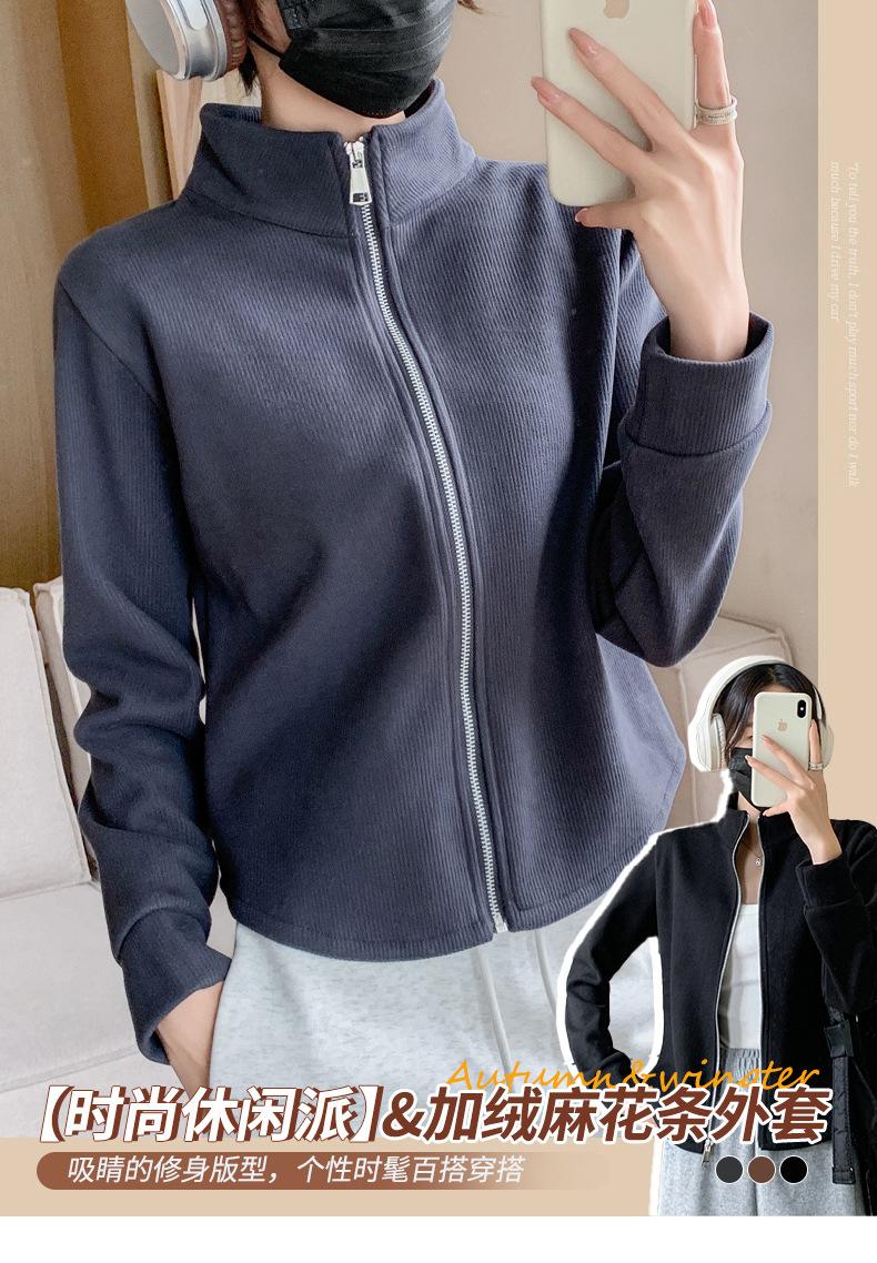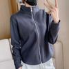 H566 Abrigo de Cuello Roscado para Mujer Otoño e Invierno con Forro Polar Cálido Cárdigan con Cremallera Ajustado Manga Larga Ropa Exterior Top Cortavientos