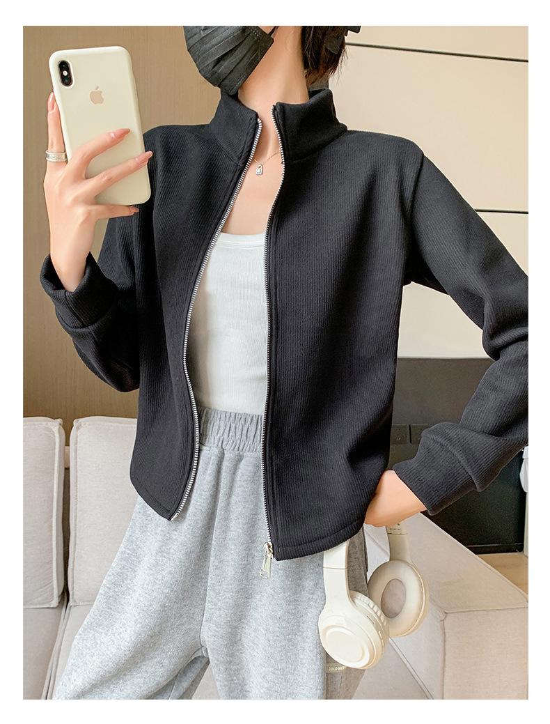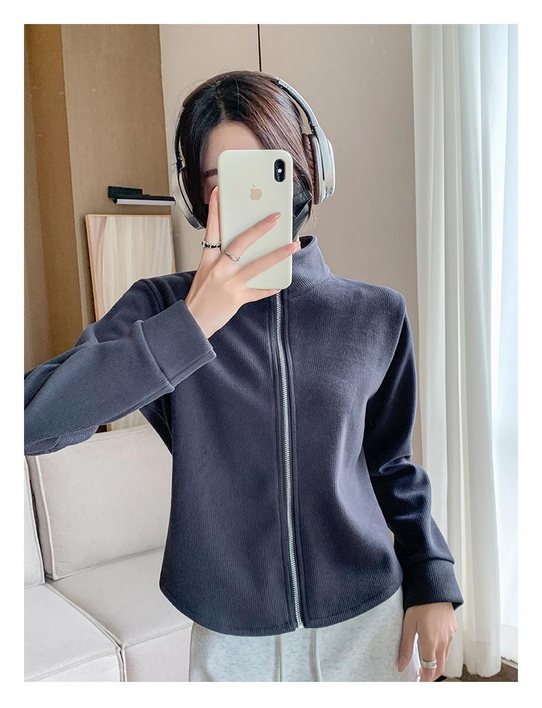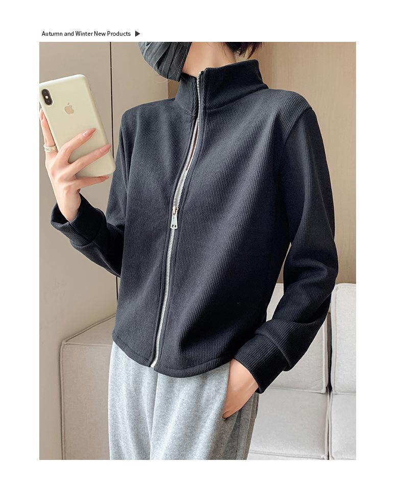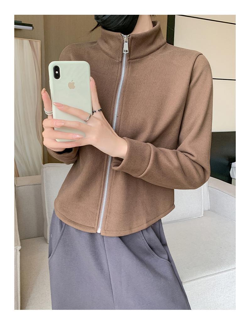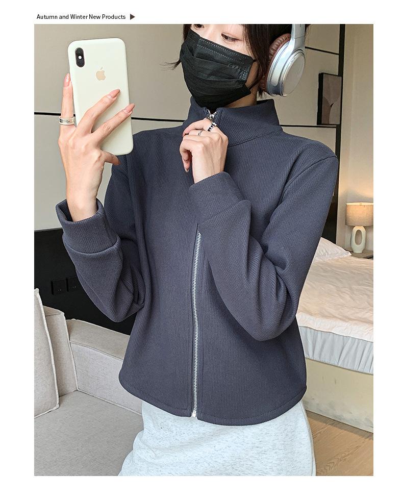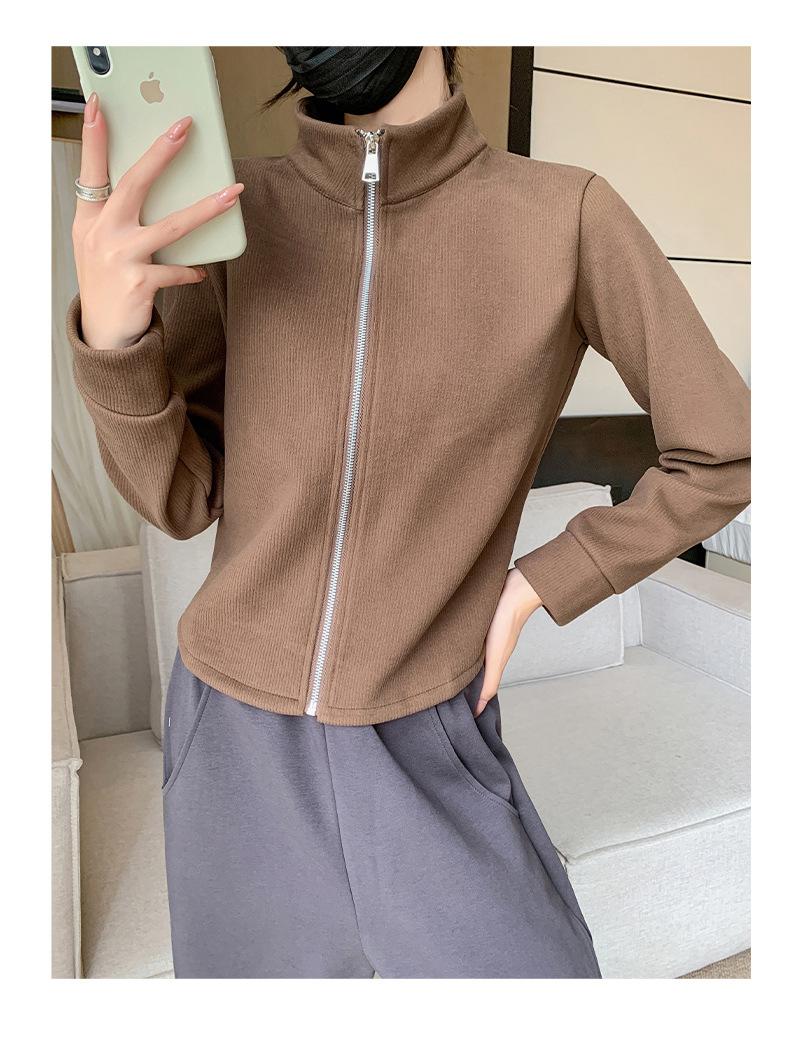 H566 Abrigo de Cuello Roscado para Mujer Otoño e Invierno con Forro Polar Cálido Cárdigan con Cremallera Ajustado Manga Larga Ropa Exterior Top Cortavientos