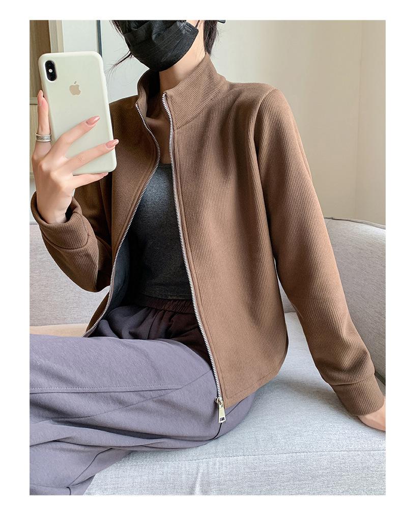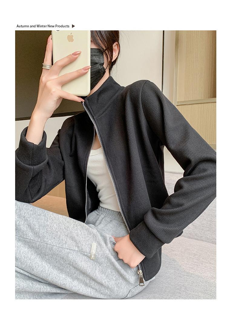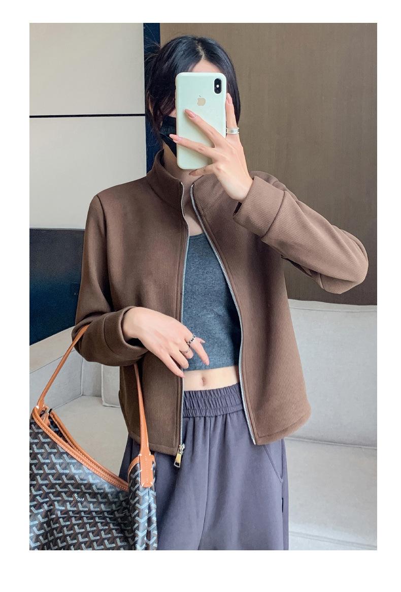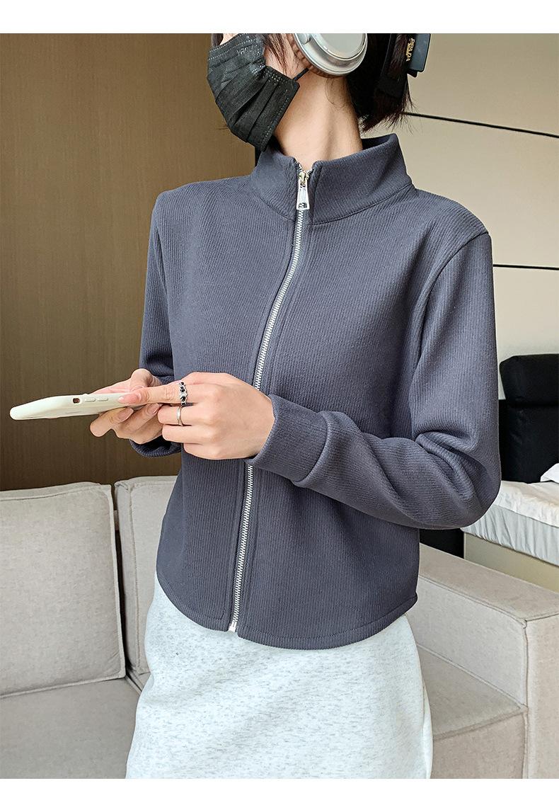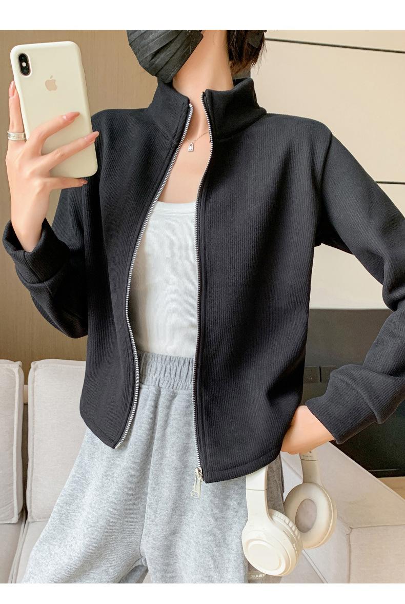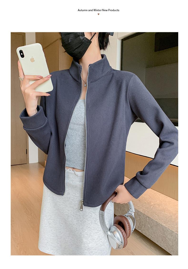 H566 Abrigo de Cuello Roscado para Mujer Otoño e Invierno con Forro Polar Cálido Cárdigan con Cremallera Ajustado Manga Larga Ropa Exterior Top Cortavientos