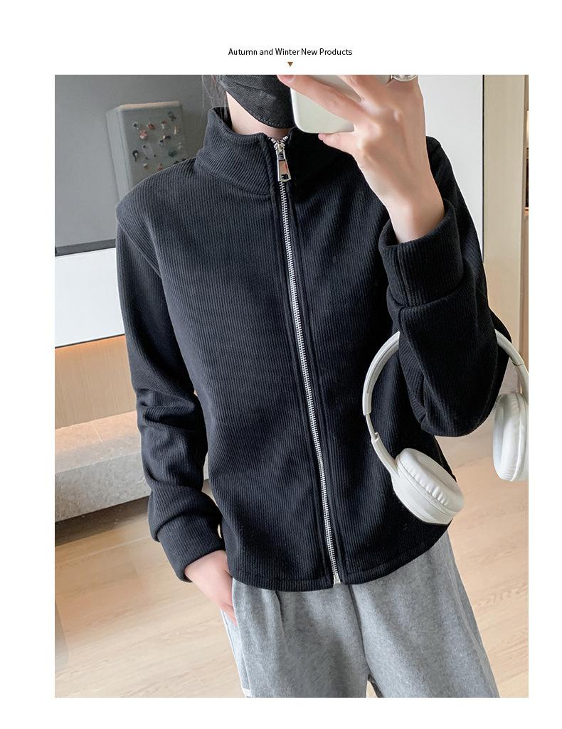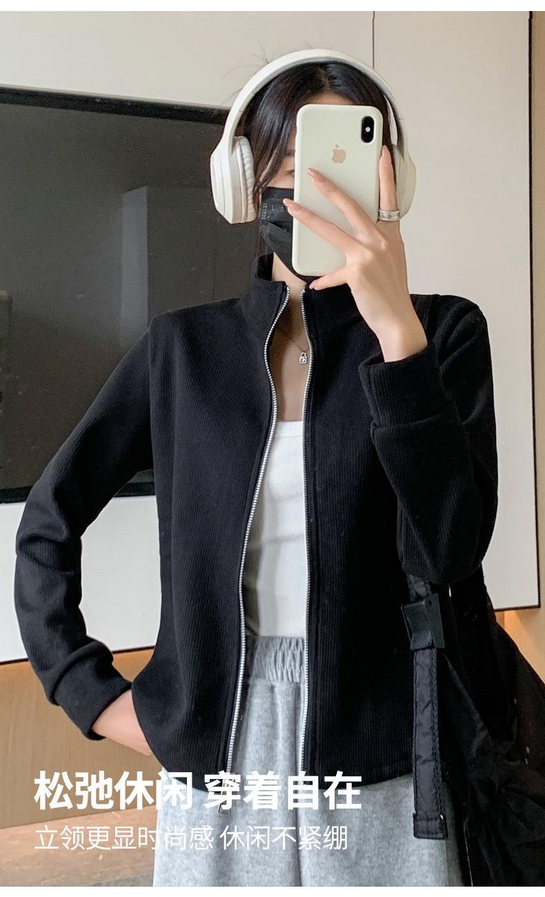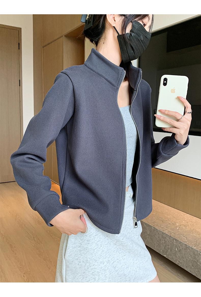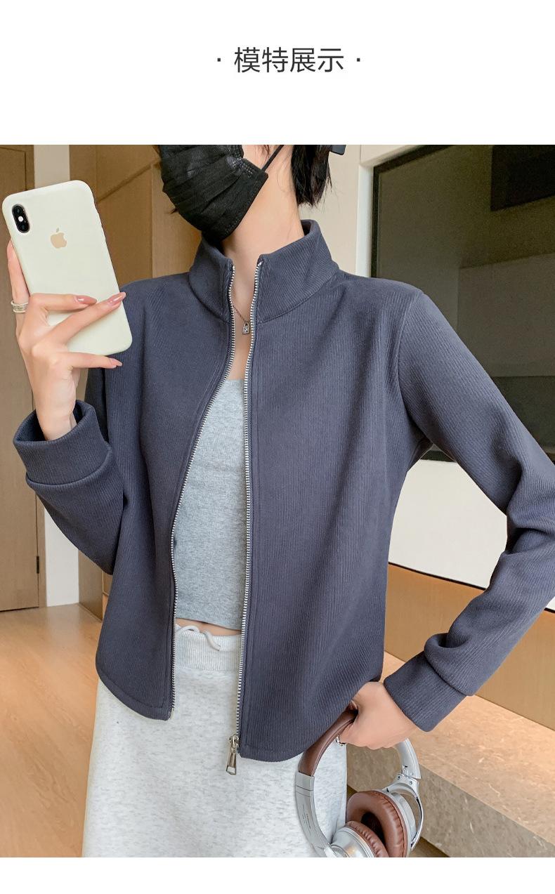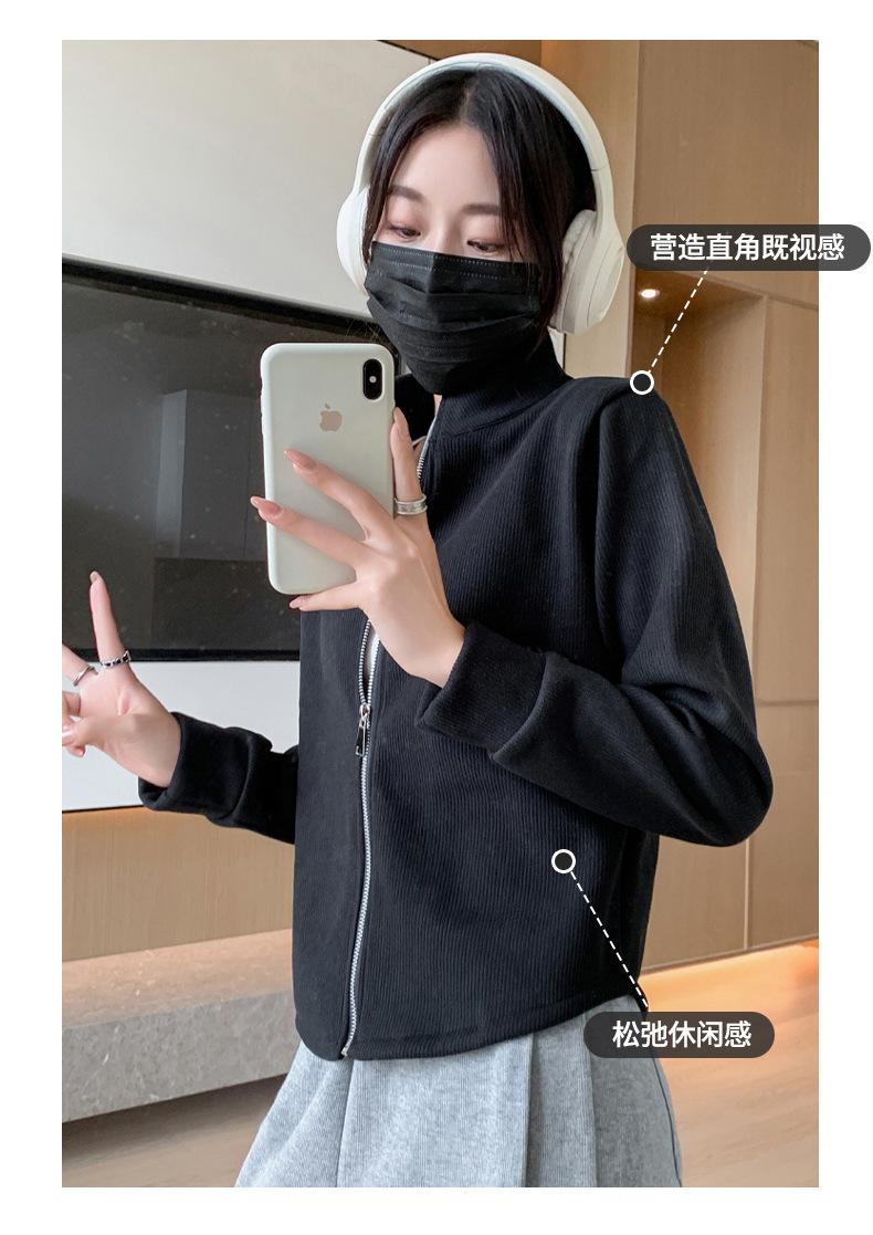 H566 Abrigo de Cuello Roscado para Mujer Otoño e Invierno con Forro Polar Cálido Cárdigan con Cremallera Ajustado Manga Larga Ropa Exterior Top Cortavientos