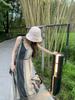 Vestido de verano de talla grande estilo francés retro, estampado y teñido, con tirantes sin espalda, holgado, que cubre la piel y adelgaza, falda larga con dobladillo ancho.