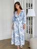 Vestido de Primavera Francés Retro Estampado con Cuello en V y Manga Linterna para Mujer Transfronterizo Elegante Cintura Algodón Puro Falda Larga con Sensación de Alta Gama