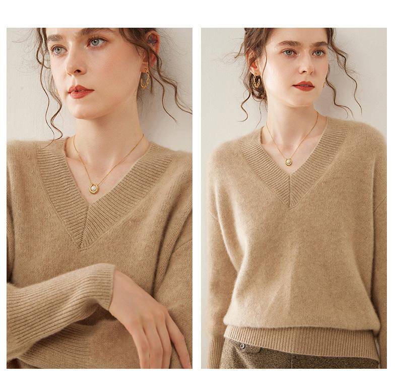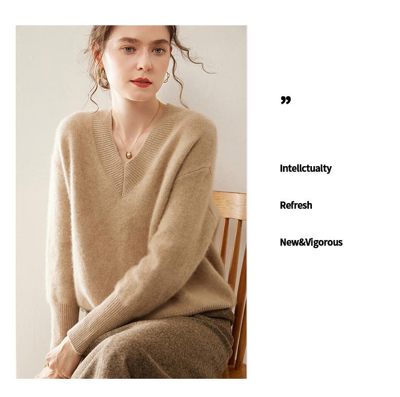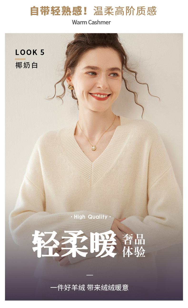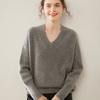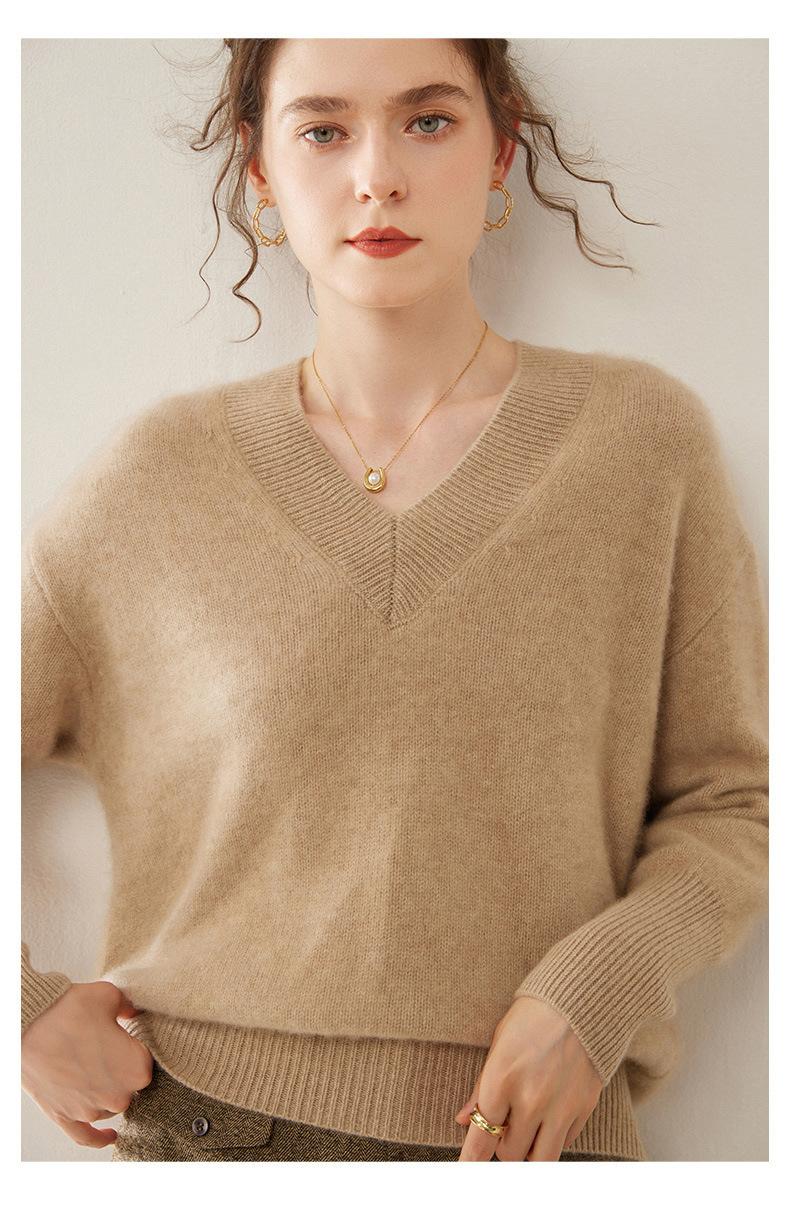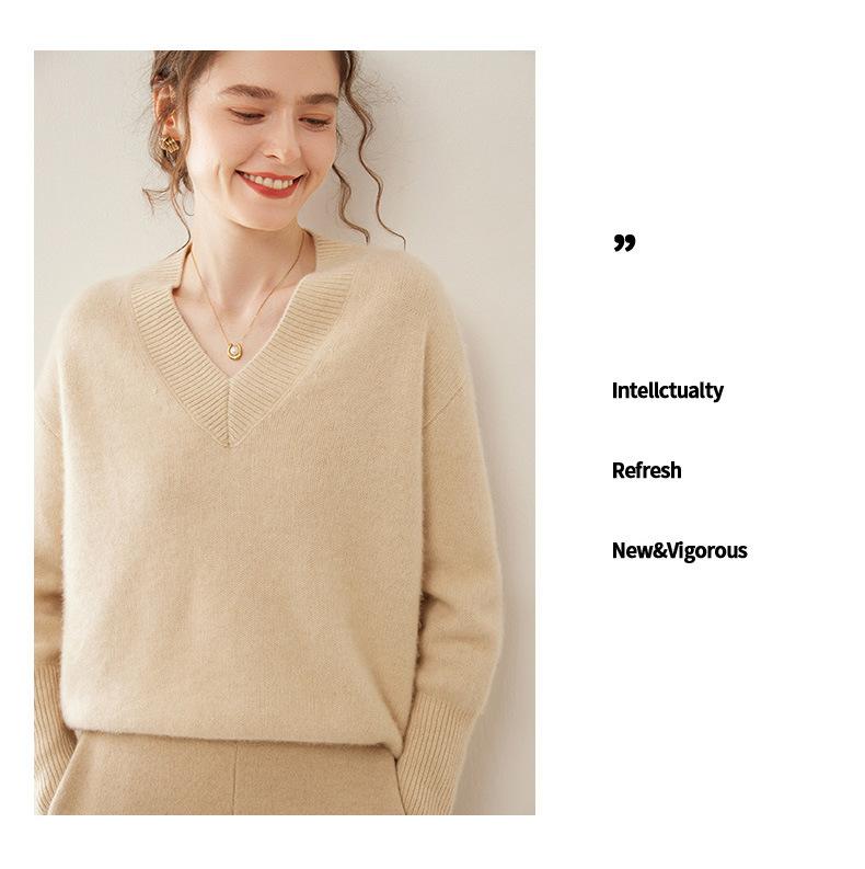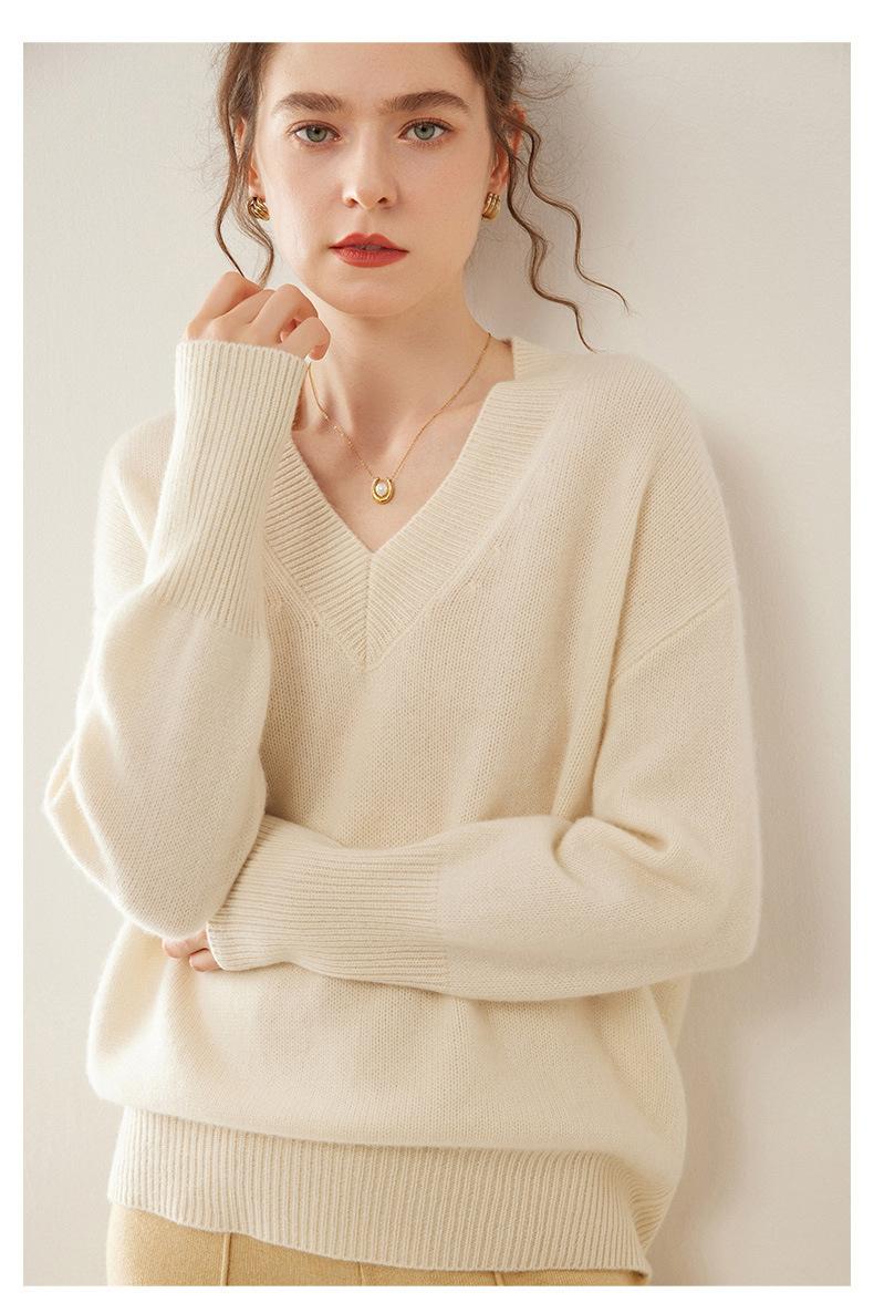 Suéter de cachemira con cuello en V para mujer, jersey holgado y adelgazante con hombros descubiertos, camisa de punto interior de moda para otoño e invierno.