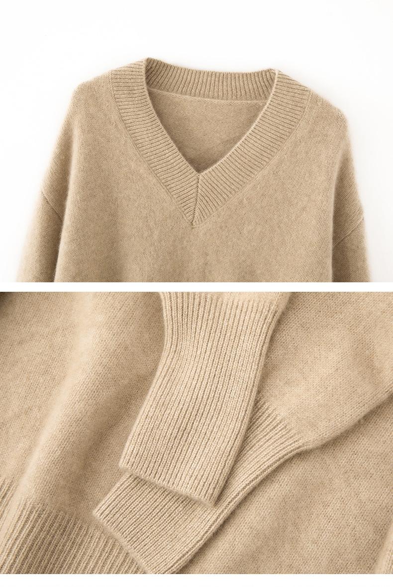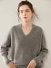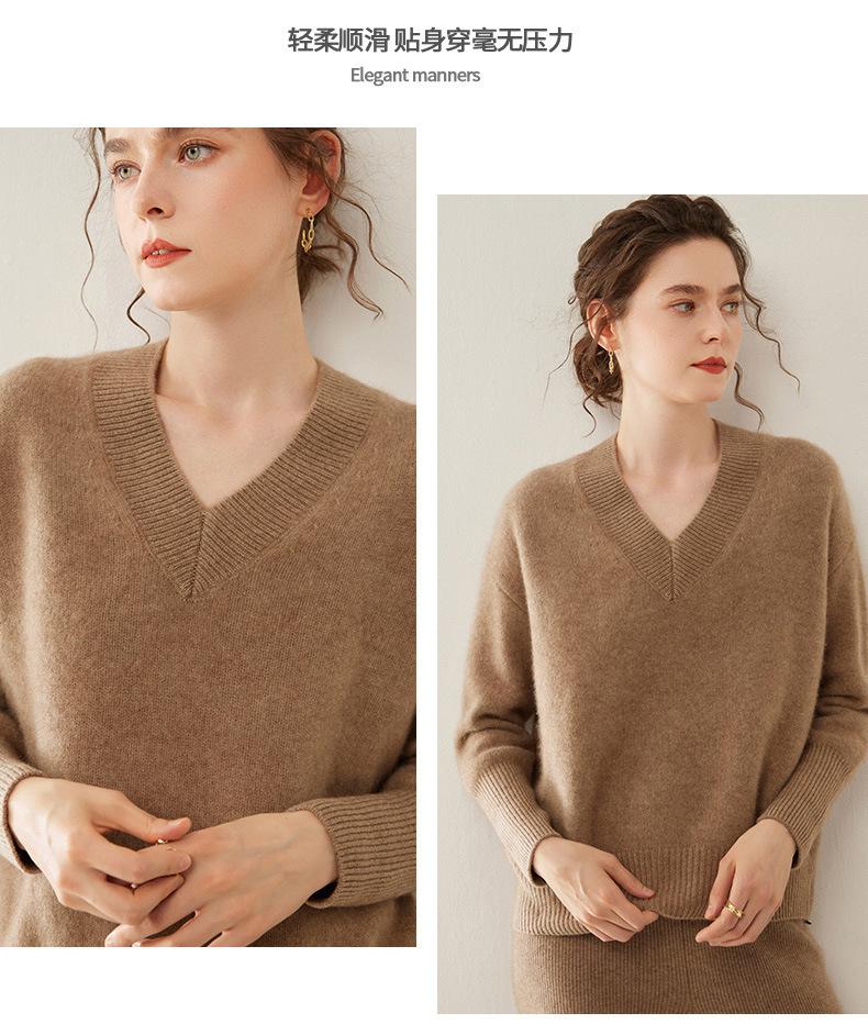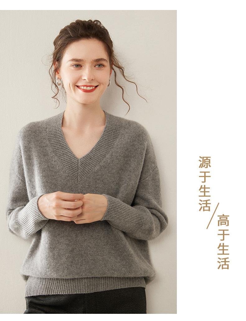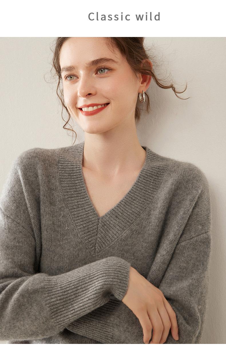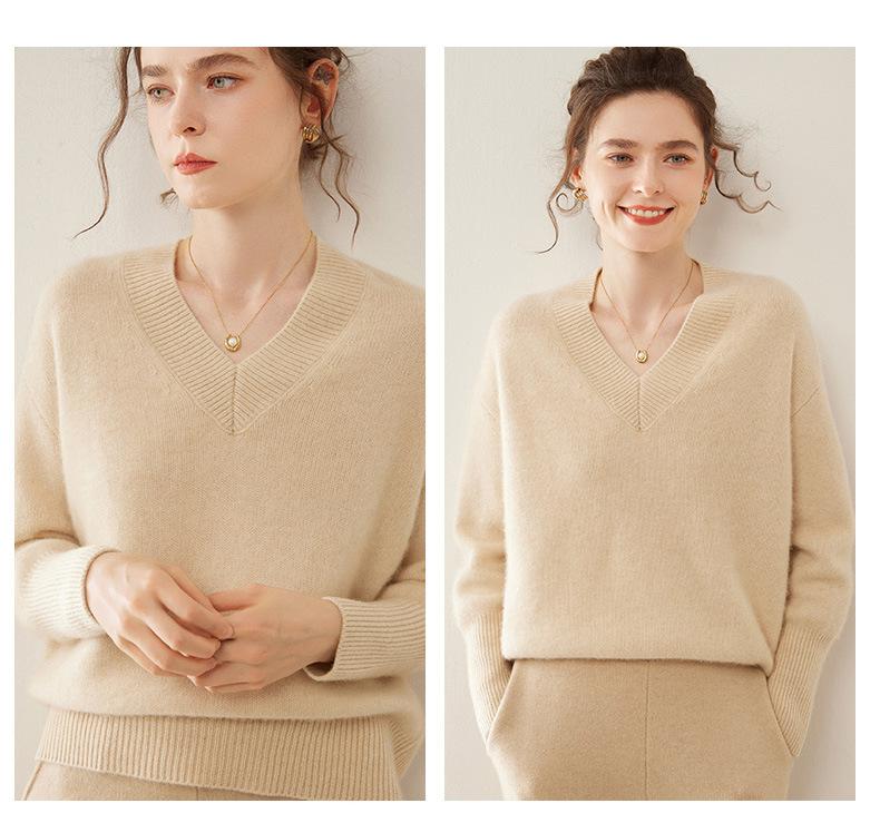 Suéter de cachemira con cuello en V para mujer, jersey holgado y adelgazante con hombros descubiertos, camisa de punto interior de moda para otoño e invierno.