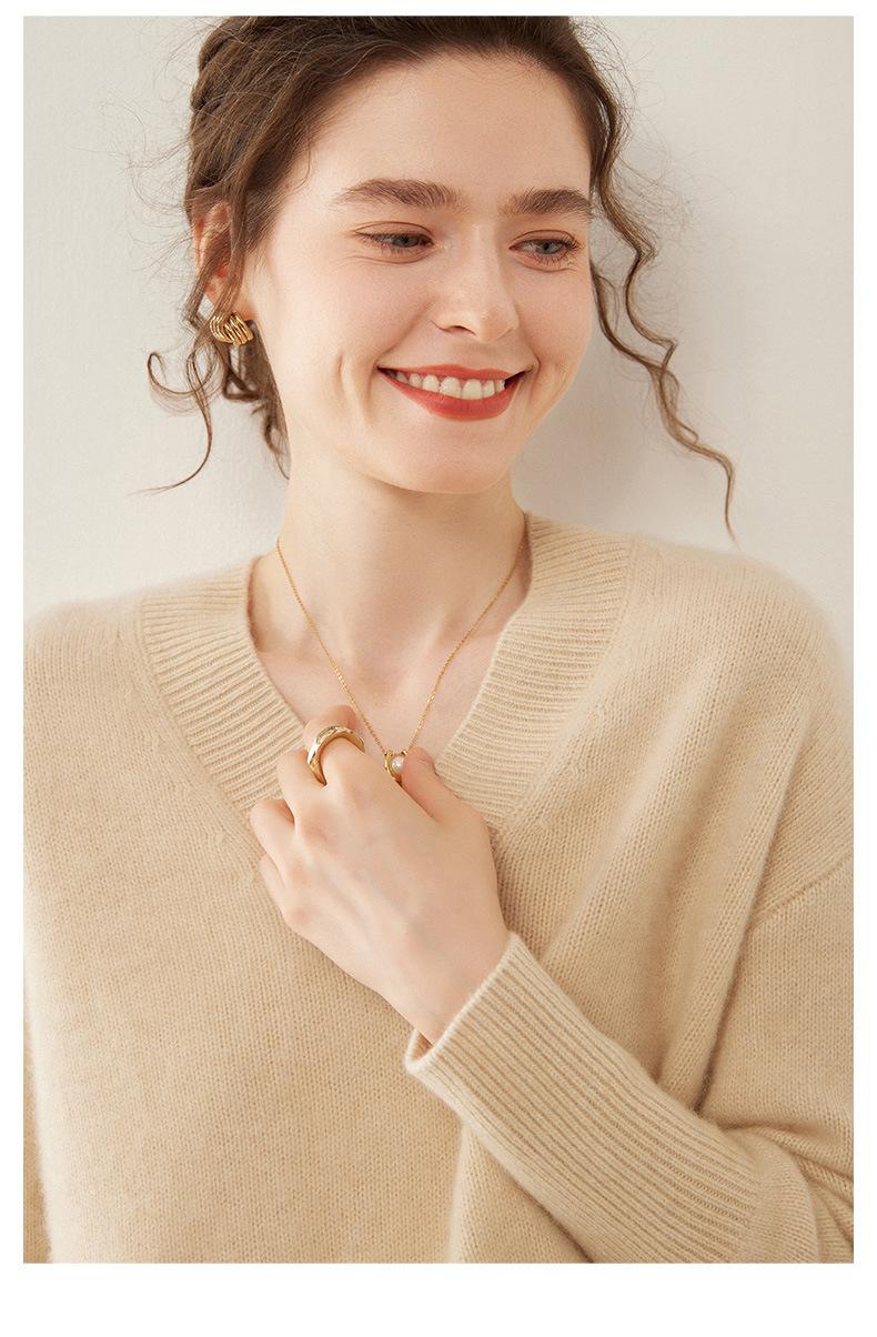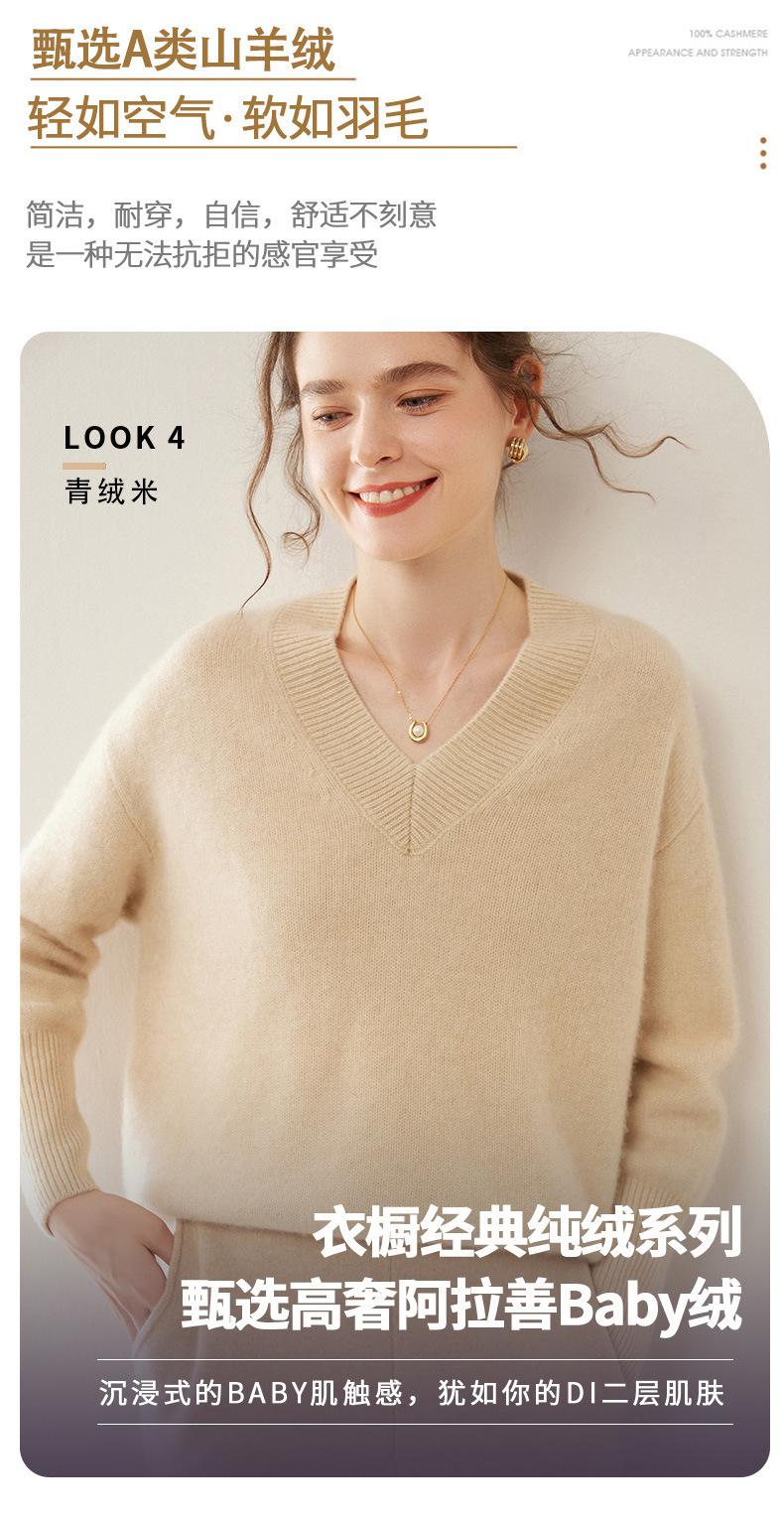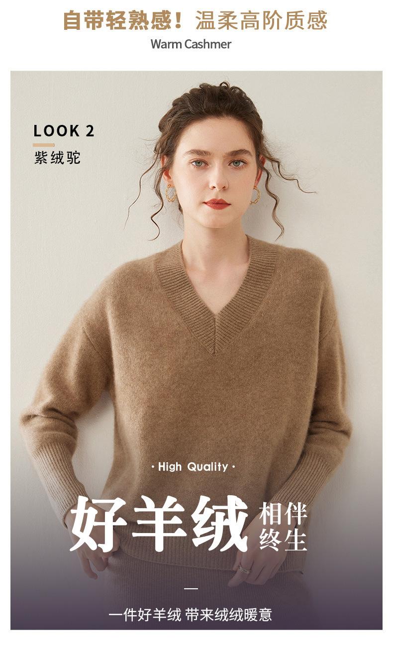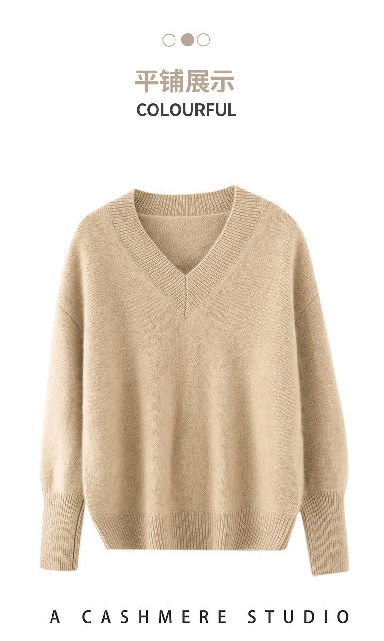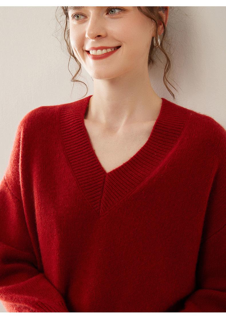 Suéter de cachemira con cuello en V para mujer, jersey holgado y adelgazante con hombros descubiertos, camisa de punto interior de moda para otoño e invierno.