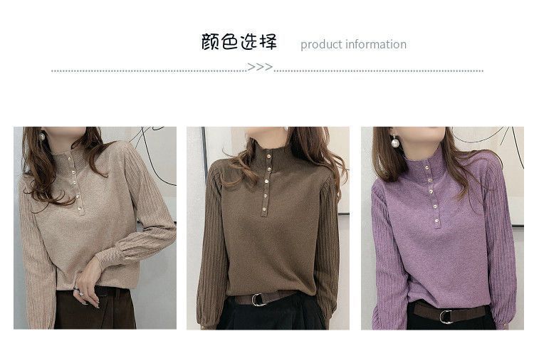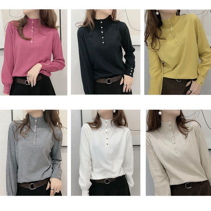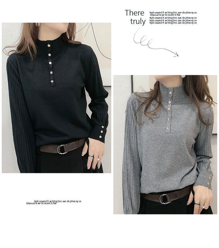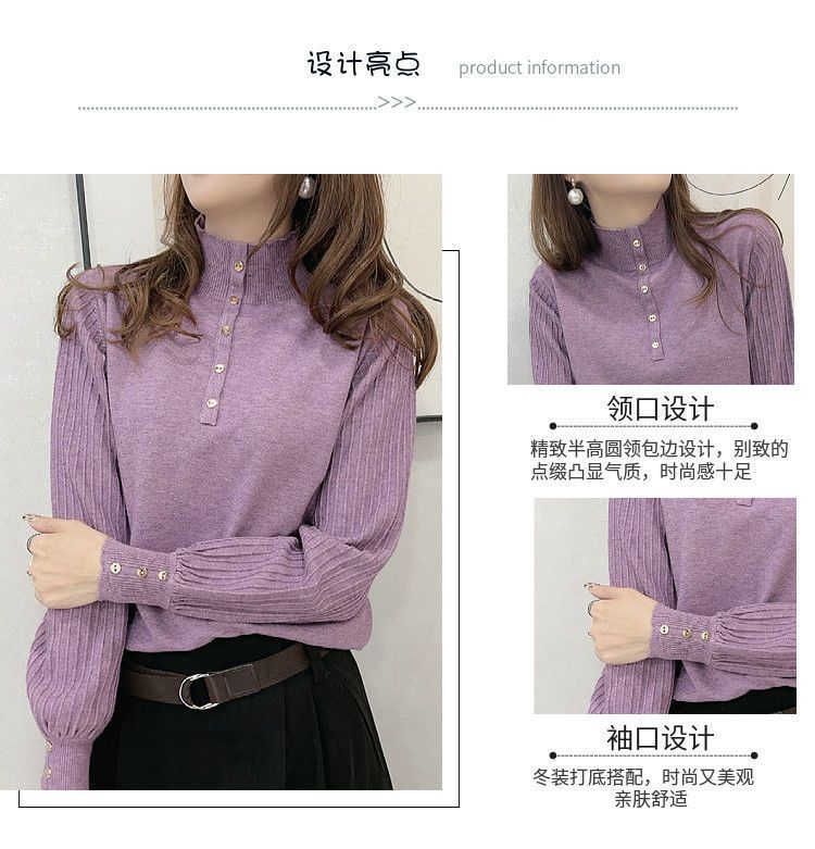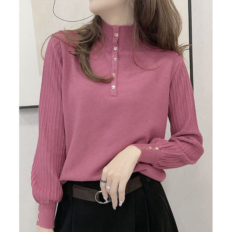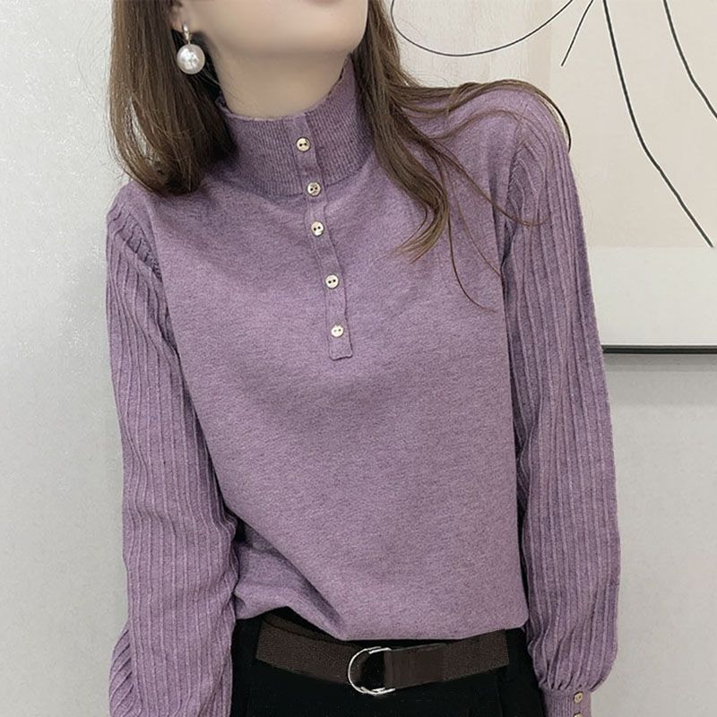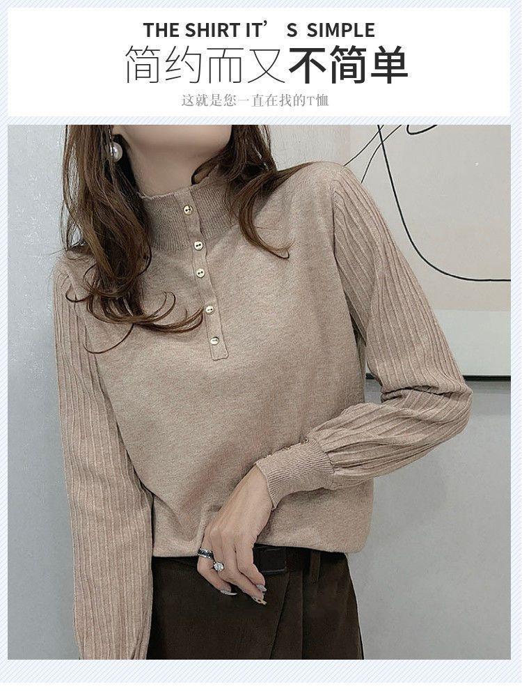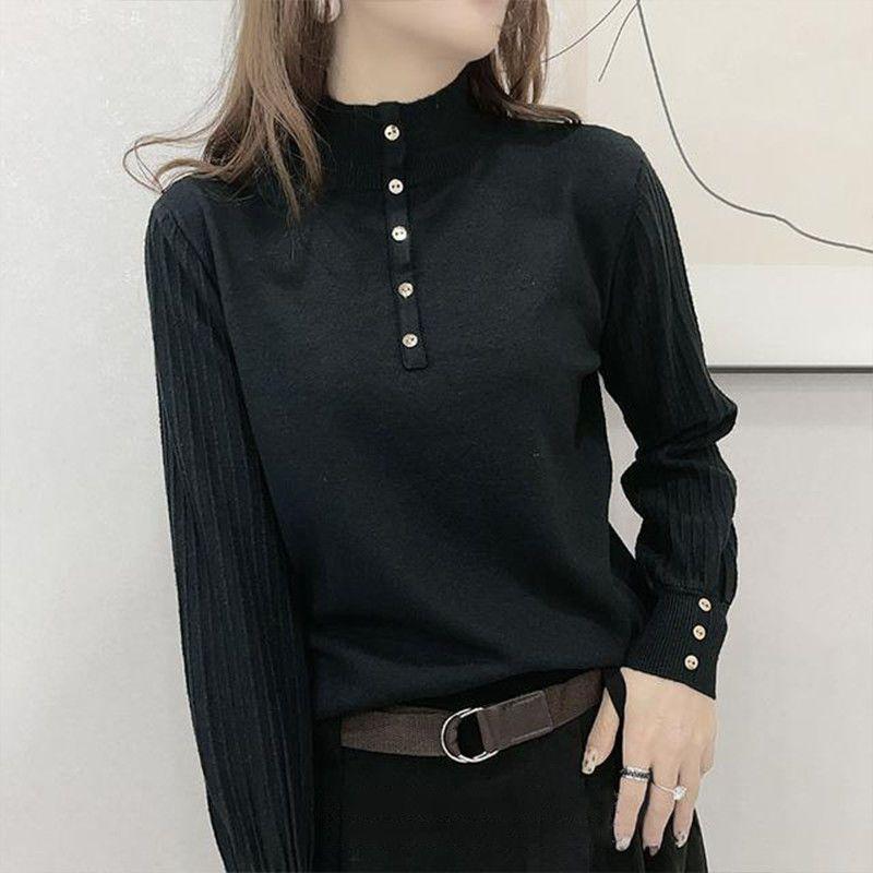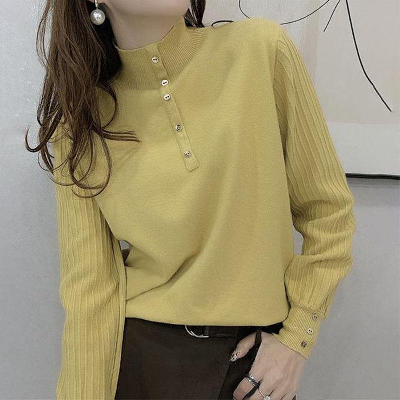 Suéter de punto de cuello alto medio para mujer, suéter interior holgado, estilo occidental, manga larga, otoño e invierno