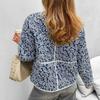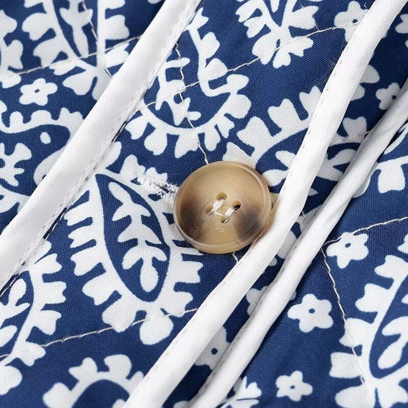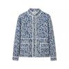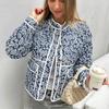 Ropa transfronteriza europea y americana Otoño e Invierno 2024 Nueva moda retro Estampado Versátil Cuello alto Manga larga Ropa delgada de algodón