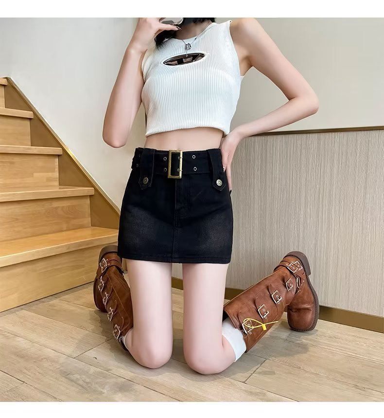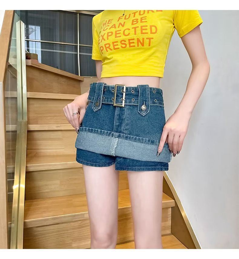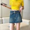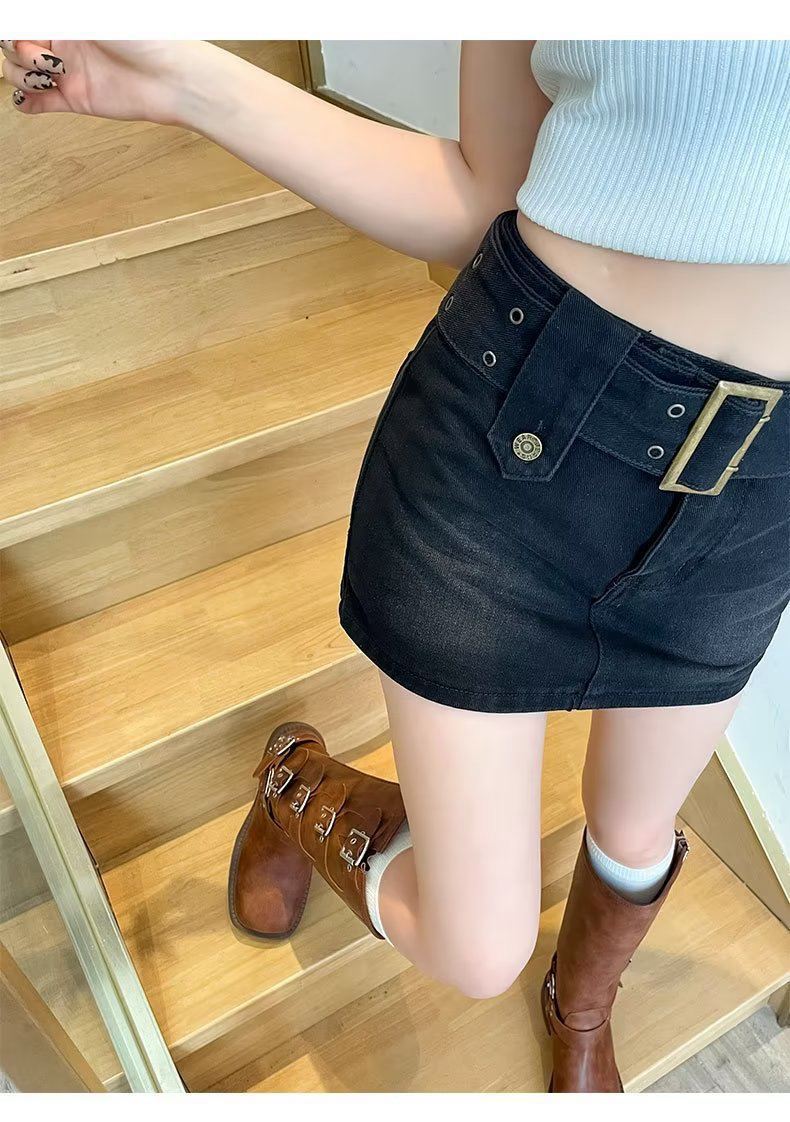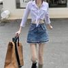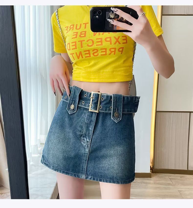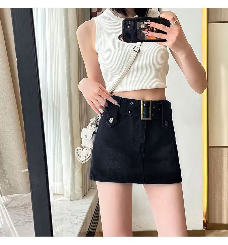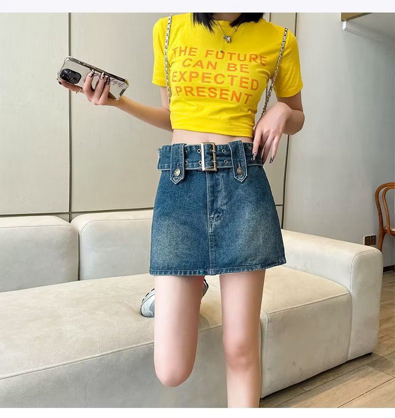 Falda vaquera vintage para mujer, primavera y verano, estilo americano, cintura alta, línea A, antiluz, cadera