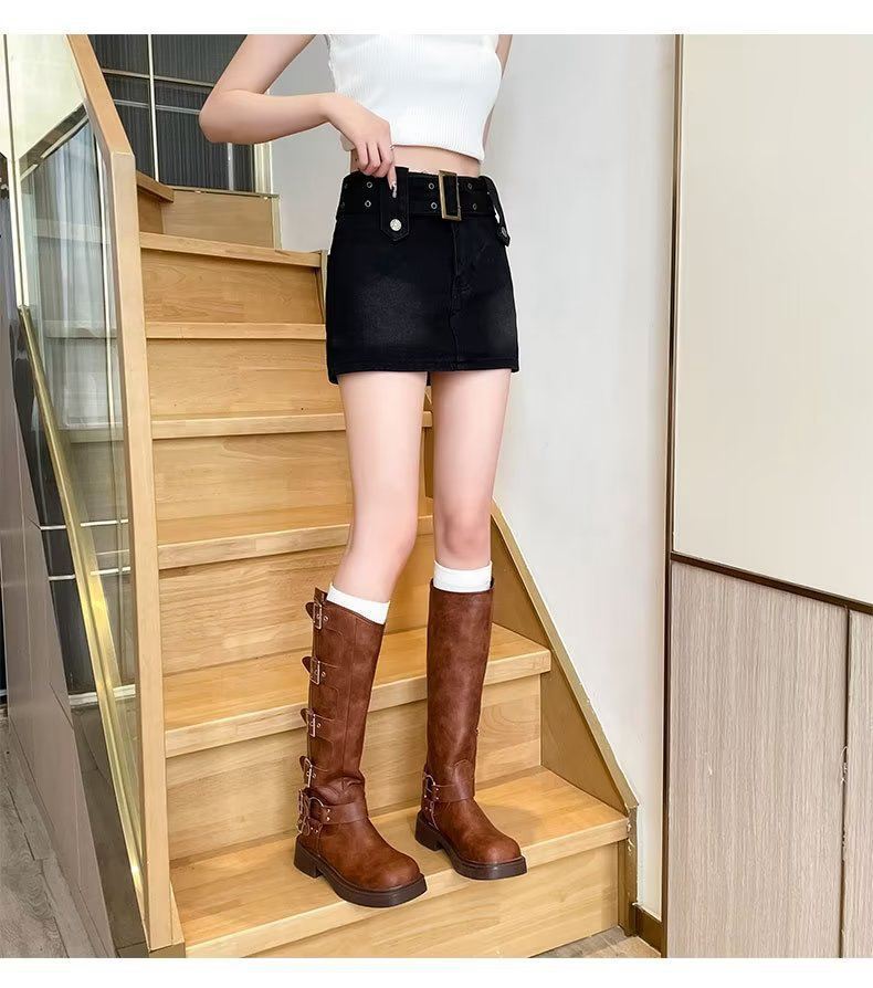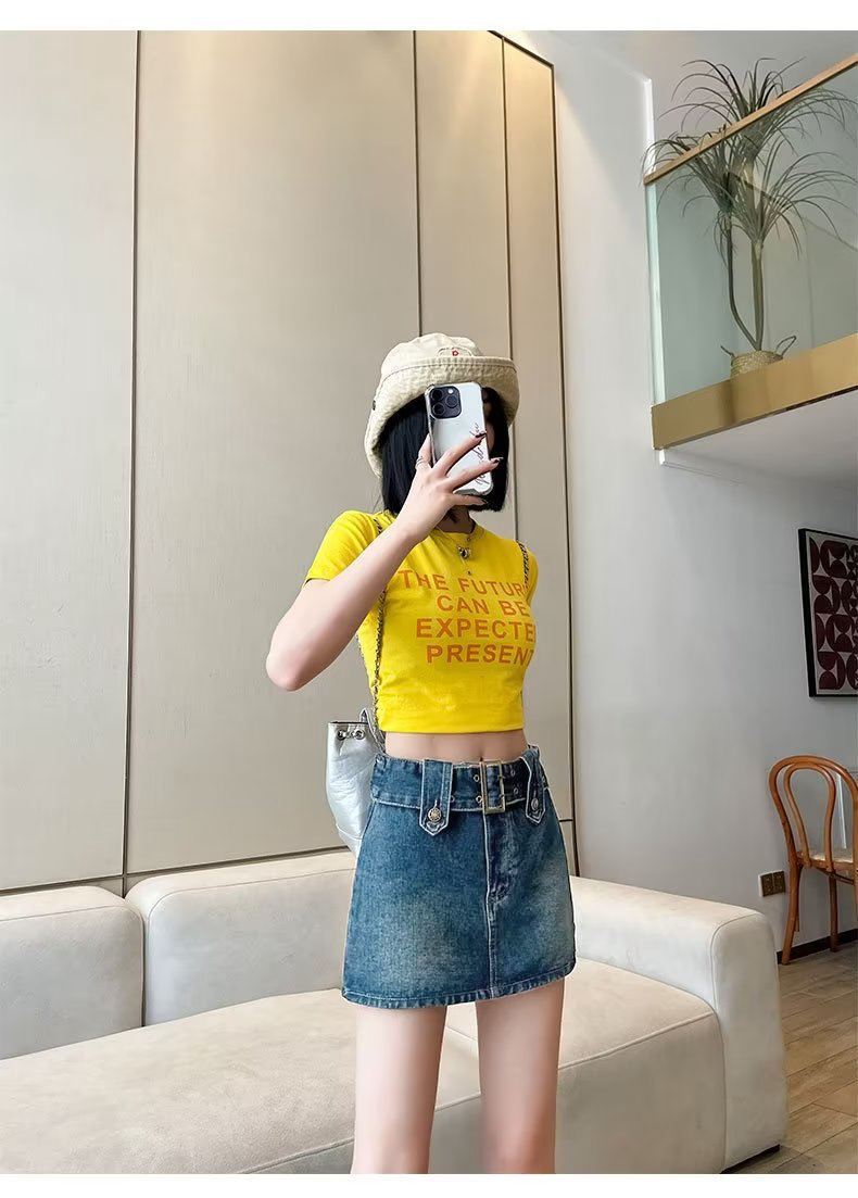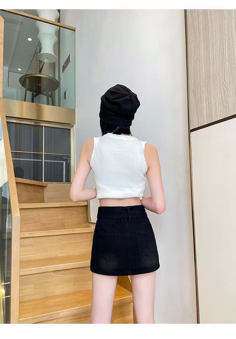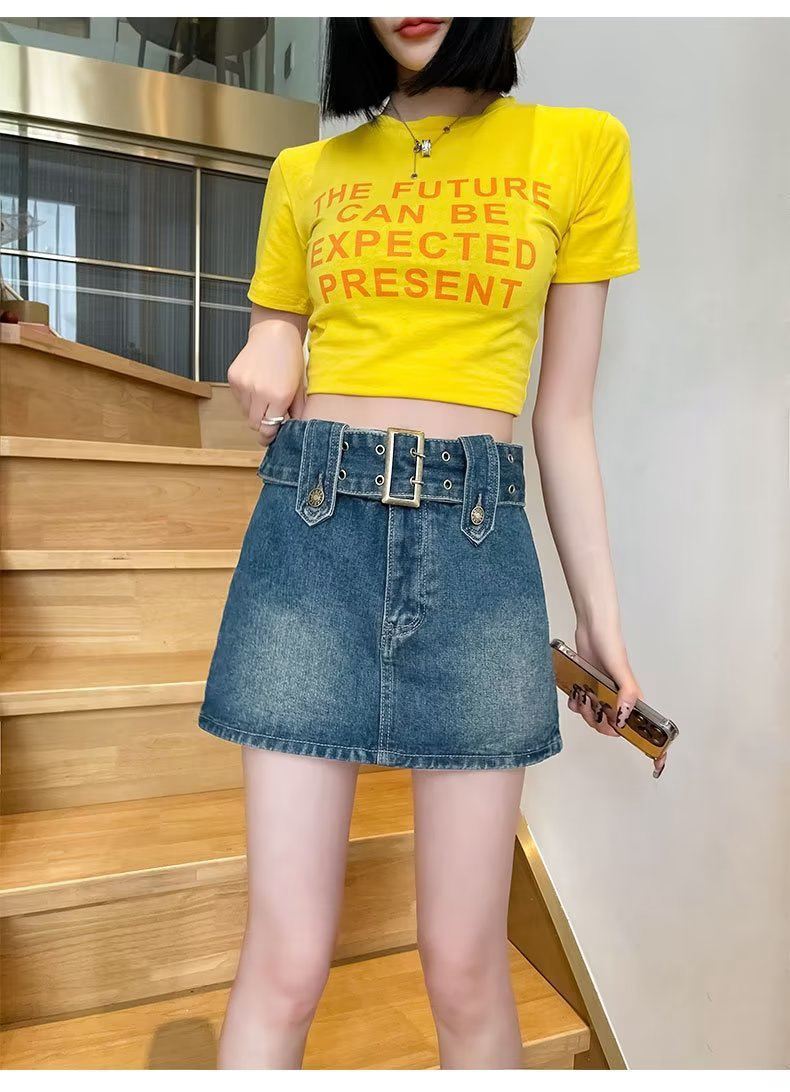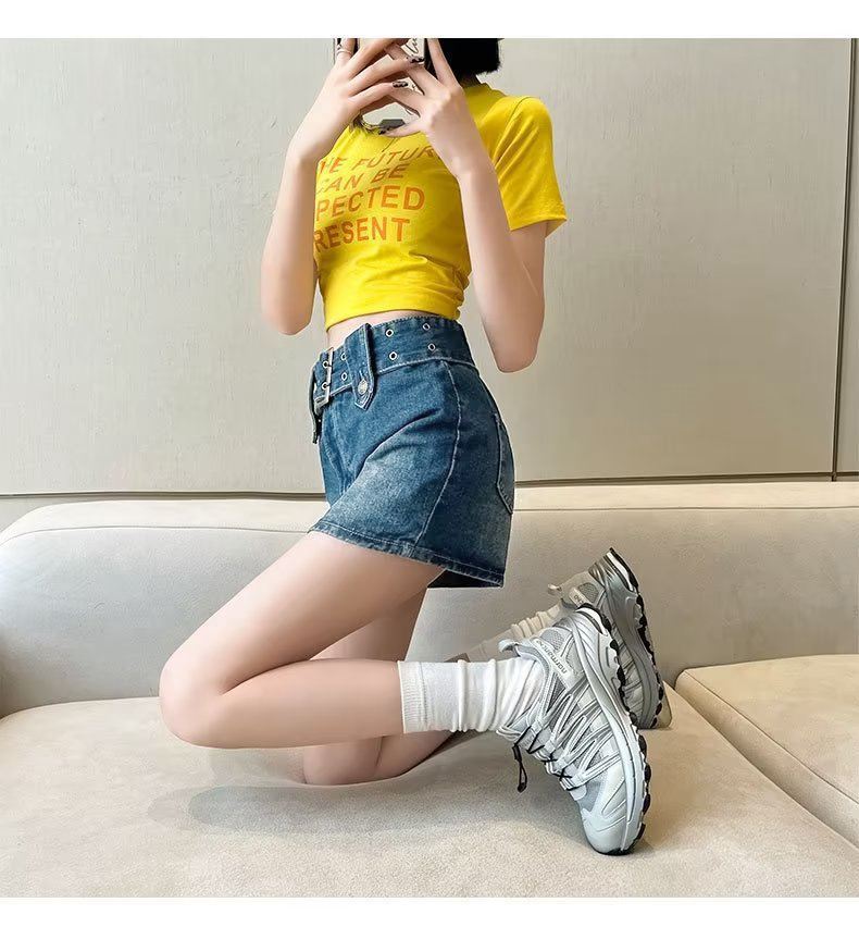 Falda vaquera vintage para mujer, primavera y verano, estilo americano, cintura alta, línea A, antiluz, cadera