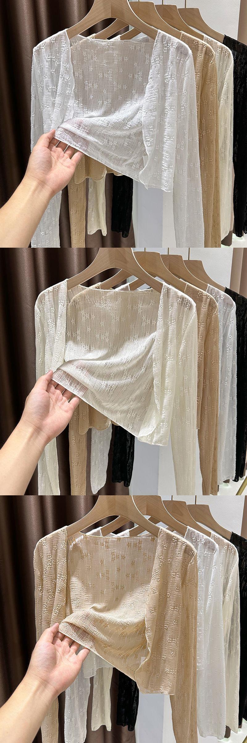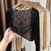 Chaqueta corta de encaje con chal y protector solar para mujer, vestido de verano con tirantes, blusa exterior, cabello fino y vacío