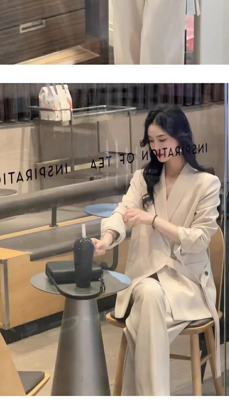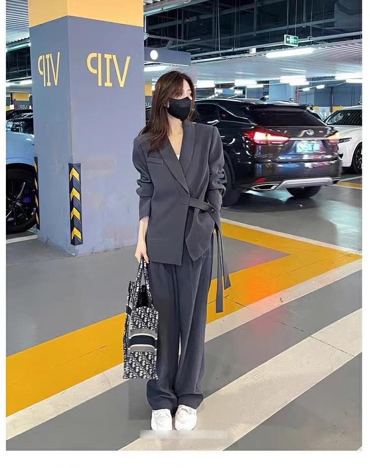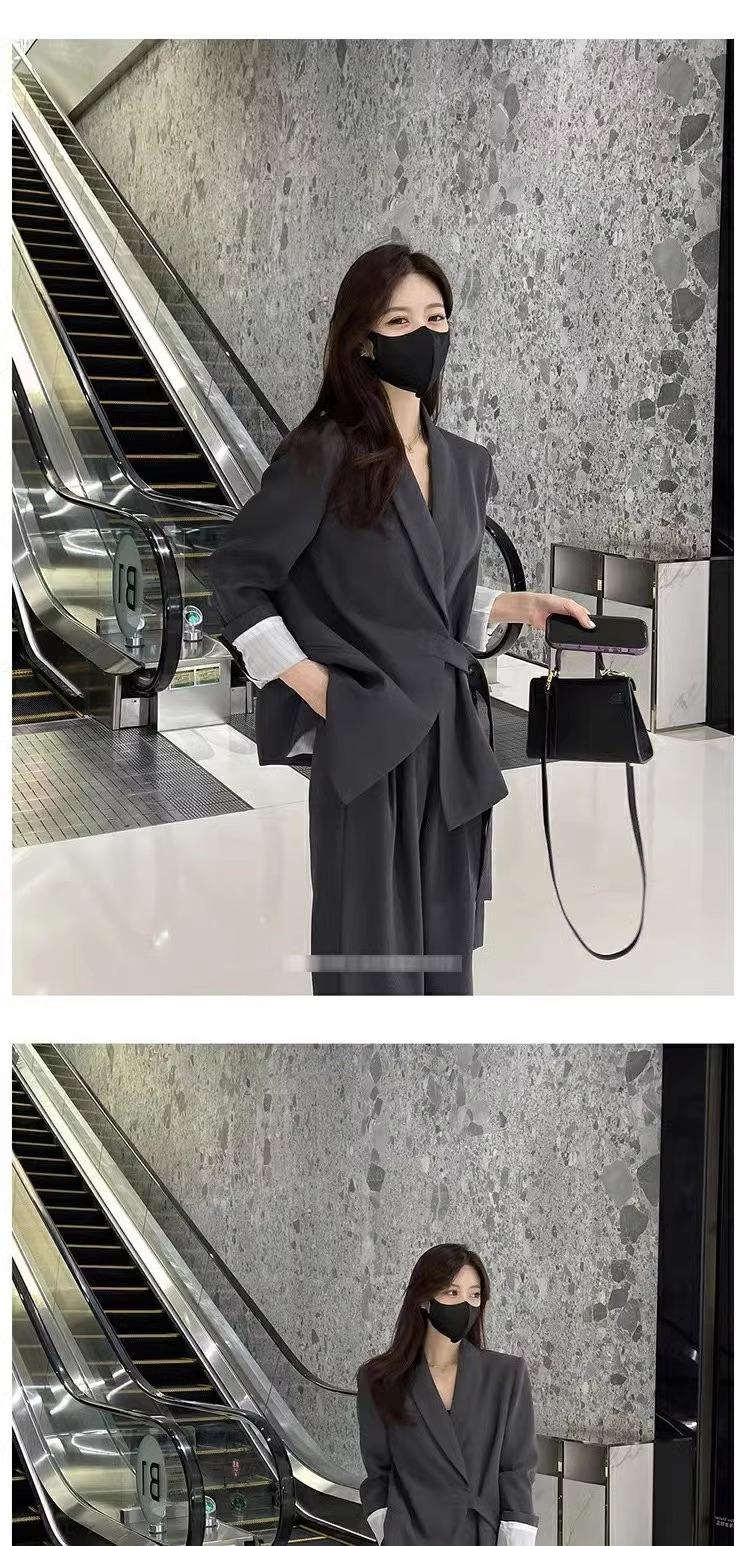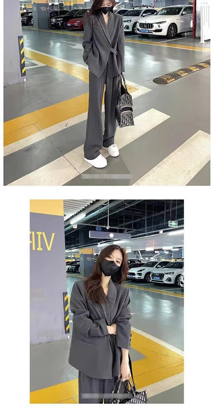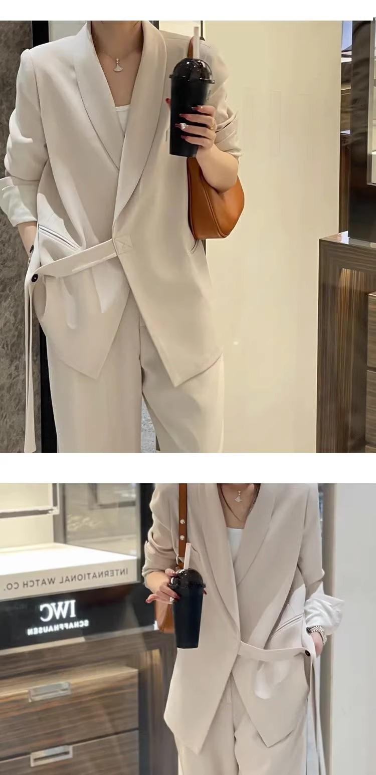 Traje de comercio exterior para mujer, primavera y otoño 2024, nuevo traje holgado adelgazante, chaqueta informal, pantalones anchos de pierna, conjunto de dos piezas