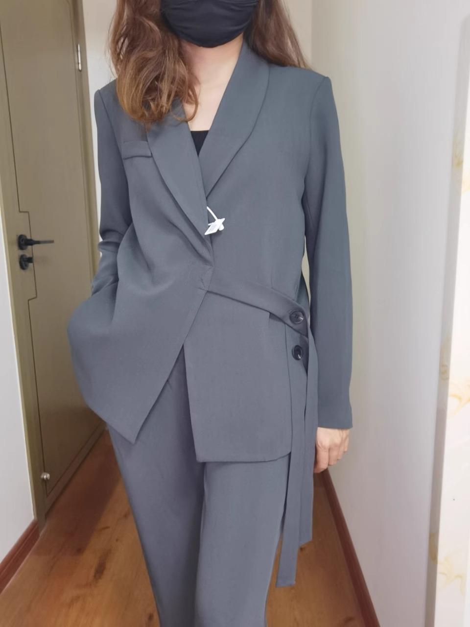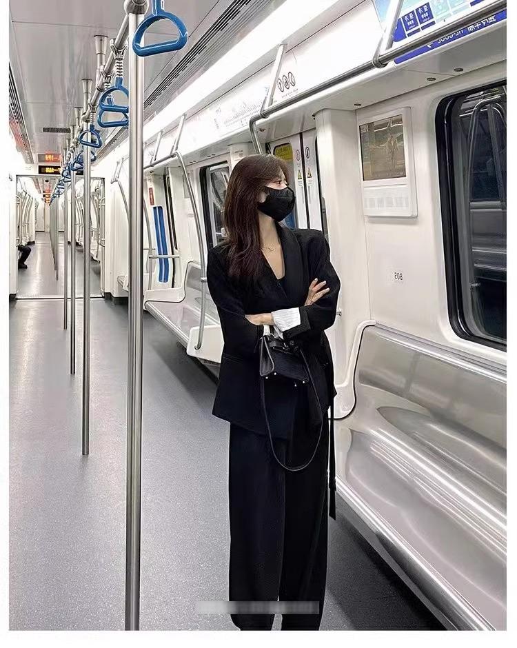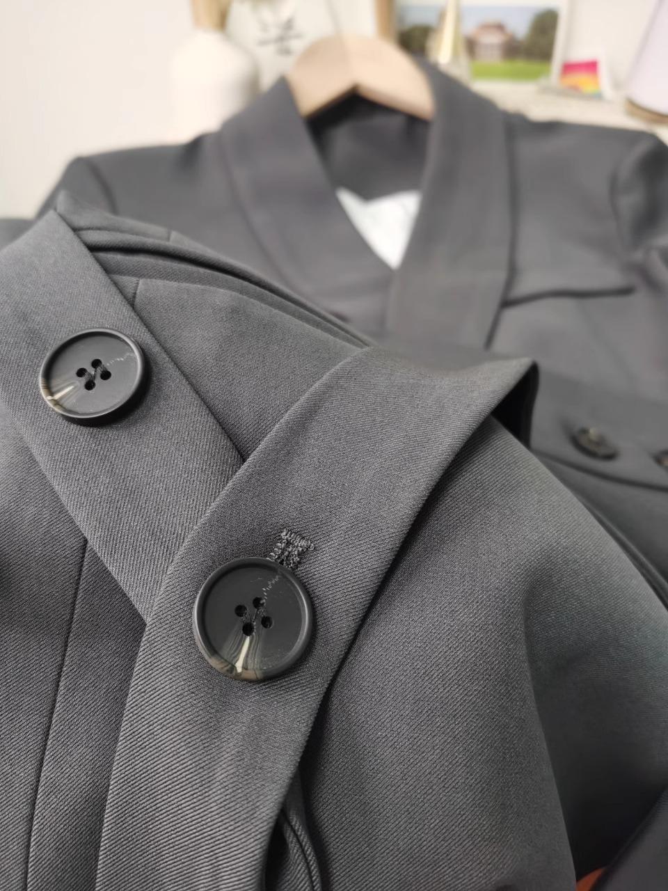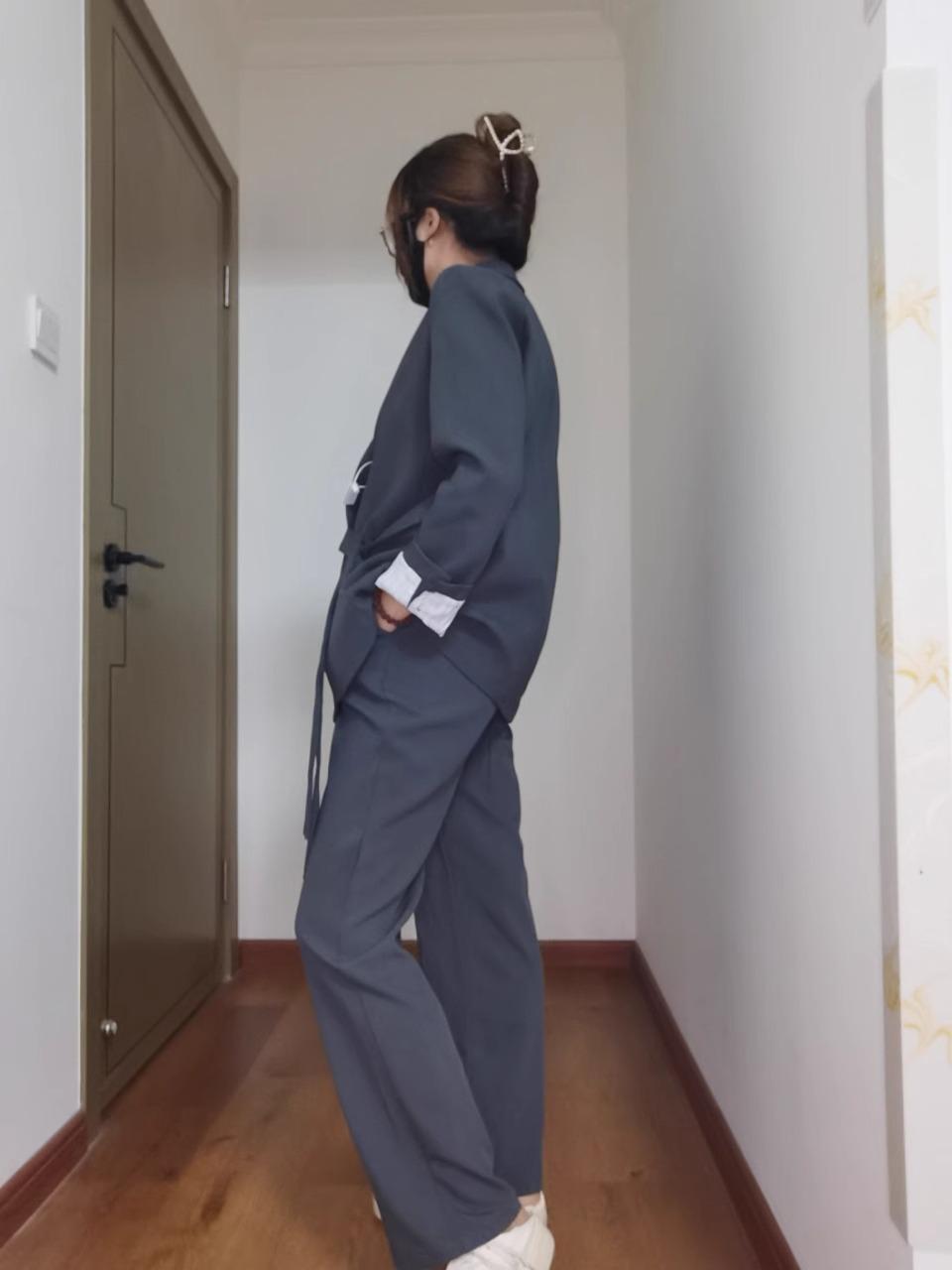 Traje de comercio exterior para mujer, primavera y otoño 2024, nuevo traje holgado adelgazante, chaqueta informal, pantalones anchos de pierna, conjunto de dos piezas