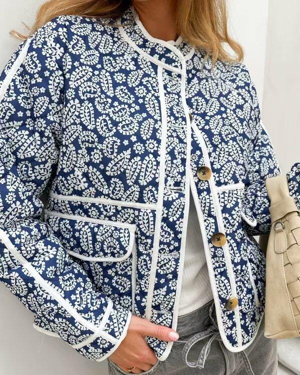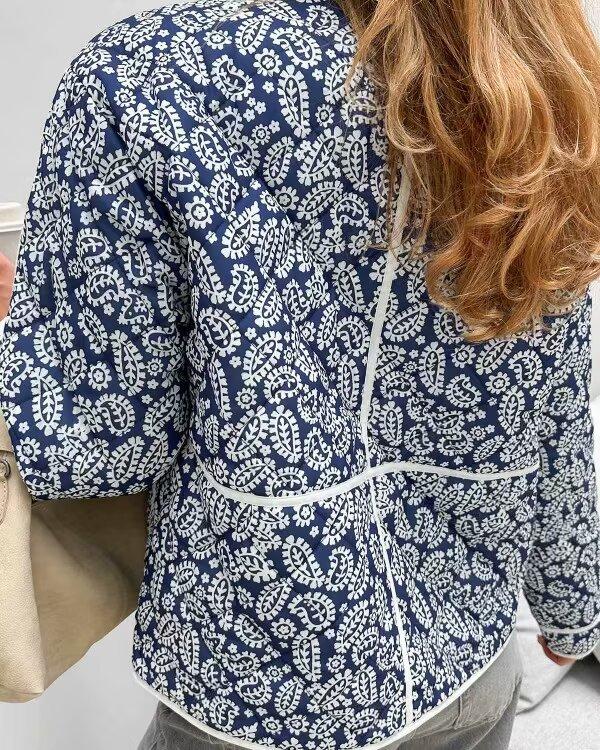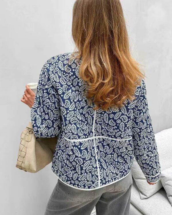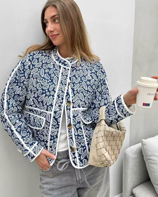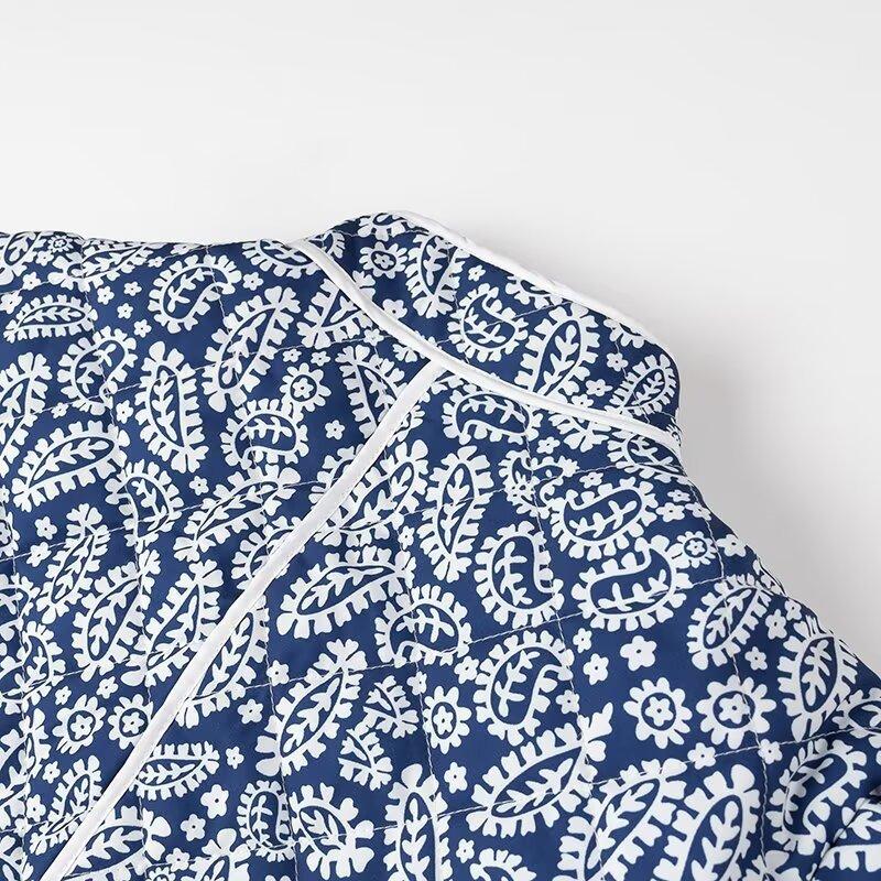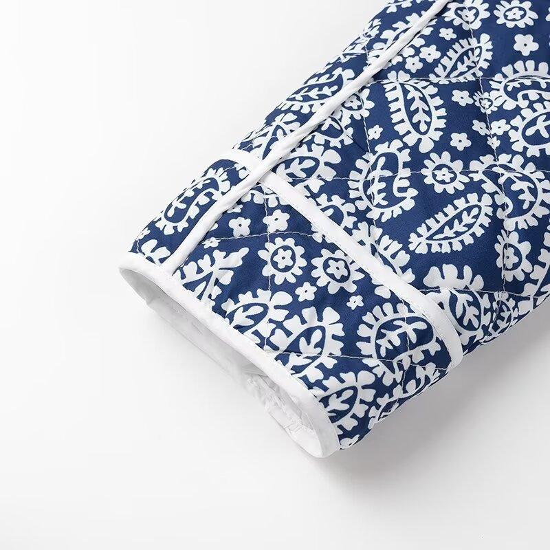 Ropa de mujer transfronteriza europea y americana 2024 otoño nuevo moda callejera cuello alto abrigo de algodón estampado 2202