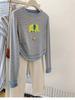 Camiseta de Manga Larga con Costuras de Rayas en los Hombros para Mujer Estilo Americano Chic Falso de Dos Piezas Combinación Versátil Camiseta Básica Talla Grande Top Nicho Otoño