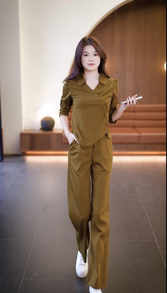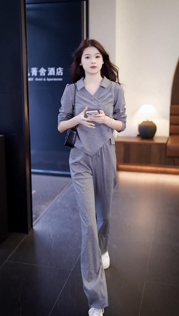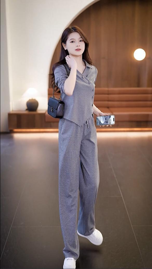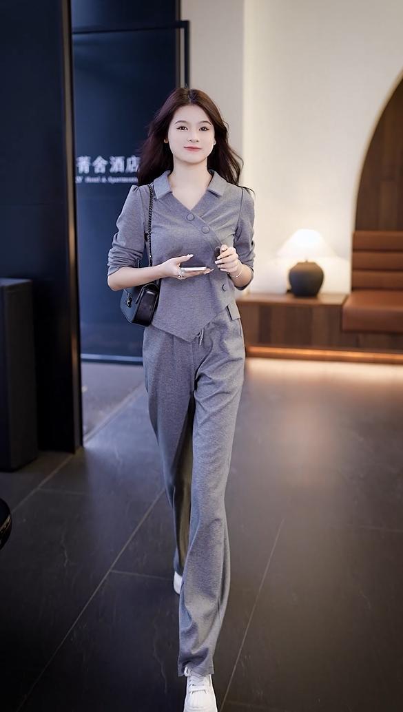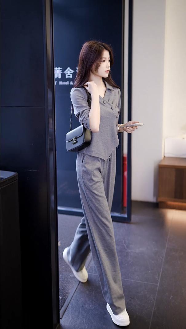 Conjunto de dos piezas de ropa deportiva irregular para mujer, primavera y otoño de 2024, pantalones rectos holgados de moda informal