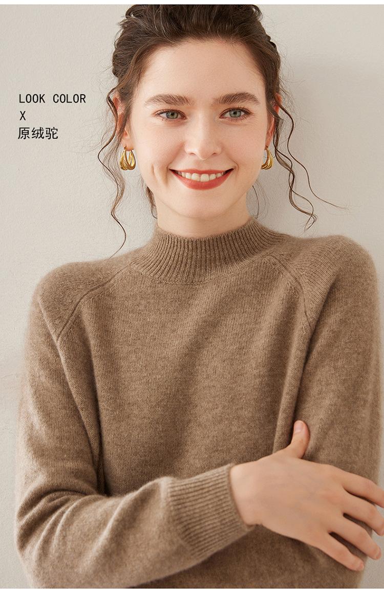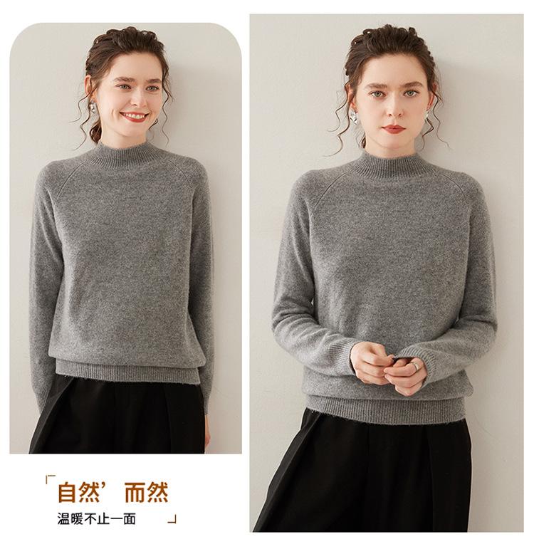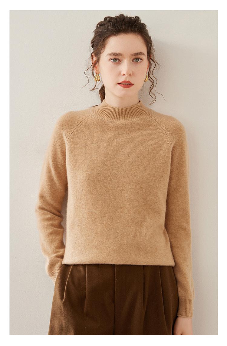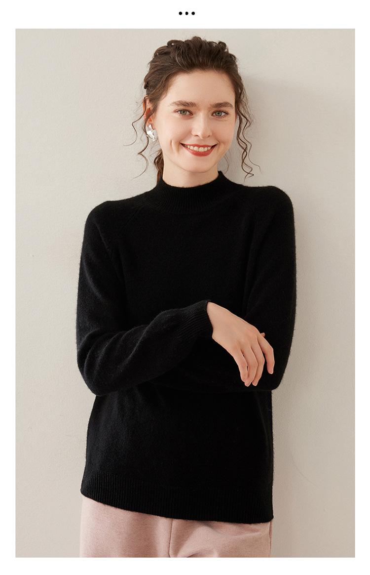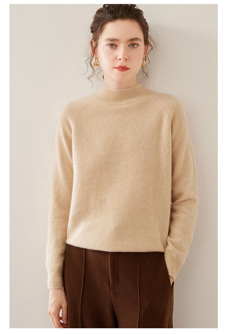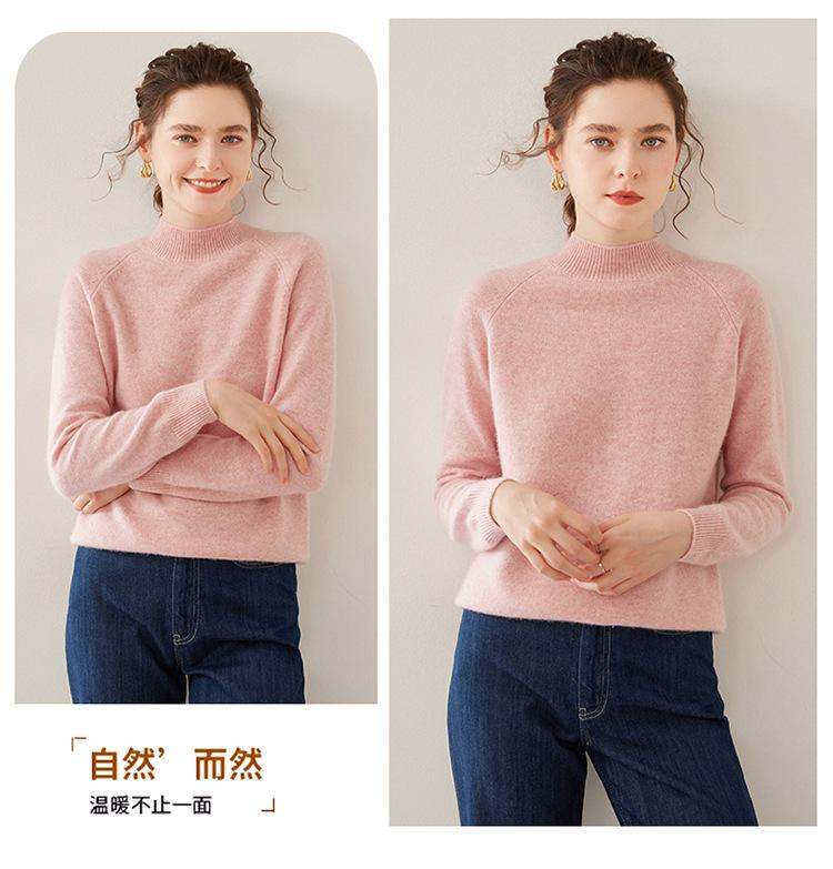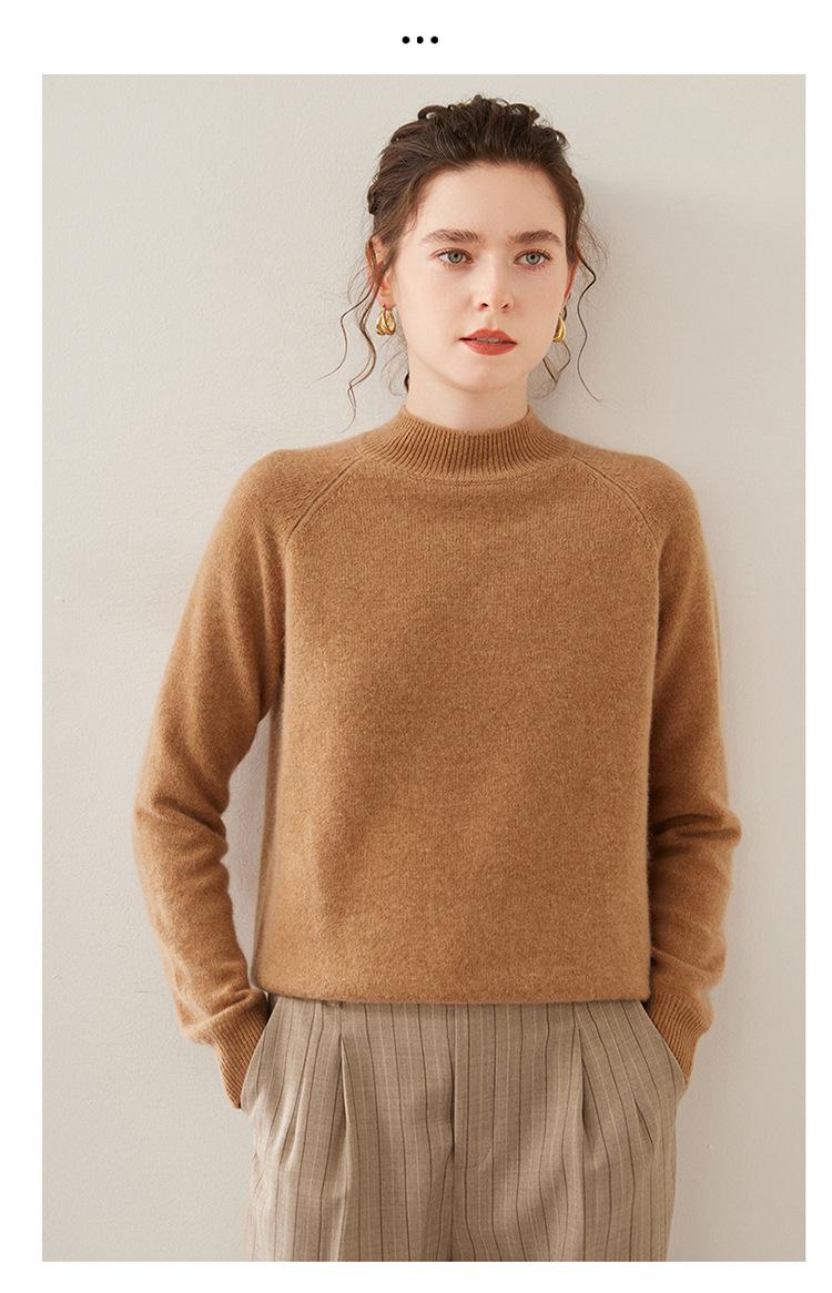 Suéter holgado de cachemira para mujer, sencillo y combinable, con cuello medio alto, manga larga y raglán liso en el interior.