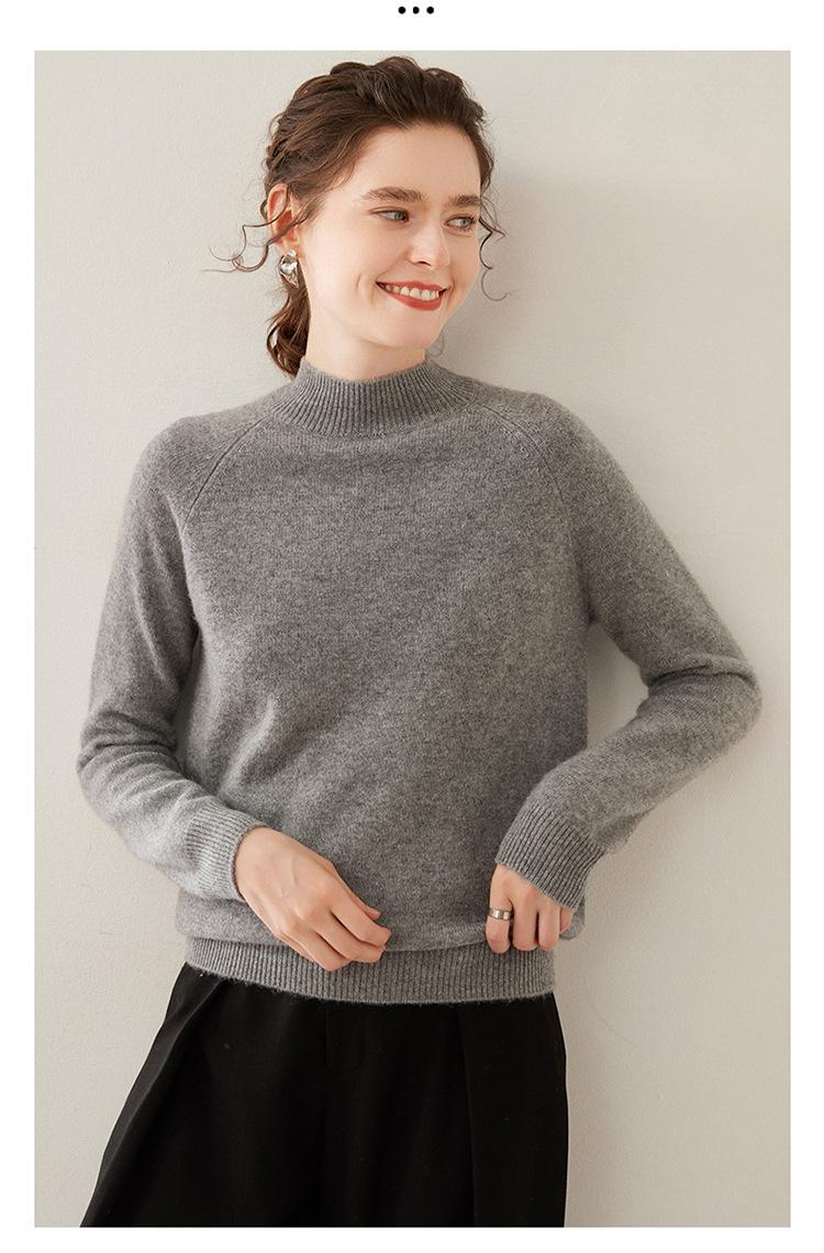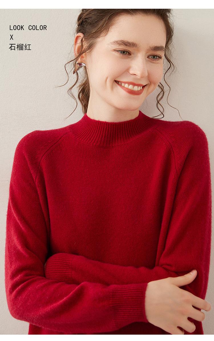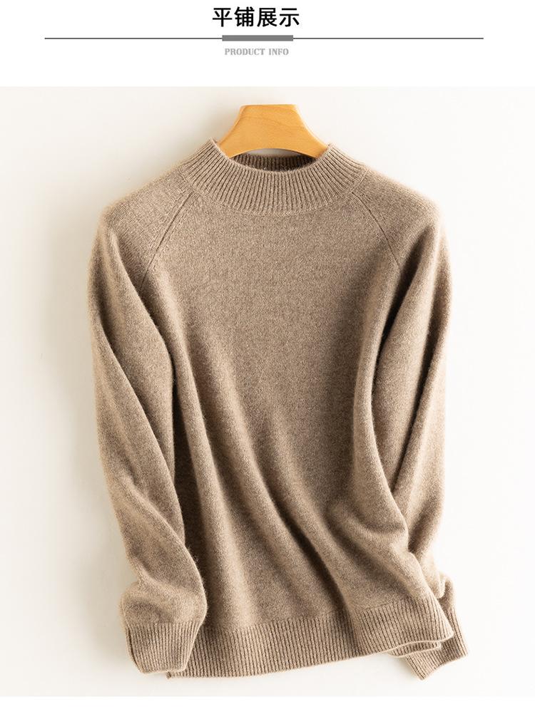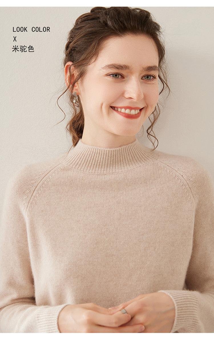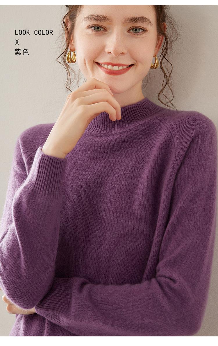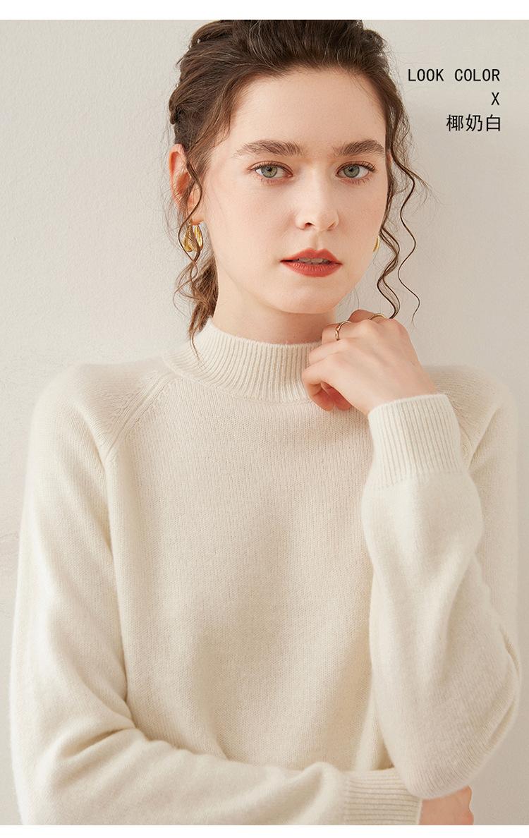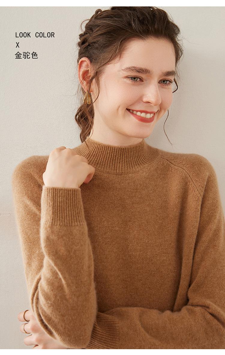 Suéter holgado de cachemira para mujer, sencillo y combinable, con cuello medio alto, manga larga y raglán liso en el interior.