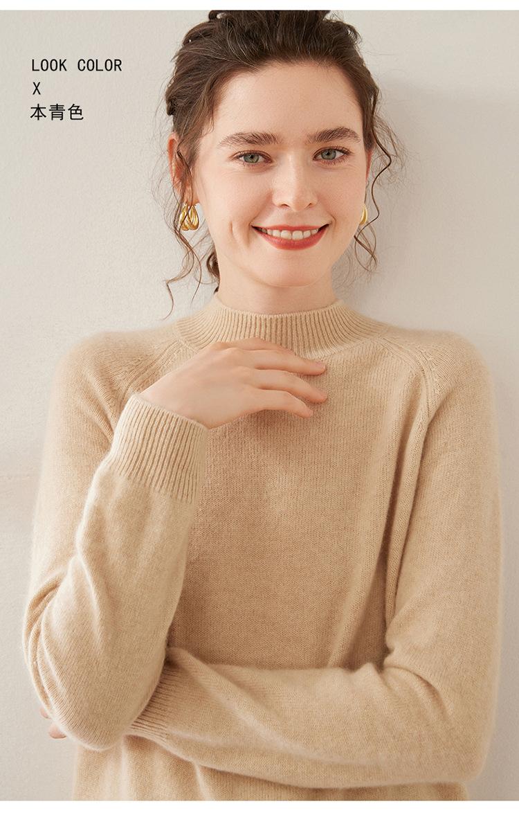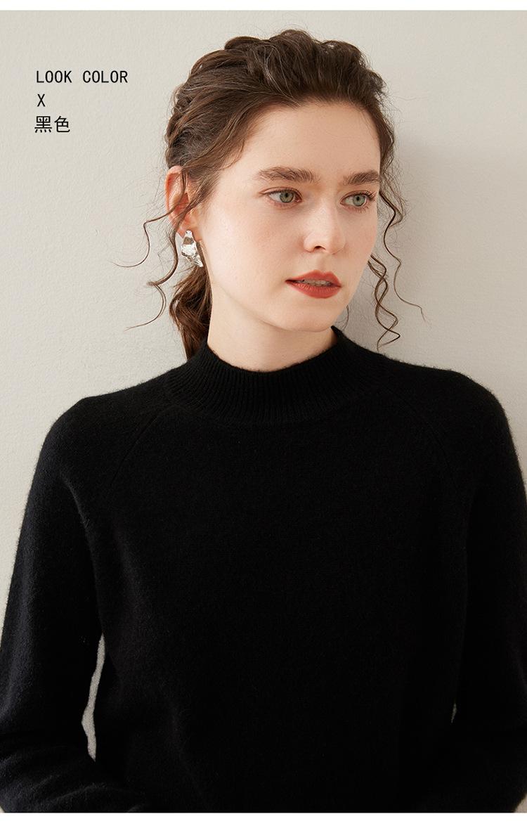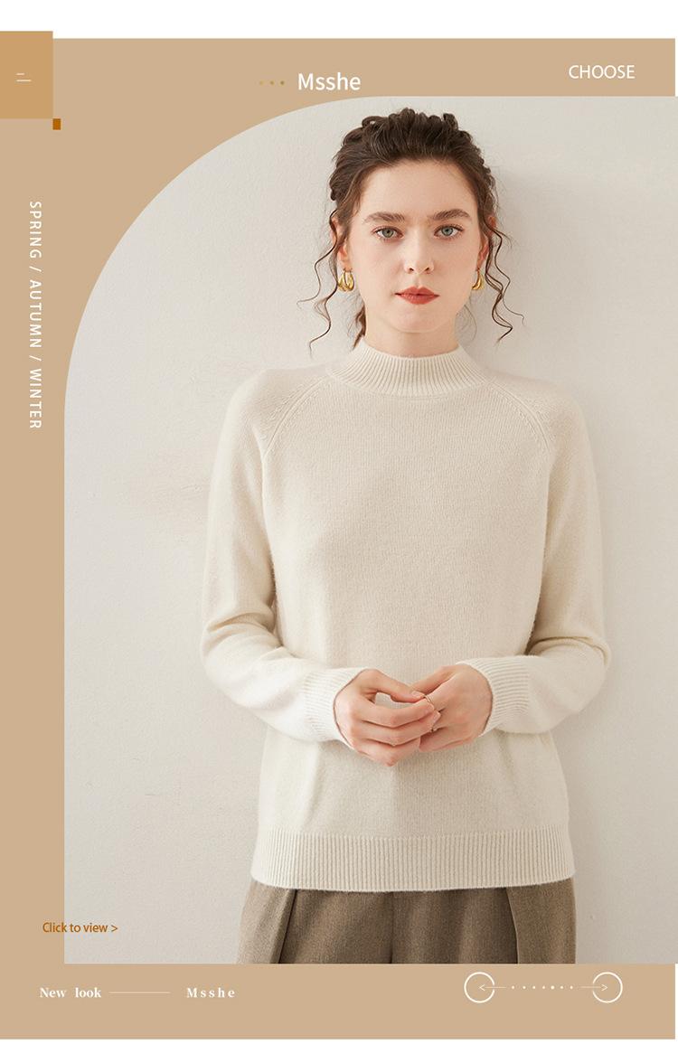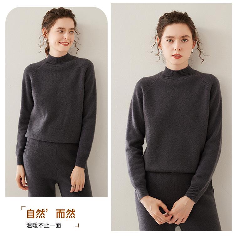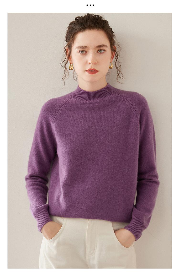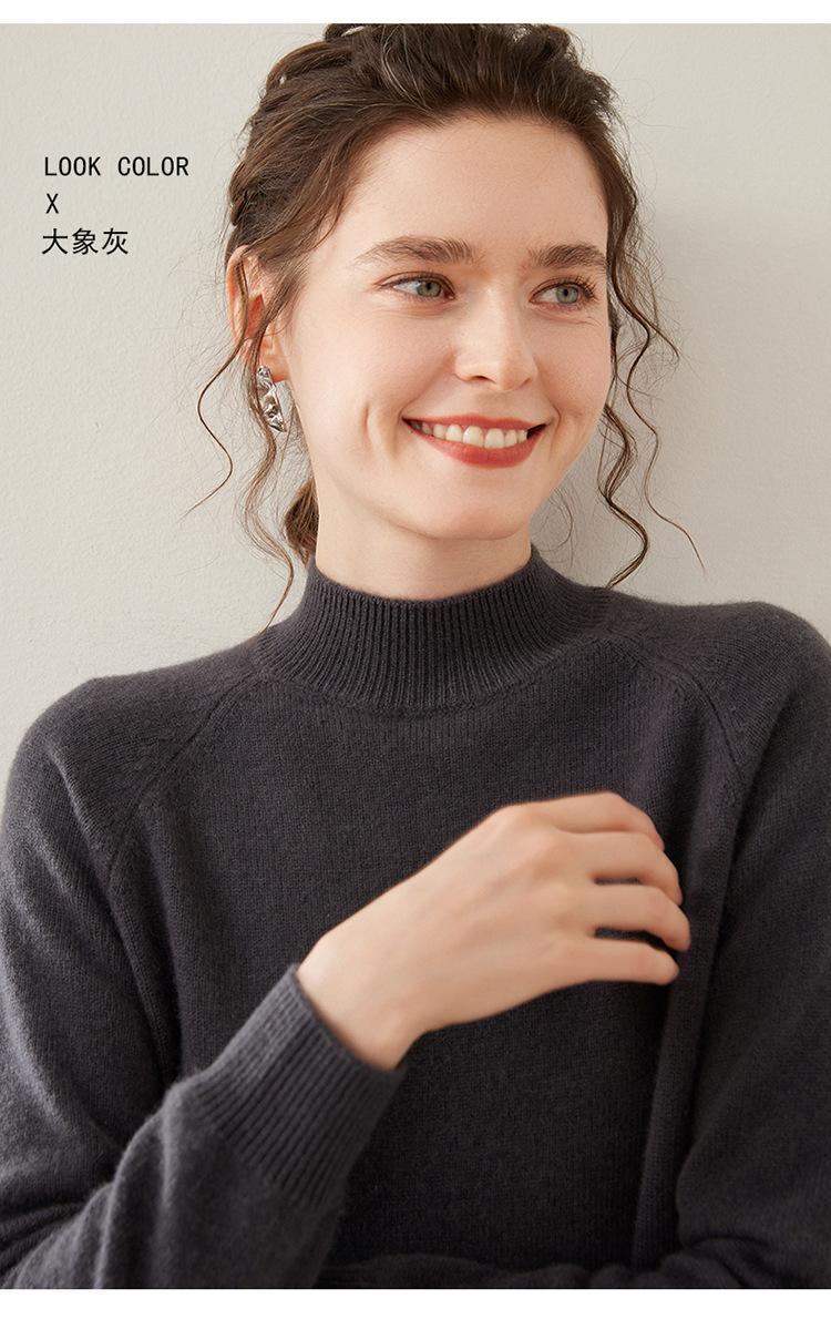 Suéter holgado de cachemira para mujer, sencillo y combinable, con cuello medio alto, manga larga y raglán liso en el interior.