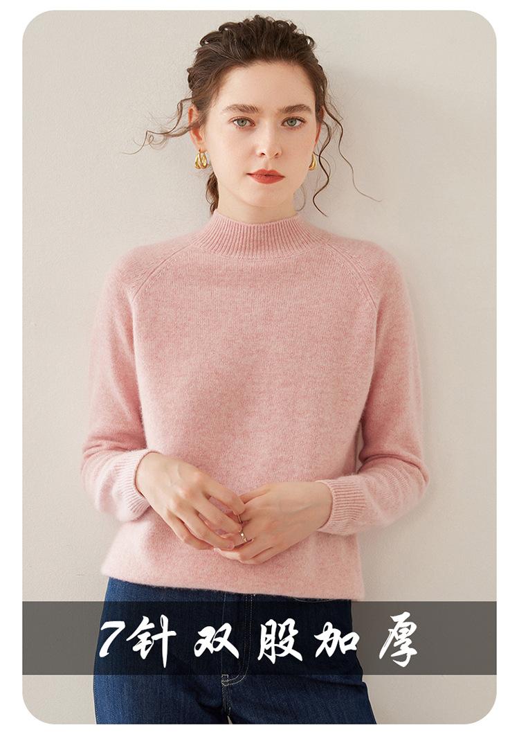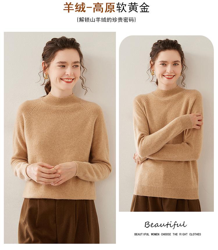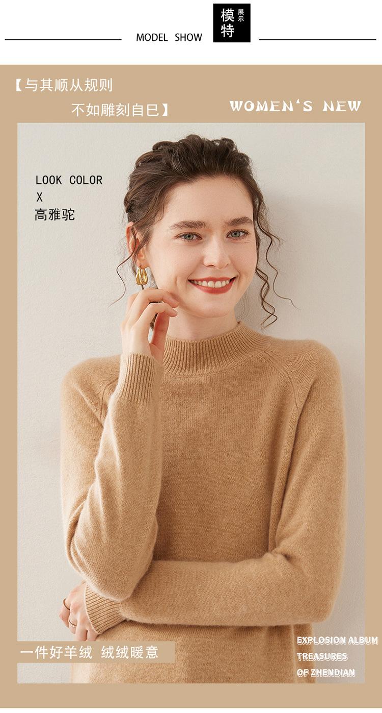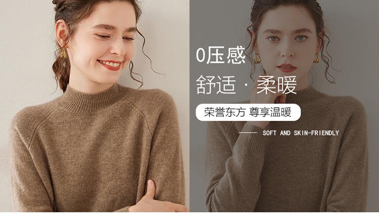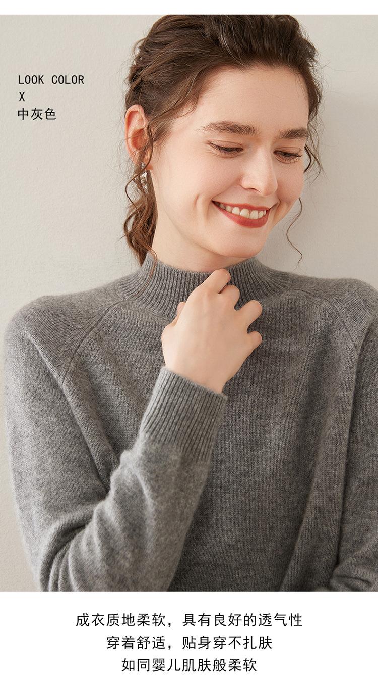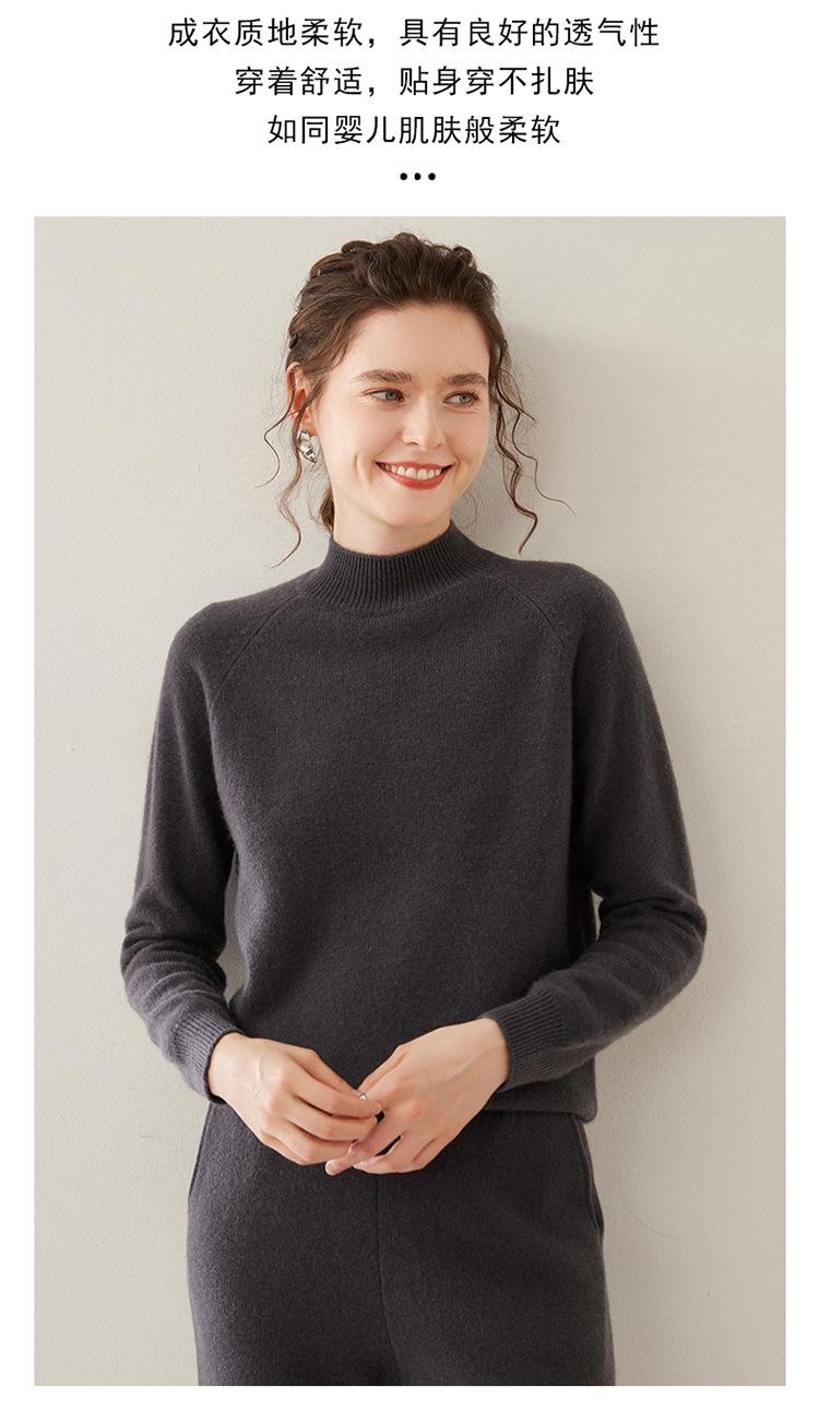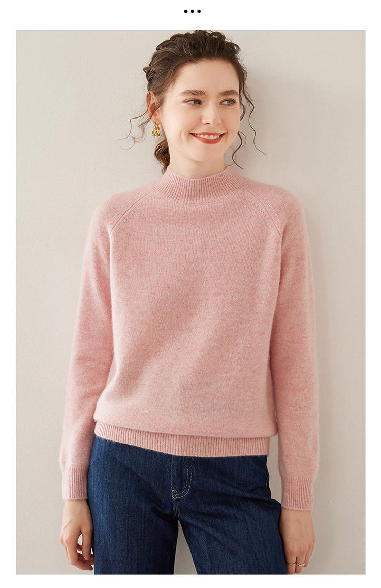 Suéter holgado de cachemira para mujer, sencillo y combinable, con cuello medio alto, manga larga y raglán liso en el interior.